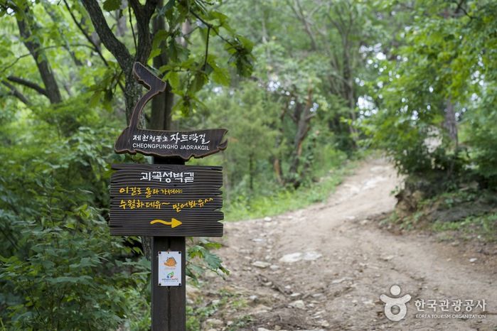 청풍호자드락길 제6코스는 괴곡성벽길이다. 옥순봉쉼터에서 시작해 괴곡리와 다불리를 지나 지곡리 고수골에 이르는 길로서 과거 성벽을 이루었던 곳이라 하여 이 같은 이름을 얻게 됐다. 청풍호자드락길 가운데에서 난이도 '上'에 속하는 성벽 길은 멋진 조망과 다양한 식물군이 하모니를 이루고 있는 코스로 재미와 만족도 역시 '上'에 속한다. 성벽 길의 중간 지점인 다불암에 이를 때까진 화장실이나 샘이 따로 없어서 옥순봉쉼터에서 충분히 준비하고 출발하는 것이 좋다. 괴곡성벽길 코스를 걸으며 아름다운 청풍호의 풍광을 만끽하며 힐링해 보자.