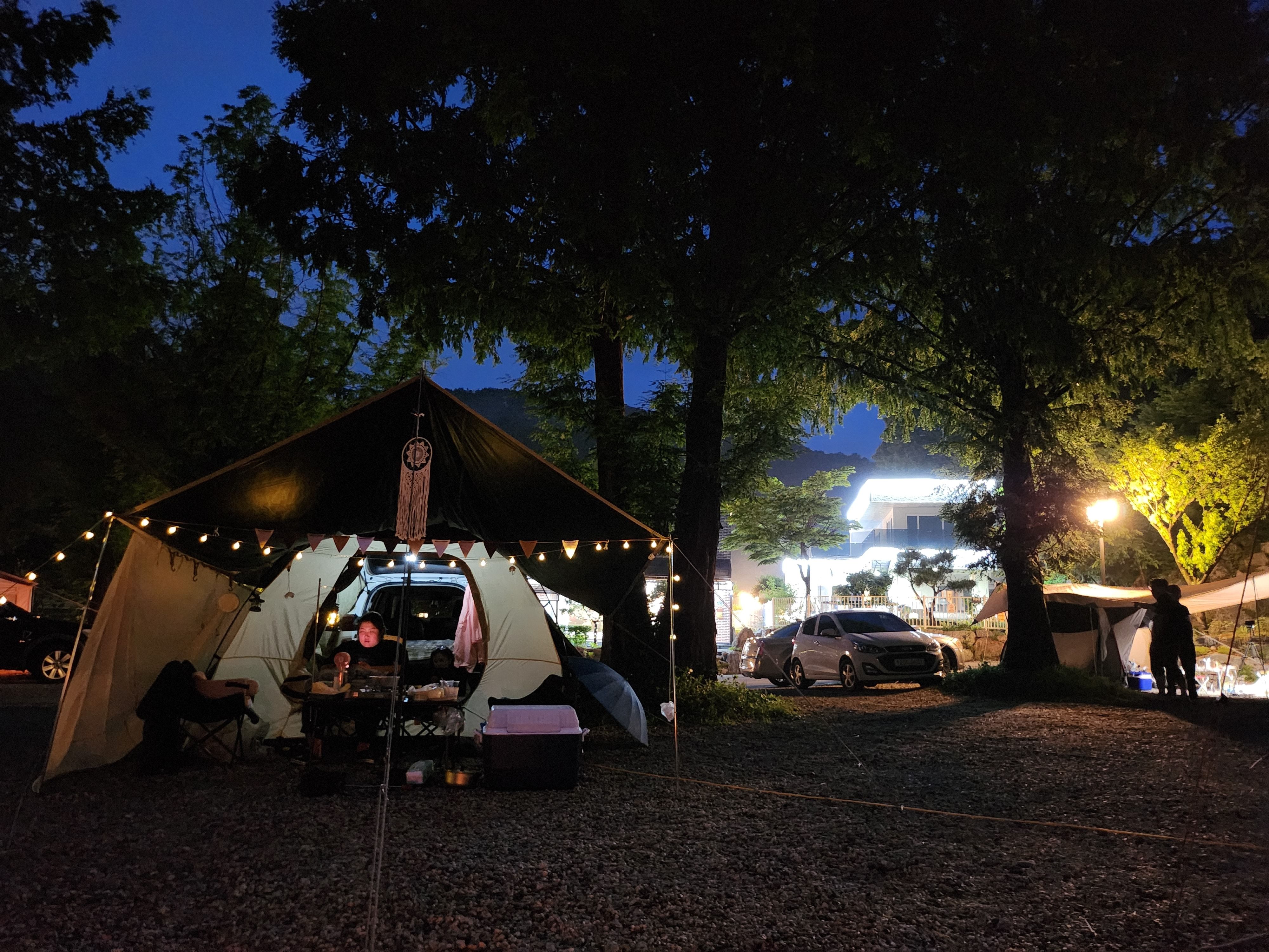 비바람이 심하다하여 전날까지 갈까말까 고민많이했는데 가길진짜 잘한거같아요 비가 이틀동안 왔지만 바람이 많이 불지않아 다행이였어요 사장님 친절하시고 개수대나 샤워실에 따뜻한물이 너무 잘나왔어요 그리고 개수대가 짱 넓어요 맘에 들었어요 애들 놀거리 방방이도 있고 같이간 조카가 땀을 한바가지 흘리면서 노셨네요 매너타임 시간엔 대화하는 소리는 들렸지만 밤새도록 하는것도 아니고 그정도야 뭐 술마시고 떠드는게 아니니 괜찮았어요 다음에 또 방문하고 싶어요