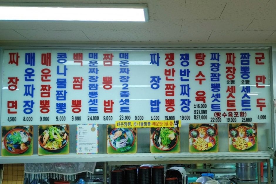 특허받은 콩나물 짬뽕으로 유명한 중화요리 집이다. 짬뽕면 위에 푸짐하게 올라간 콩나물, 홍합, 그 위에 신선한 낙지 한 마리까지 먹기 전부터 시각을 자극한다. 쫄깃한 면에 아삭아삭 씹는 맛이 살아있는 콩나물, 매콤하면서도 칼칼하고 시원한 국물, 푸짐한 야채와 신선한 해산물의 조화가 뛰어나 한번 맛보면 다시 찾게 되는 곳이다. 짜장면, 쟁반짜장도 맛있지만, 부추가 들어간 매운 짜장면은 이곳에서만 맛볼 수 있는 별미이다. 바싹하게 잘 튀겨낸 탕수육과 만두는 매운맛을 중화시켜 세트로 먹기 좋다.