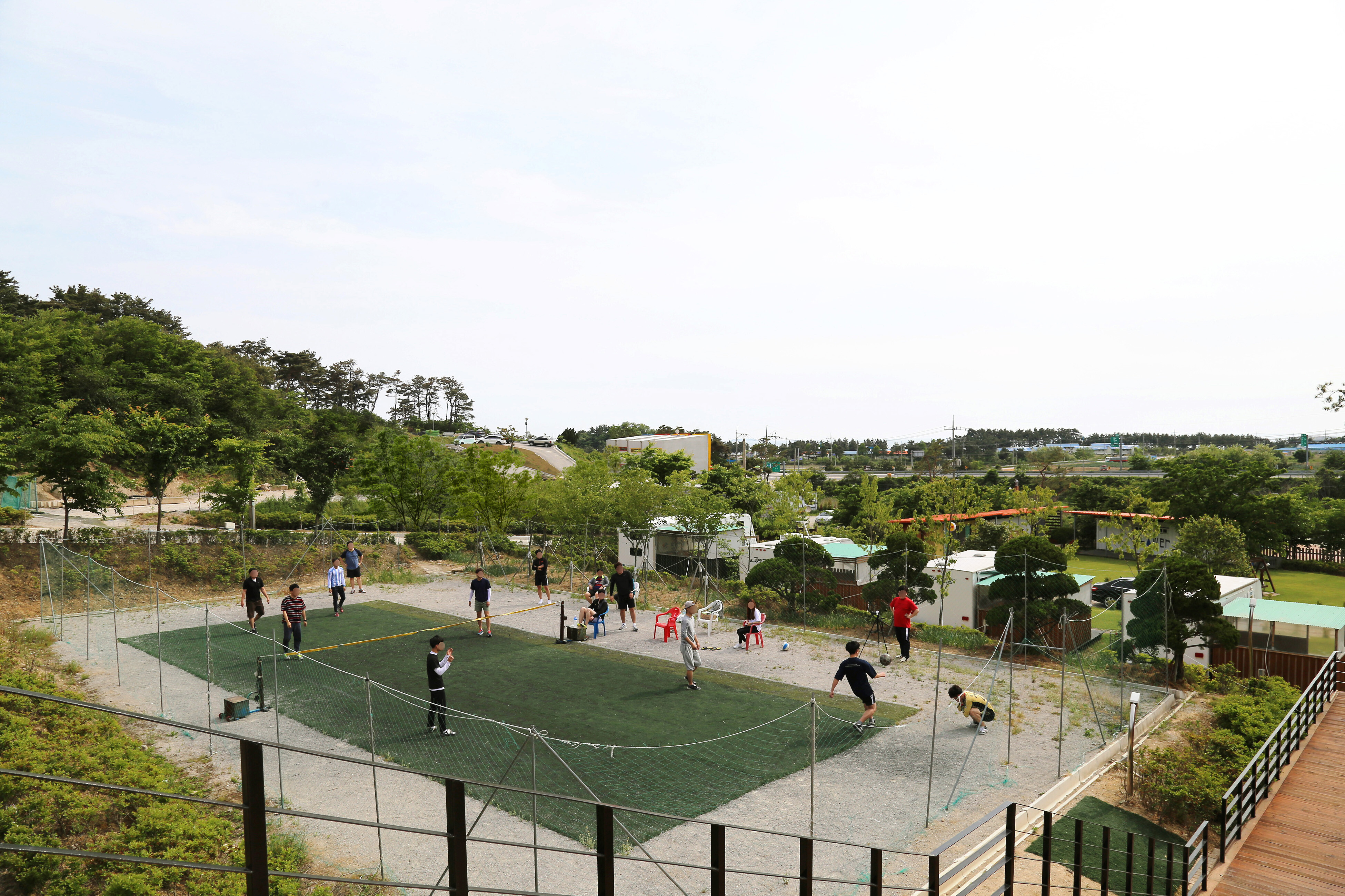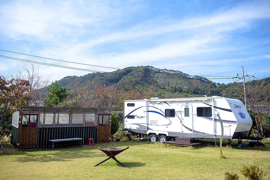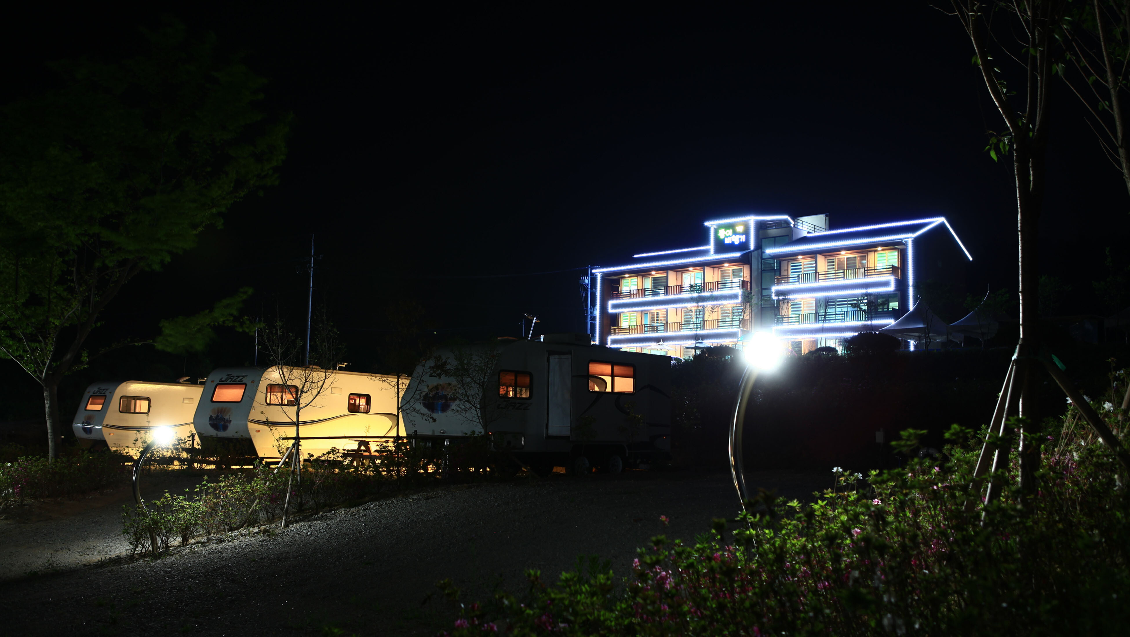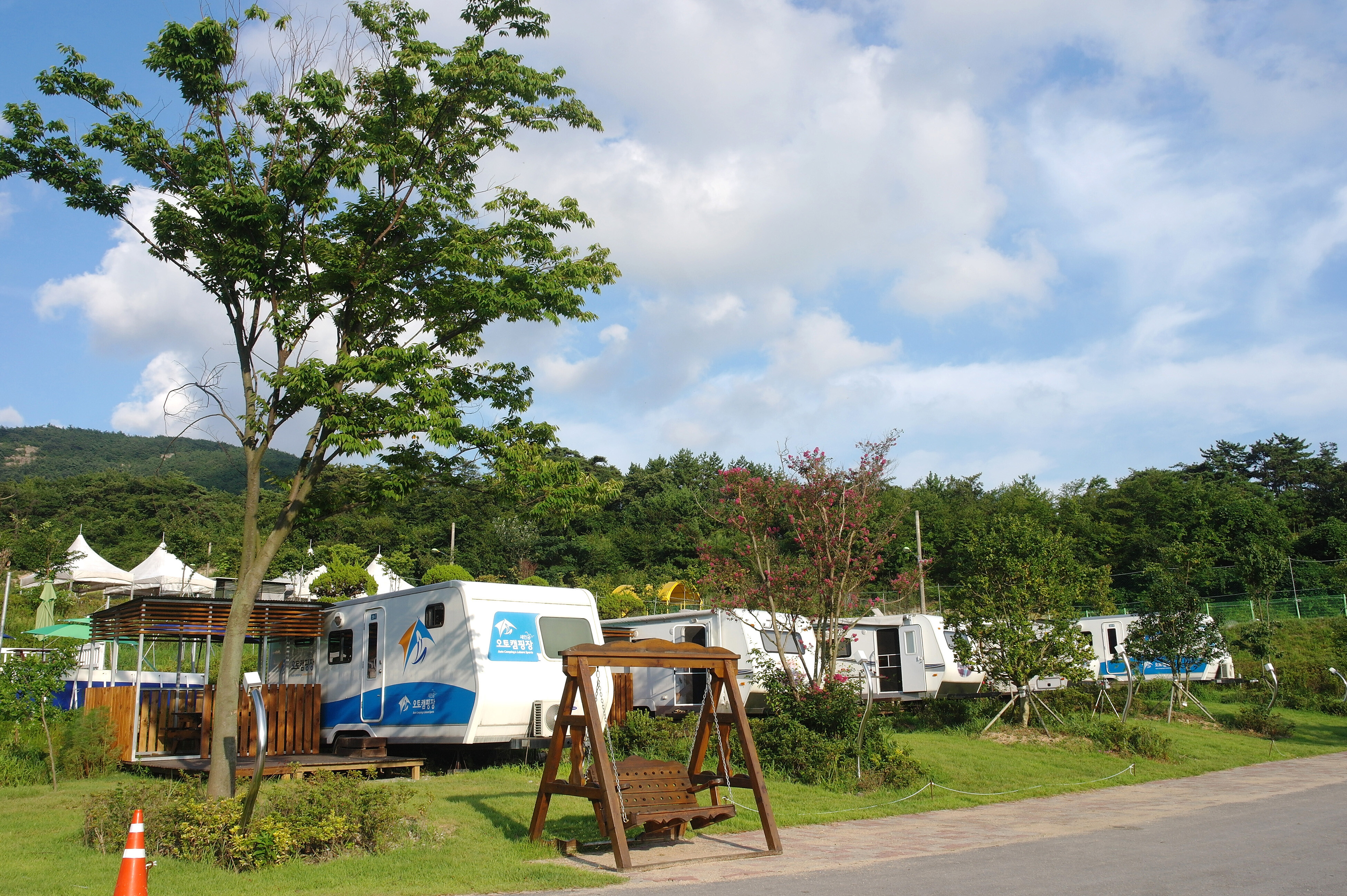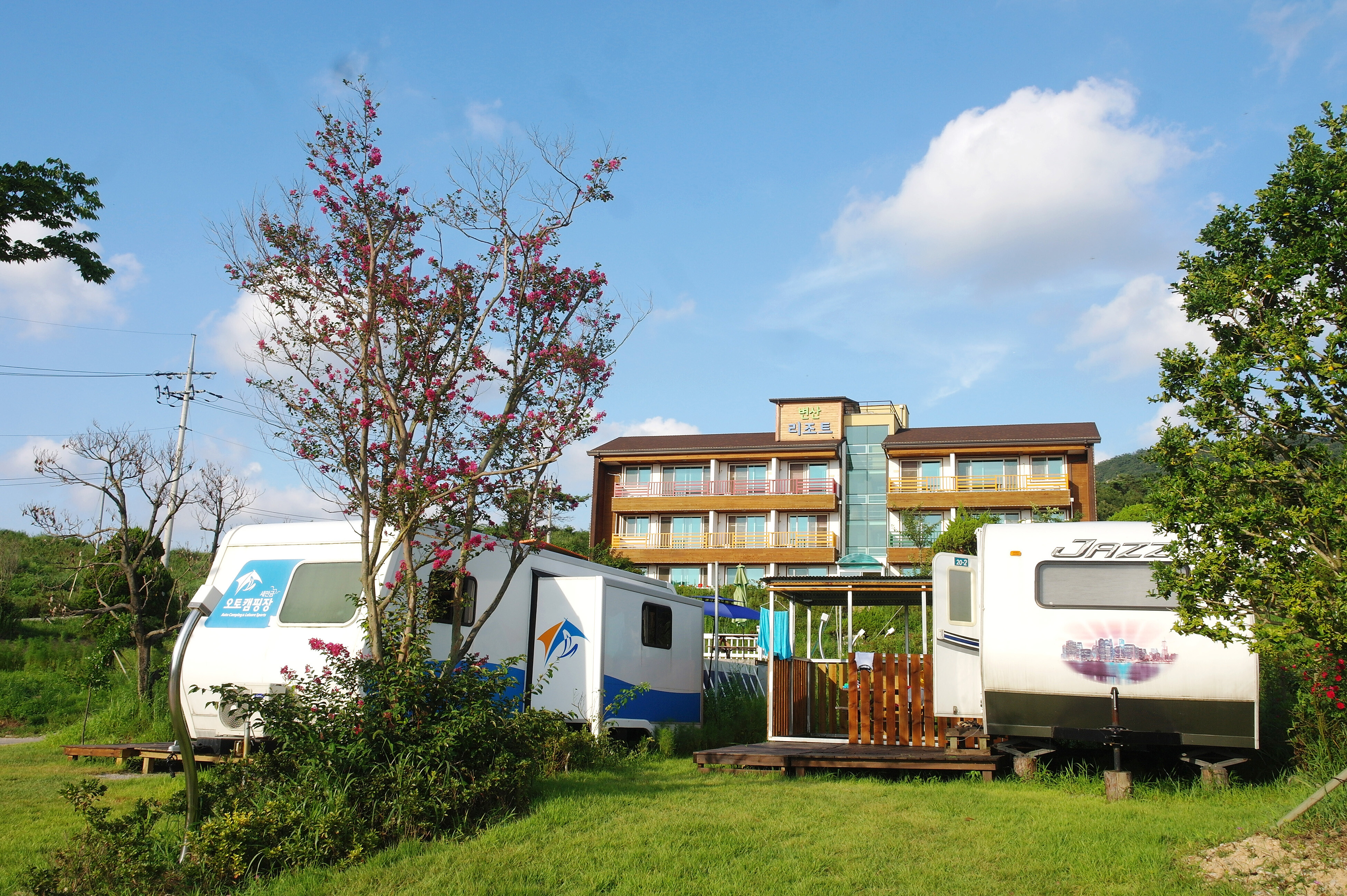 변산리조트 카라반은 펜션과 카라반, 캠핑장이 함께 있는 대규모 리조트로 33,000제곱미터의 넓은 면적에 크고 작은 룸을 보유한 펜션 22실, 크기 별로 다양한 카라반 10동, 잔디 사이트로 구성된 일반 야영장으로 구성되어 있다. 펜션의 모든 객실에는 전용 테라스가 있고 카라반에는 TV, 냉장고, 개수대, 전기밥솥, 가스레인지 등 편의 설비를 갖춰놓았다. 어린이들을 위한 물놀이장과 미끄럼틀, 트램펄린이 있으며, 단체관광객들을 위한 세미나, 연회장도 갖추고 있다. 잘 정돈된 넓은 잔디밭은 어린이들이 뛰어놀기 좋고 군데군데 포토존을 연상케 하는 벤치가 편안한 분위기를 더 한다. 주변에 해산물과 카페, 치킨집 등 다양한 음식점들이 있다.