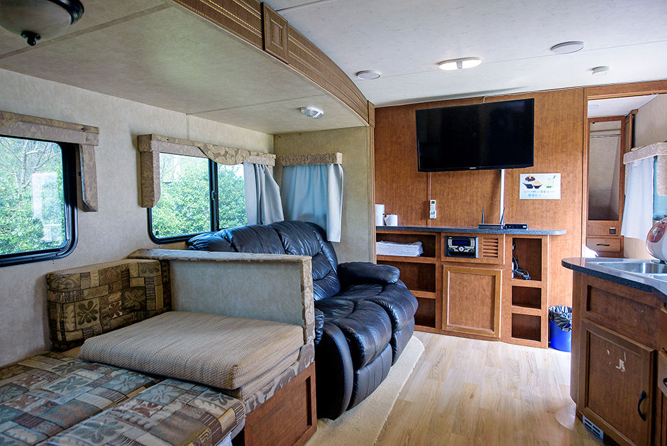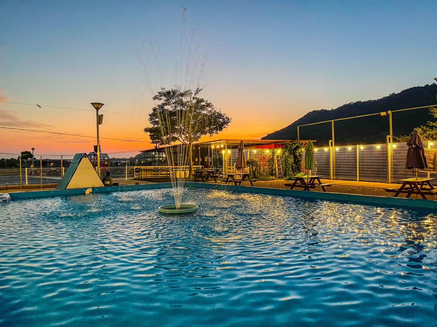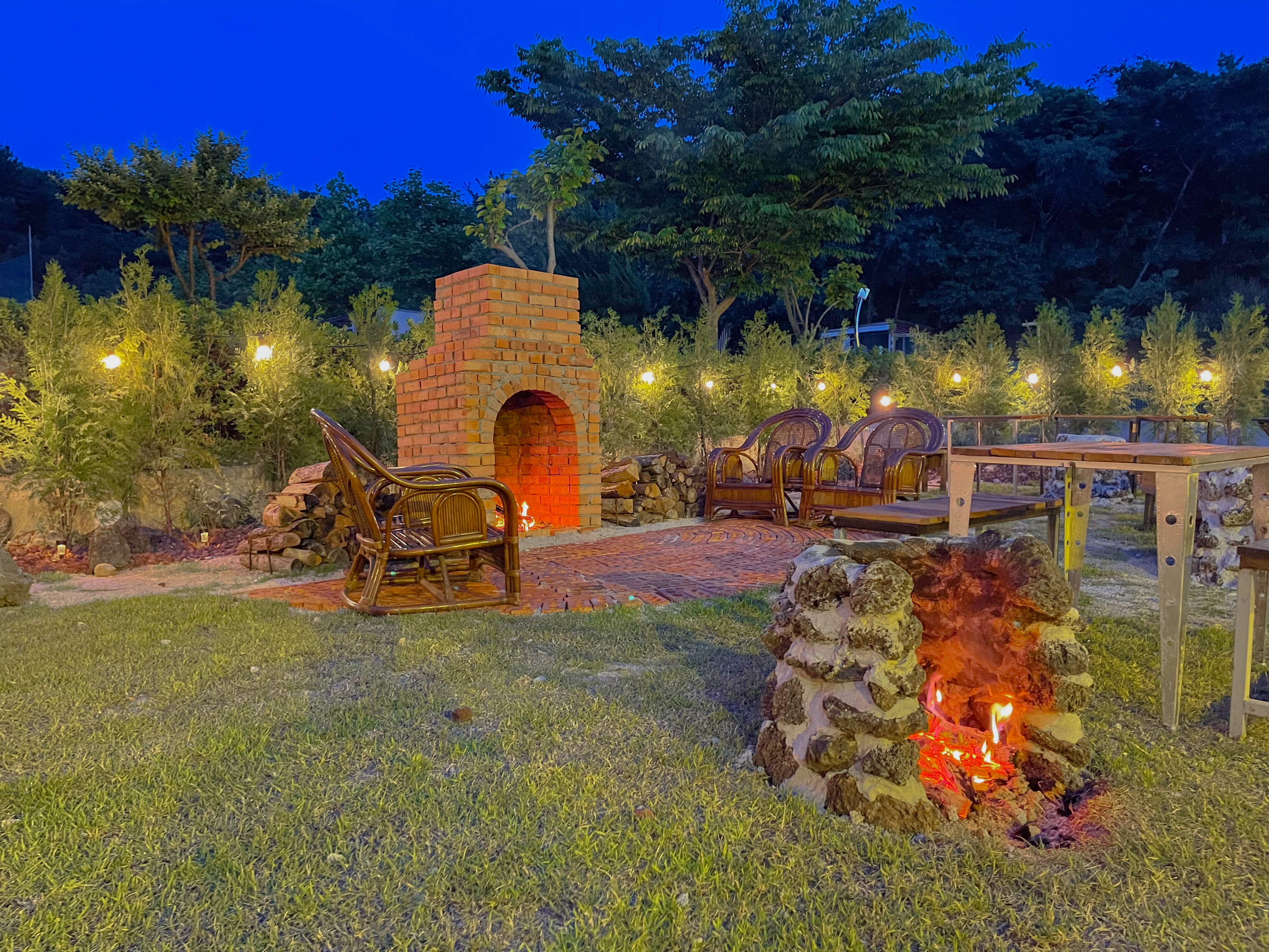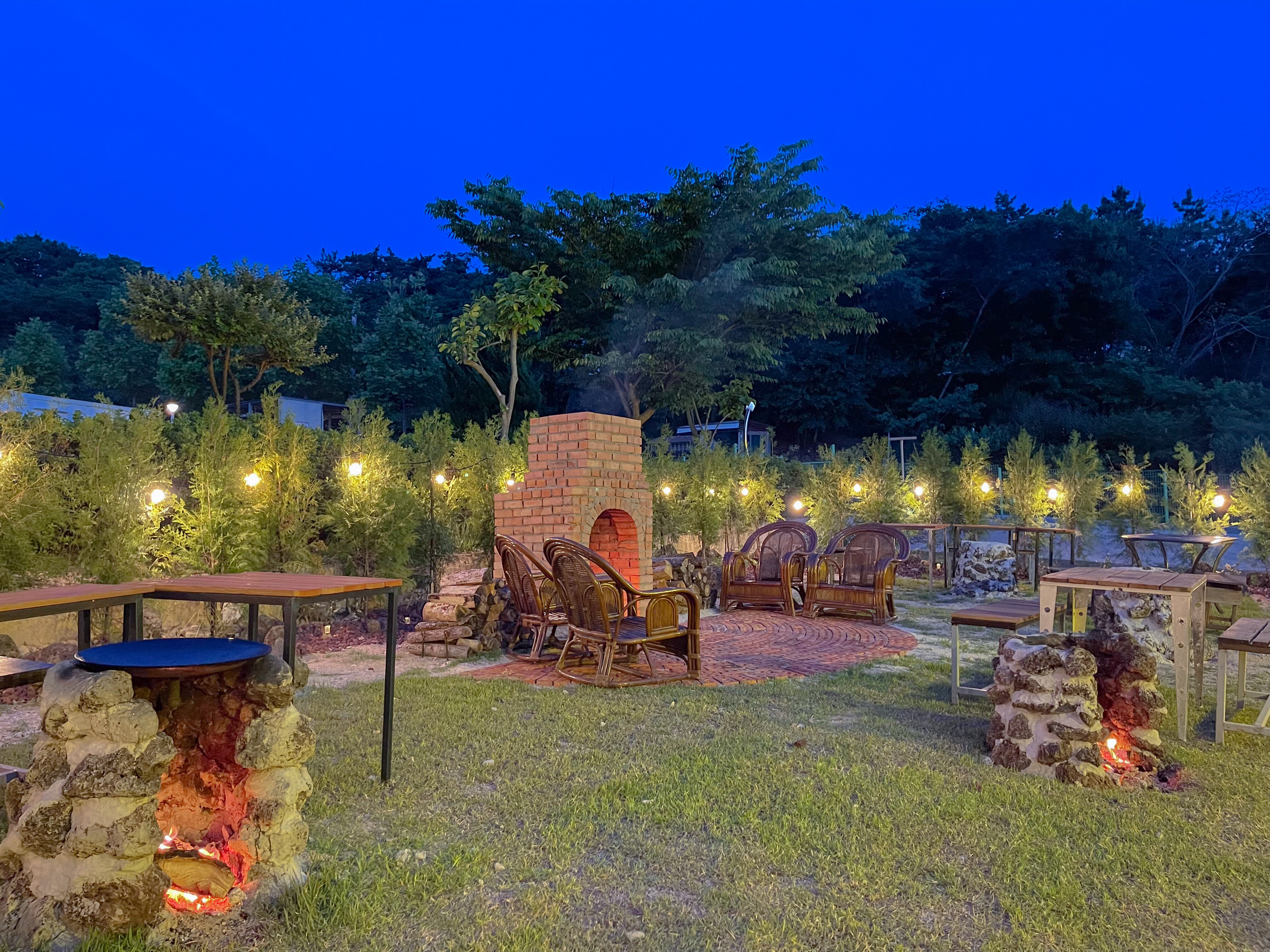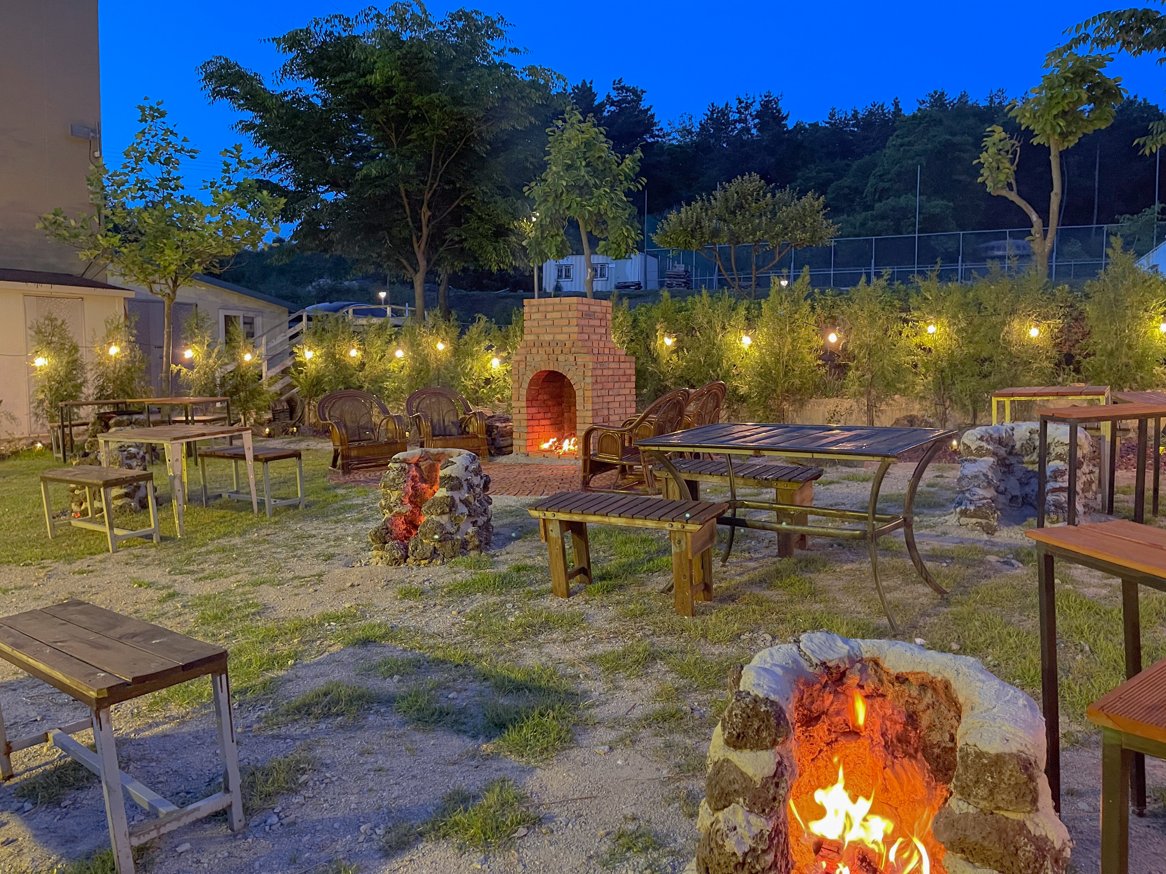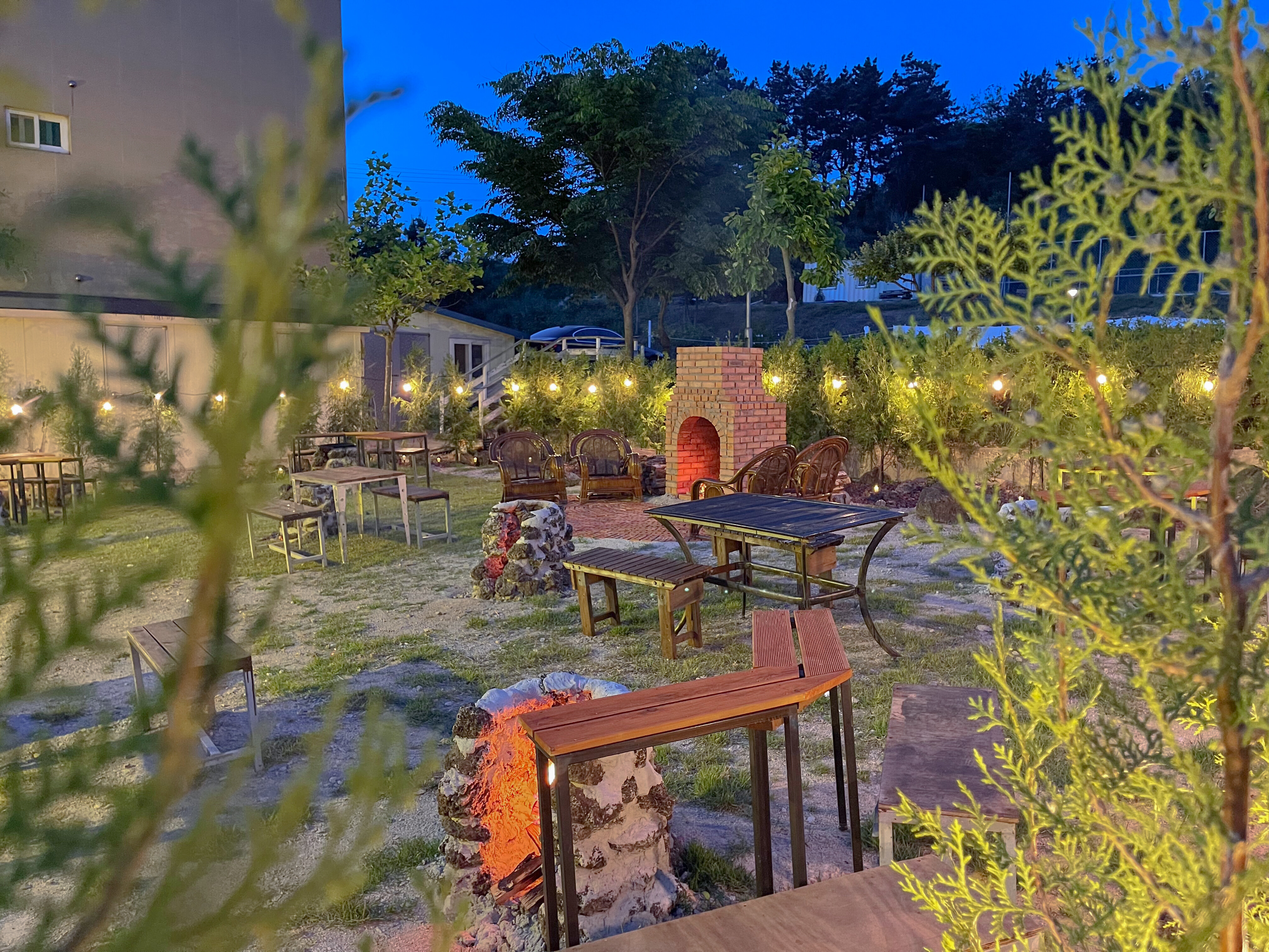 변산리조트 카라반은 펜션과 카라반, 캠핑장이 함께 있는 대규모 리조트로 33,000제곱미터의 넓은 면적에 크고 작은 룸을 보유한 펜션 22실, 크기 별로 다양한 카라반 10동, 잔디 사이트로 구성된 일반 야영장으로 구성되어 있다. 펜션의 모든 객실에는 전용 테라스가 있고 카라반에는 TV, 냉장고, 개수대, 전기밥솥, 가스레인지 등 편의 설비를 갖춰놓았다. 어린이들을 위한 물놀이장과 미끄럼틀, 트램펄린이 있으며, 단체관광객들을 위한 세미나, 연회장도 갖추고 있다. 잘 정돈된 넓은 잔디밭은 어린이들이 뛰어놀기 좋고 군데군데 포토존을 연상케 하는 벤치가 편안한 분위기를 더 한다. 주변에 해산물과 카페, 치킨집 등 다양한 음식점들이 있다.