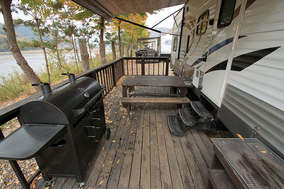별 헤는 마을은 강원도 춘천시 서면에 자리했다. 춘천시청을 기점으로 의암교 방향으로 약 25분간 달리면 도착한다. 이곳은 북한강 변 바로 앞에 위치해 연중 아름다운 풍경을 감상할 수 있다. 10대의 캐러밴을 마련했으며, 너른 잔디밭 곳곳에 심은 나무가 운치를 더해준다. 캐러밴 내부에는 개수대, 화장실, 샤워실이 있으며, 음식을 조리해 먹거나 보관할 수 있는 장비를 갖추고 있다. 외부에는 전용 데크를 설치했고, 테이블, 의자, 바비큐 시설을 설치했다. 모든 캐러밴을 북한강 변을 정면으로 조망할 수 있게 배치해 데크에 앉아 멋진 풍취를 만끽할 수 있다. 게다가 캐러밴 내부 창문을 통해서 내다보는 풍광도 일품이다. 이곳 상호가 별 헤는 마을인 것처럼 북한강을 배경으로 하늘을 수놓은 별들을 눈에 담아가기에도 안성맞춤인 캐러밴 캠핑장이다.