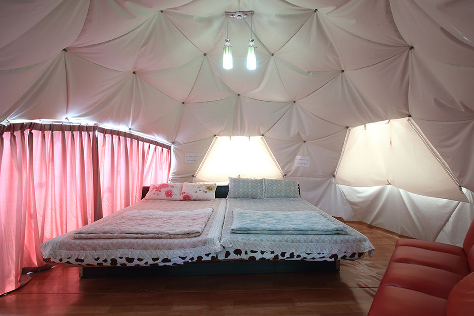 별밤글램핑은 경북 영천시 임고면에 위치하여 영천시청을 기점으로 시청 오거리와 조교 삼거리를 차례로 거치면 도착한다. 캠핑장은 돔형 객실과 지붕이 있는 테라스로 구성한 글램핑 3개 동이 마련되어 있다. 객실 내부는 은은한 조명 아래 4명이 누울 수 있는 침대, 4인용 소파 등 넉넉한 공간이다. 여닫을 수 있는 창문을 설치한 테라스는 의자 일체형 캠핑 테이블과 바비큐 시설을 갖췄다. 덕분에 날씨와 상관없이 바비큐를 즐길 수 있다. 글램핑 외에 펜션도 함께 운영 중이다. 캠핑장 근처에 임고서원, 영천cc, 운주산승마자연휴양림 등이 있어 연계 관광이 가능하다.