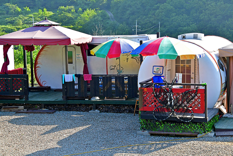 별빛터캠핑장은 카라반과 글램핑, 펜션이 함께 있는 캠핑장이다. 자연경관이 아름다운 합천 황매산 자락에 위치하고 있으며, 낮보다 야경이 더 예쁜 캠핑장이다, 주차는 넓은 공터가 있어 주차하기가 편리하다. 글램핑 근처에는 계곡이 자리하고 있어 시원하게 여름을 보낼 수 있으며, 내부 시설로는 치약, 비누, 드라이기, 샴푸, 린스, 침대와 전기온돌, 취사도구와 24시간 온수가 나오는 싱크대가 있어 언제든지 편리하게 취사를 할 수 있다. 텐트 앞으로는 개별 테이블이 설치되어 있어 바비큐파티를 할 수 있다. 그릴과 숯은 소정의 이용료를 내면 제공해 준다. 카라반 내 화장실 겸 샤워장은 창문이 있어 환기가 잘되며, 수건은 비치되어 있지 않아 개인이 챙겨가야 한다. 캠핑장에서 소정의 이용료를 내고 수건을 빌릴 수 도 있다. 그 외에 식기나 비품은 바깥 냉장고에 준비되어 있어 필요한 만큼 꺼내 쓰면 된다. 캠핑장 내 토끼장이 있어 아이들이 먹이를 주며 자연체험도 할 수 있어 좋다. 캠핑장 내에서 사용하는 지하 암반수는 수질이 좋아 그냥 마셔도 된다. 숙박하는 모든 고객 전원에게 황매산 국립공원 입장권을 무료로 제공한다.
