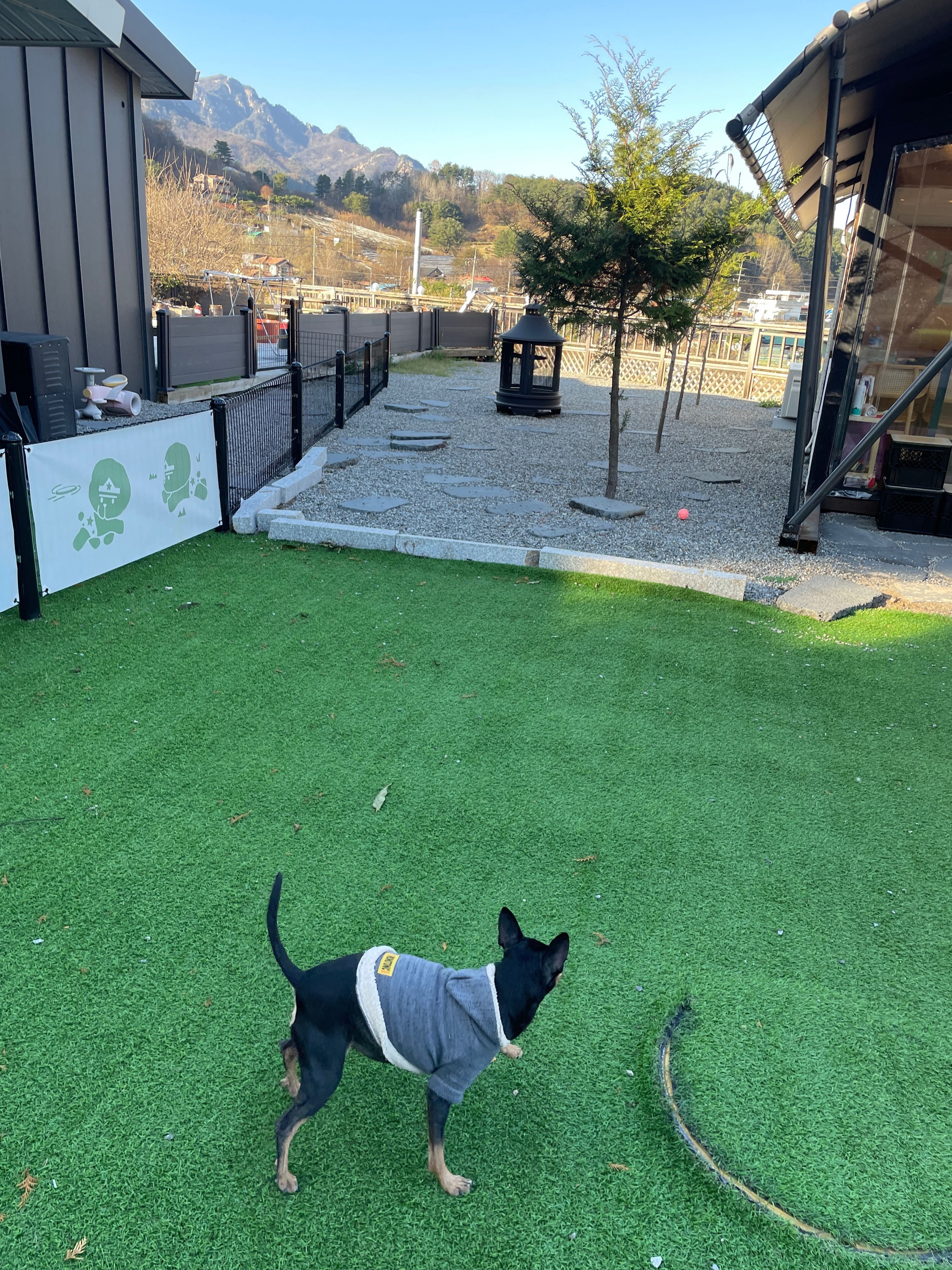 사교성 없는 애들이라 개별운동장이 있는 곳으로 알아보다 방문한 곳인데, 운동장도 넓고 객실 내부에 구비된 용품, 강아지 용품이 깔끔해서 너무 만족스러웠습니다!