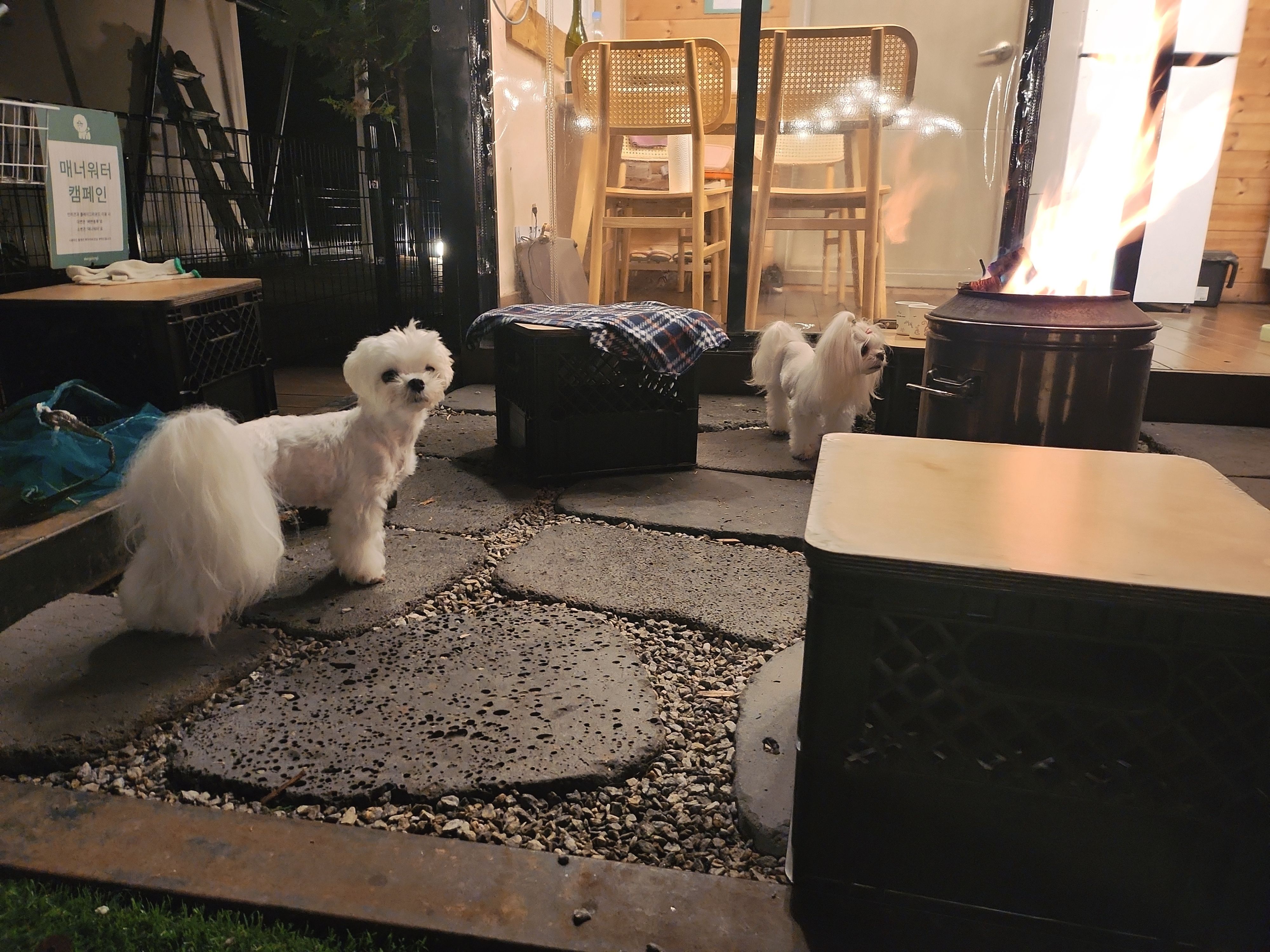날이 좀 추웠는데 바람막이도 있고 히터도 있어서 하나도 안추웠어용 특히 개별 운동장 있어 댕댕이 맘껏 뛰게 할수있어서 너무 좋았어요 ㅎㅎ