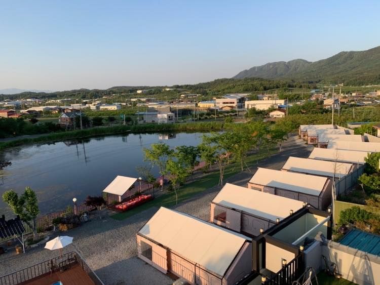 키즈팜 글램핑장은 대구에서 차로 40분 거리인 영천에 위치한 글램핑장이다. 대구는 물론 구미나 부산, 포항에서도 접근하기 좋은 위치이다. 총 10개의 글램핑장과 펜션을 함께 운영한다. 앞마당에 작은 호수를 바라보는 구조로 호젓한 기분을 내기 좋다. 호수에서는 낚시도 가능하며, 수영장과 실내 놀이터, 트램펄린, 노래방, 체험 텃밭 등 아이들이 놀기 좋은 시설이 준비되어 있어 아이들을 동반한 가족 단위 방문객이 많다. 함께 운영 카페는 날씨가 좋을 때는 루프탑에서 주변 경치를 즐길 수 있다. 글램핑은 개별 화장실 및 바닥난방에 에어컨이 설치되어 있고, 반려견 동반이 가능한데, 객실에 따라 차이가 있어 사전에 문의해야 한다.