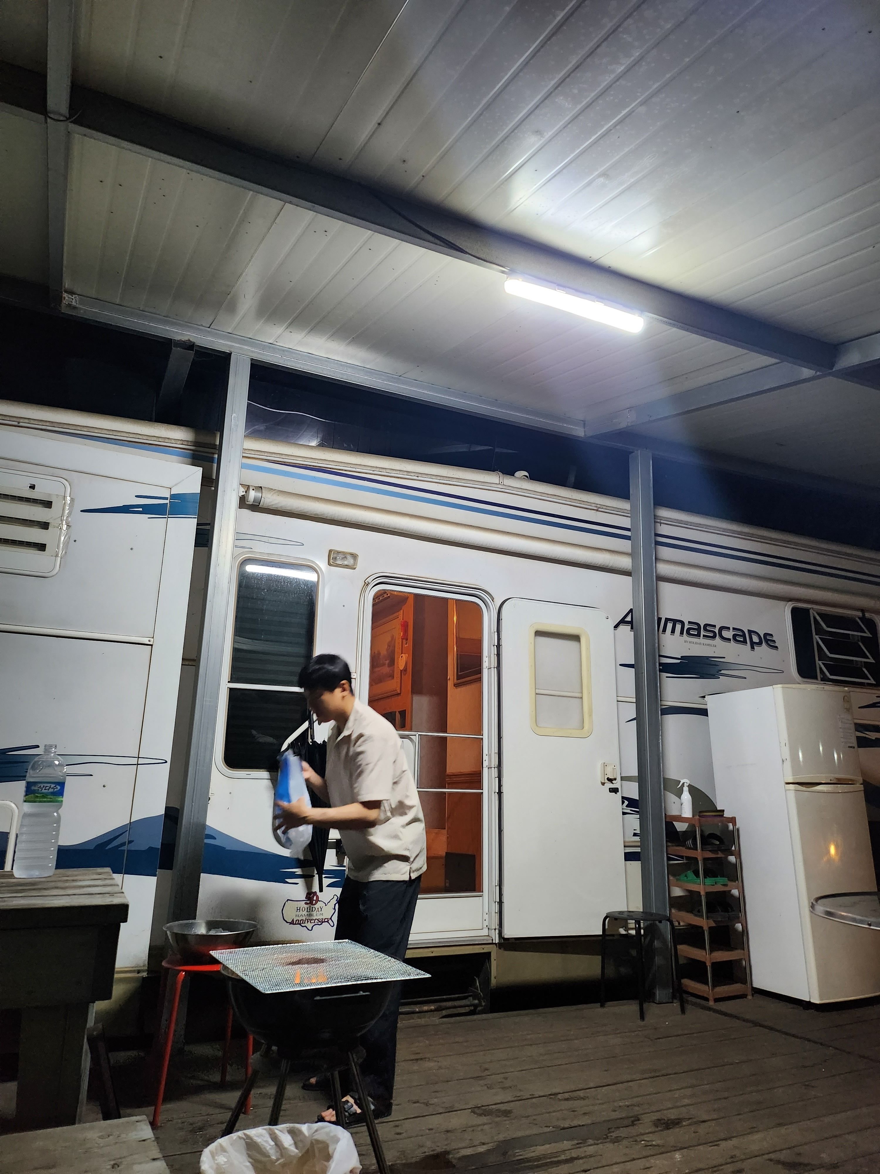 비도오고 오래된 카라반이라 나무로 되어있는 내부는 냄새가 났습니다. 오래되어 어쩔수 없는 냄새이지만 잠은 잘수없어 바베큐만 하고 돌아왔습니다. 내부 상태를 좀 더 신경 써 주시면 좋을거 같습니다