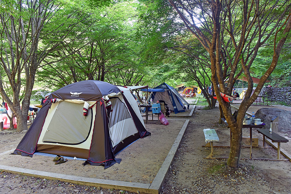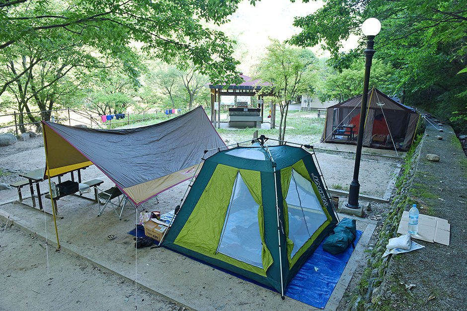 뱀사골 힐링야영장은 오토캠핑장보다 일반 사이트가 더 많다. 주차장에 차를 대고 캠핑용품들을 200~400m가량 걸어서 옮겨야 한다. 그런데도 많은 이들이 찾는 이유는 저렴한 가격과 기막힌 풍경 때문이다. 이곳은 ‘우리나라 아름다운 길’로 선정되었을 만큼 멋진 풍경을 자랑하는데 특히 가을 단풍철이면 자연의 예술을 만끽할 수 있다. 주차비가 별도로 있지만, 1일 사용료가 매우 저렴한 편이다. |