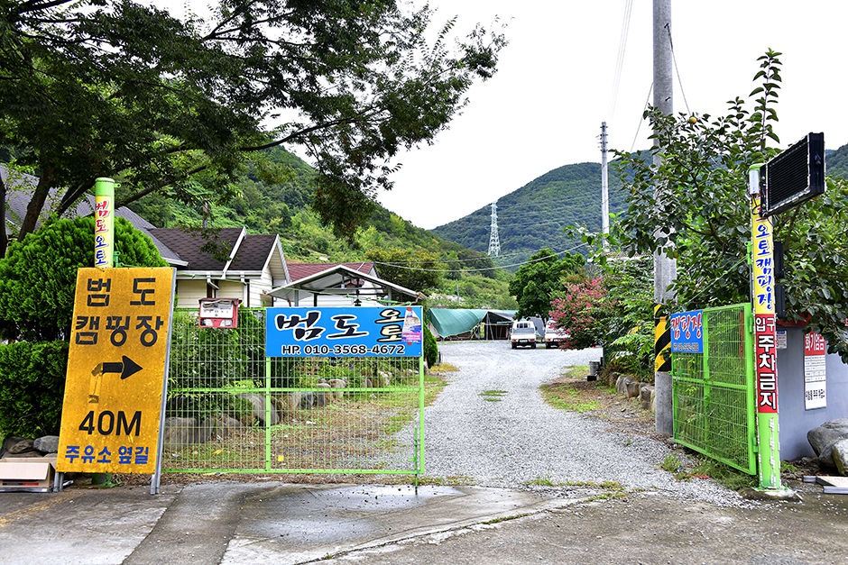 범도오토캠핑장은 밀양 범도에 있는 야영장으로 초보 캠퍼들이 캠핑하기에 좋은 곳에 자리하고 있다. 캠핑장이 도로 옆이라 진입이 쉽고, 주유소가 진입로 바로 옆에 있어 차량 주유와 겨울철 유류 구입 등 이용이 편리하다. 그 옆으로 편의점과 마트가 있어 급하게 필요한 것이 생기면 이용할 수 있다. 캠핑장은 파쇄석 사이트를 가지고 있어 배수가 잘 되며, 자리가 넓어 여유롭게 텐트를 칠 수 있어 옆 캠퍼들과 불편하지 않게 지내다 올 수 있다. 전기 사용이 가능하며 릴선은 10 미터면 충분하다. 캠핑장 전 구역 와이파이 사용이 가능하다. 여름에는 캠핑장 앞에 계곡이 있어 어린이들과 물놀이와 물고기 잡기 체험을 할 수 있다. 어린이를 위한 실내 놀이터가 있어 궂은 날씨에 관계없이 자녀들을 돌볼 수 있다. 어린이들이 좋아하는 트램펄린도 연령별로 나누어져 있어 안전하게 놀 수 있다.