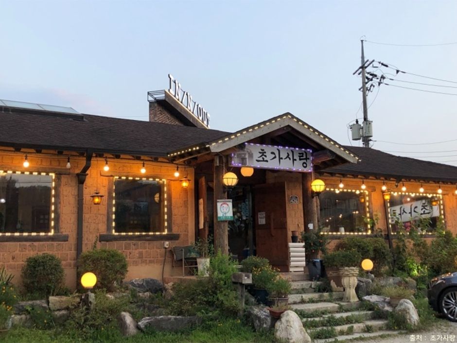 블루리본서베이에서 인증한 퓨전 한정식집이다. 남한강 전경이 한눈에 펼쳐지는 자연 속에서 맛있는 한정식을 즐길 수 있다. 초가사랑은 황토와 나무 초가로 건축되어 자연 친화적이며 우리 옛 정서를 그대로 간직하고 있다. 신선하고 좋은 식자재를 이용해 맛깔스럽고 깔끔하게 조리한 코스한정식이 대표메뉴이다. 천연 소스를 이용해 조리하여 웰빙 시대에 맞는 음식이다.