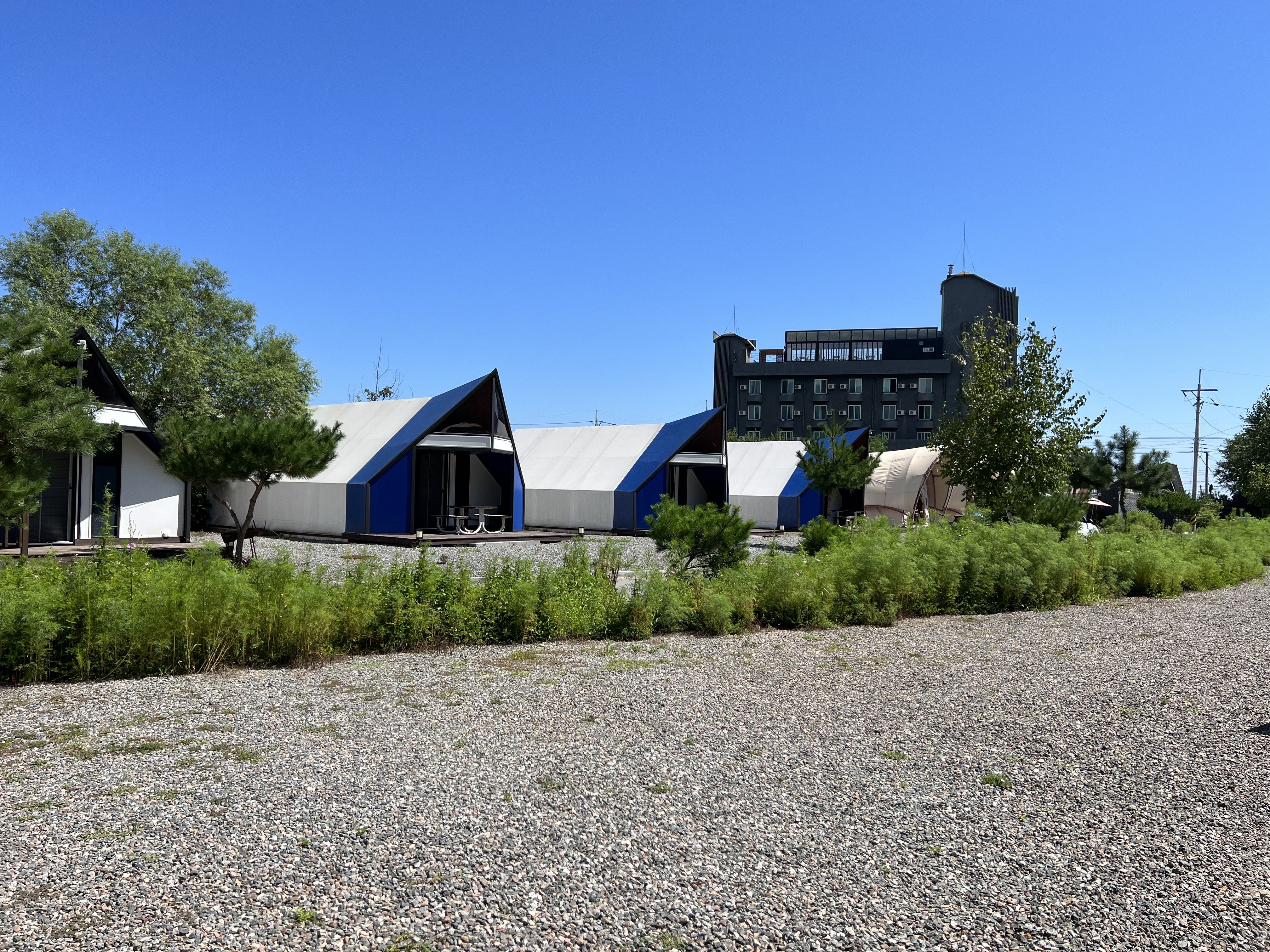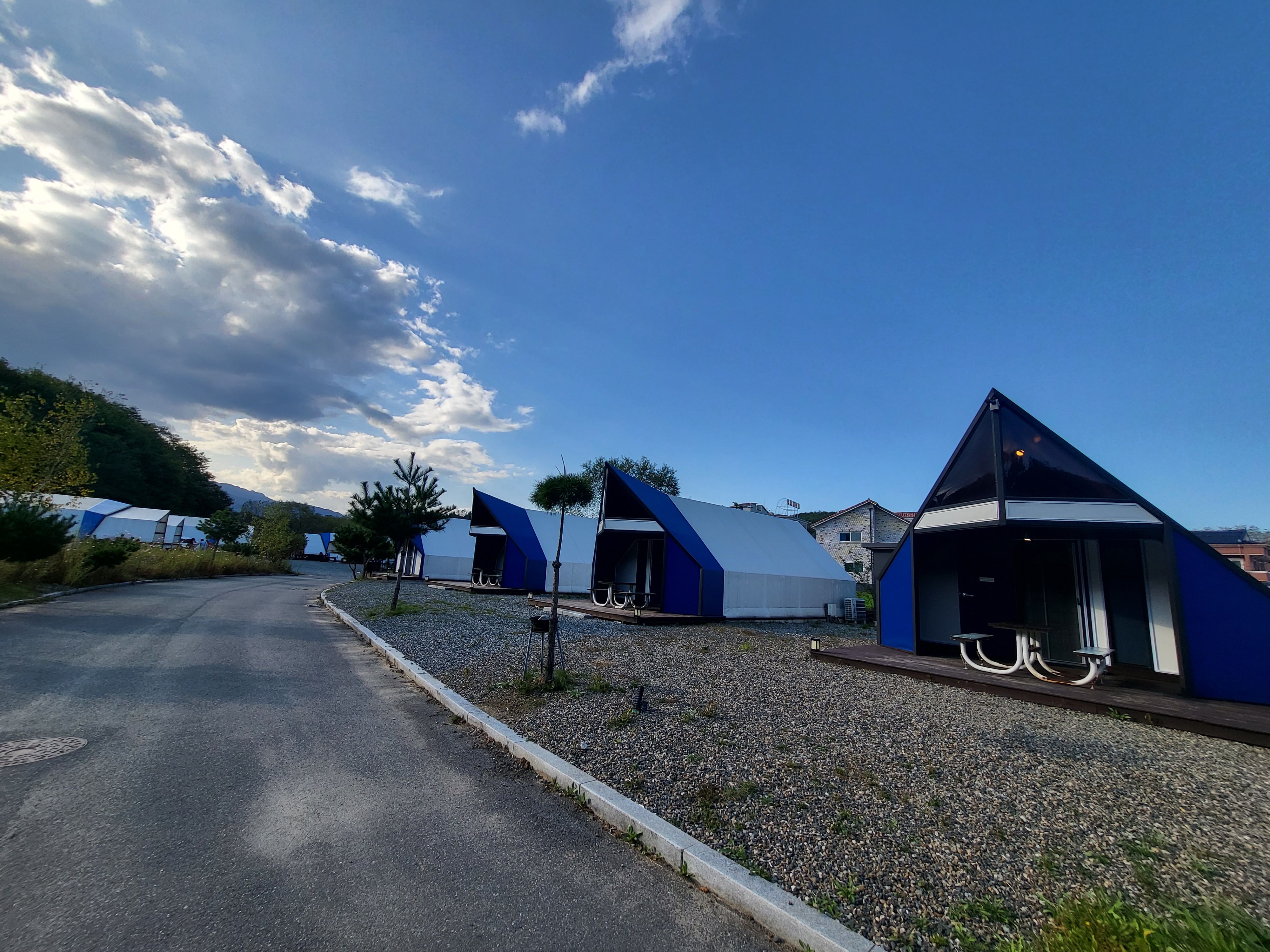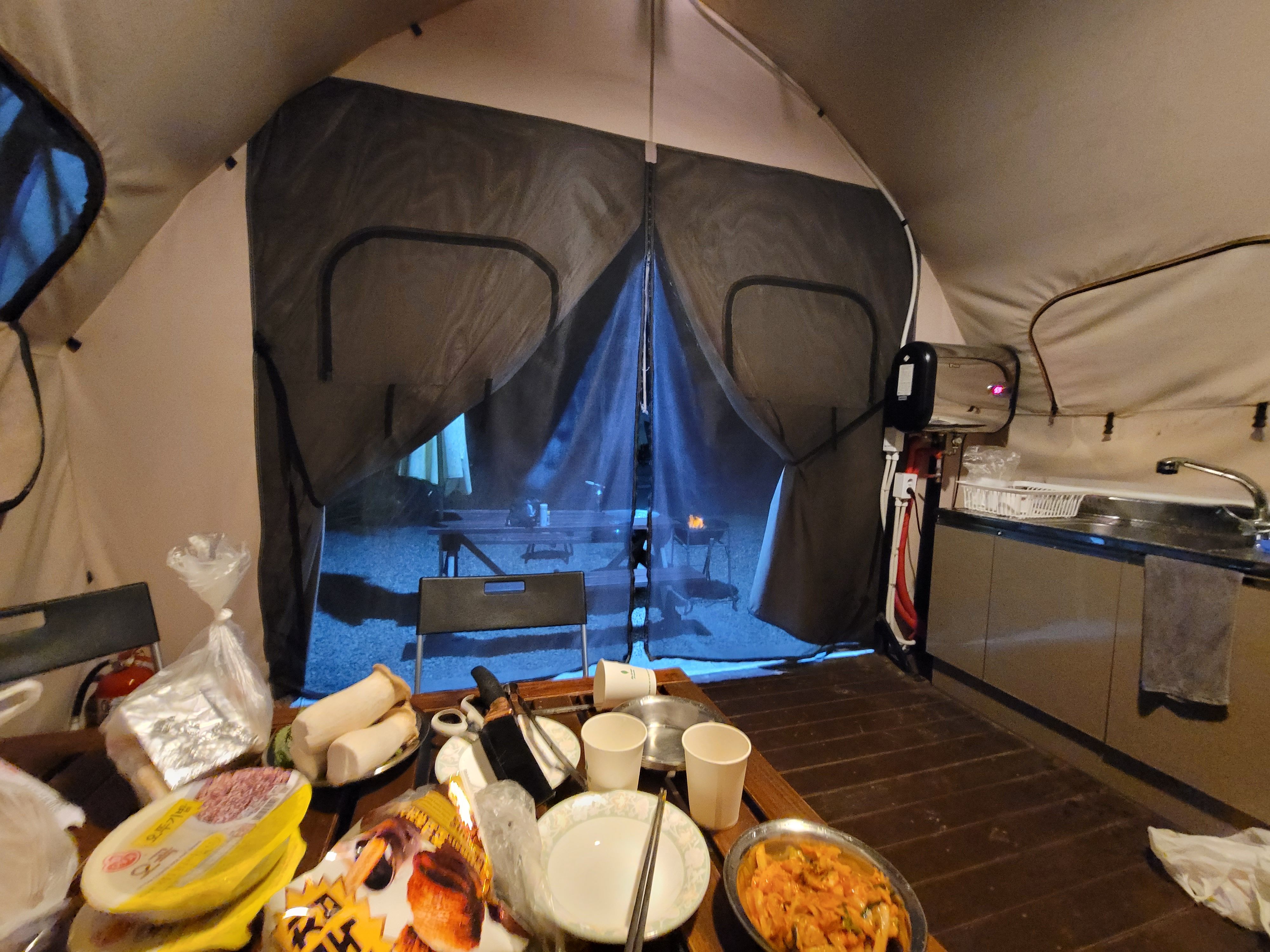 먼저, 그랑블루 글램핑 캠핑장의 시설은 매우 깔끔하고 현대적이예요. 각각의 글램핑 텐트는 넓고 편안한 침대와 주방 시설 등이 완비되어 있어서 숙박하는 동안 아주 편안함을 느낄 수 있었고, 화장실과 샤워 시설도 깨끗하게 관리되어 있어서 불편함 없이 이용할 수 있었네요~ 저희는 여자셋이서 가서 문단속도 중요했는데, 텐트 문이 열쇠문이라 보안도 좋았습니다.