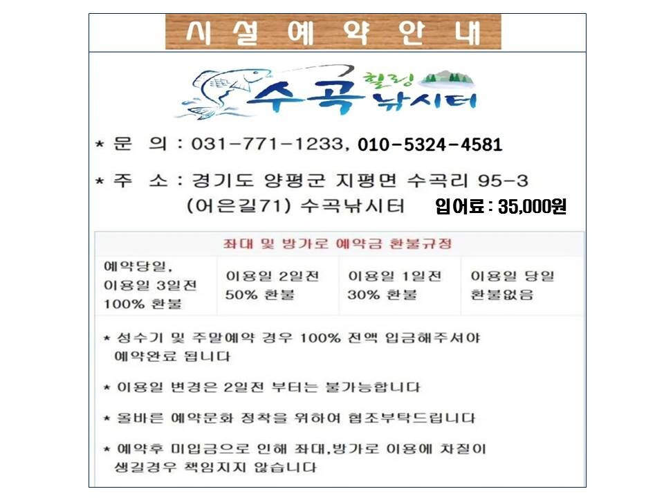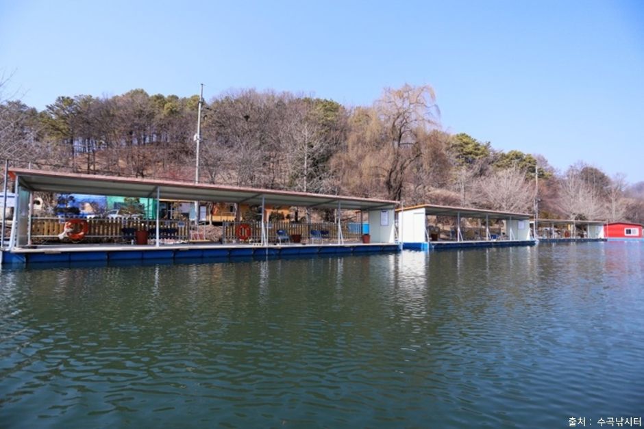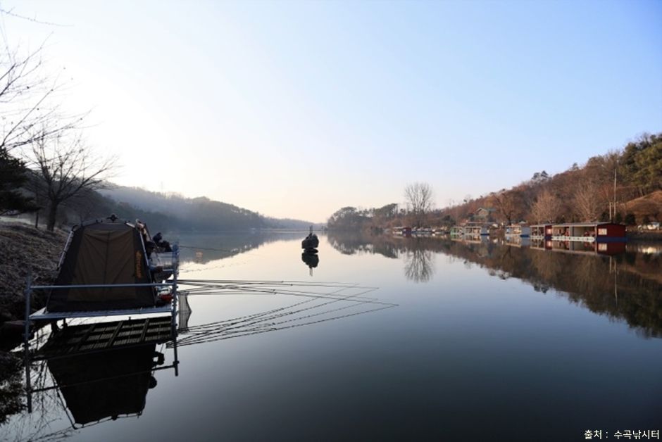 수곡 낚시터는 칠보산 기슭 해발 120m에 자리 잡고 있어 자연경관이 아름다운 낚시터이다.