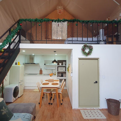작년에 풀램핑장으로 갔다가 너무 만족해서 올 여름휴가 또 갔어요! 이번엔 글램핑장 이용했고 역시나 너무 만족스러워요 가족들도 다 엄청 맘에들어했어요! 재재방문 의사 있어요