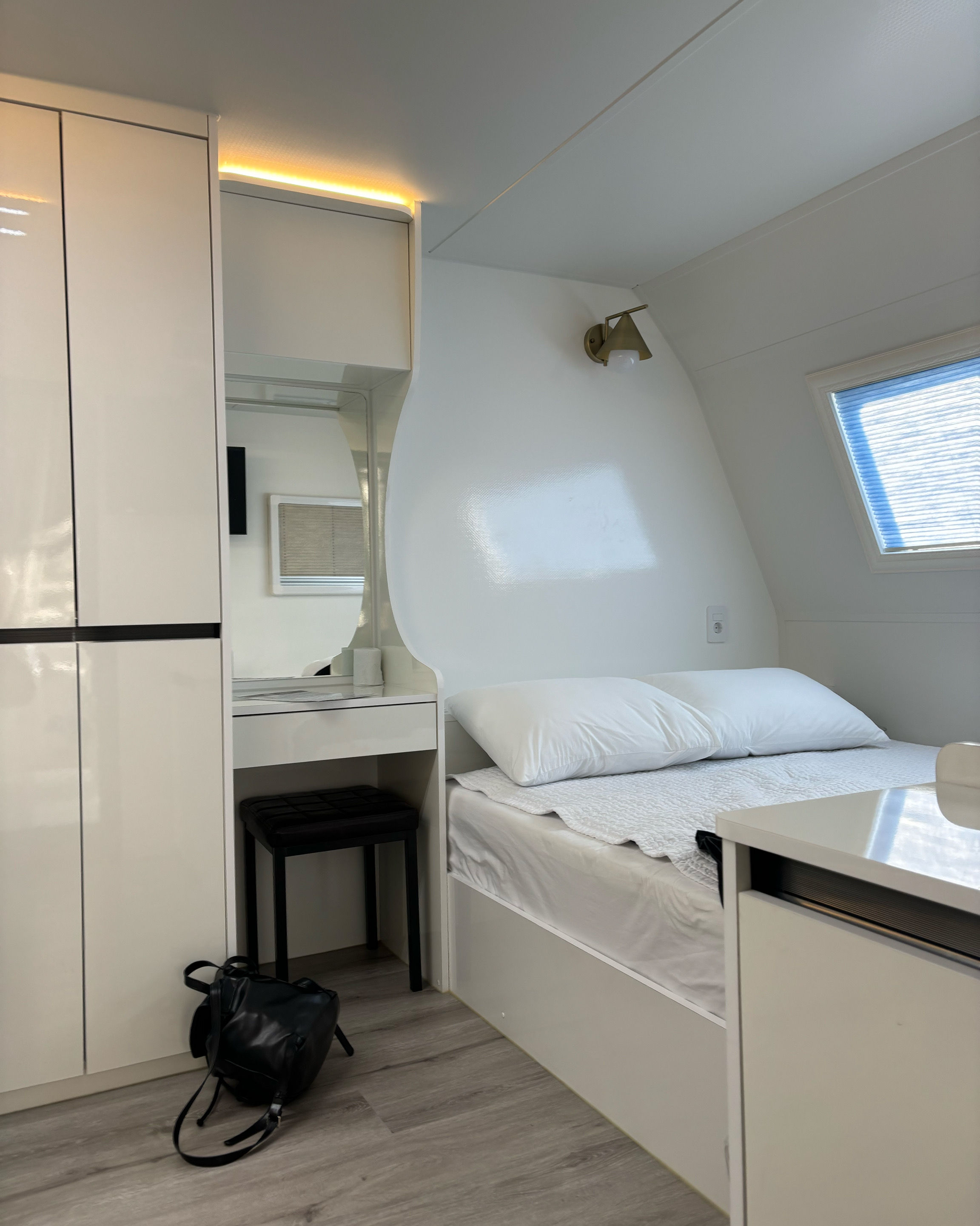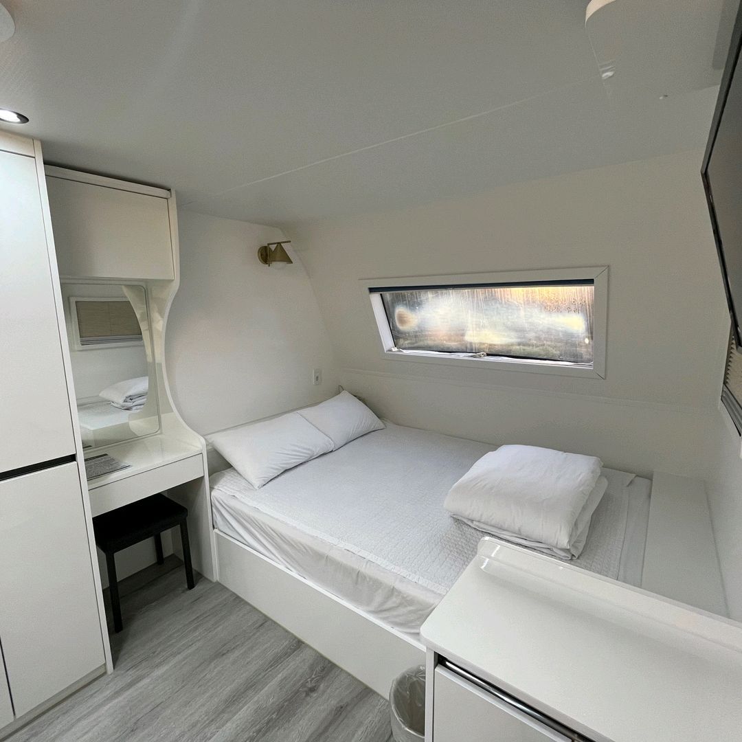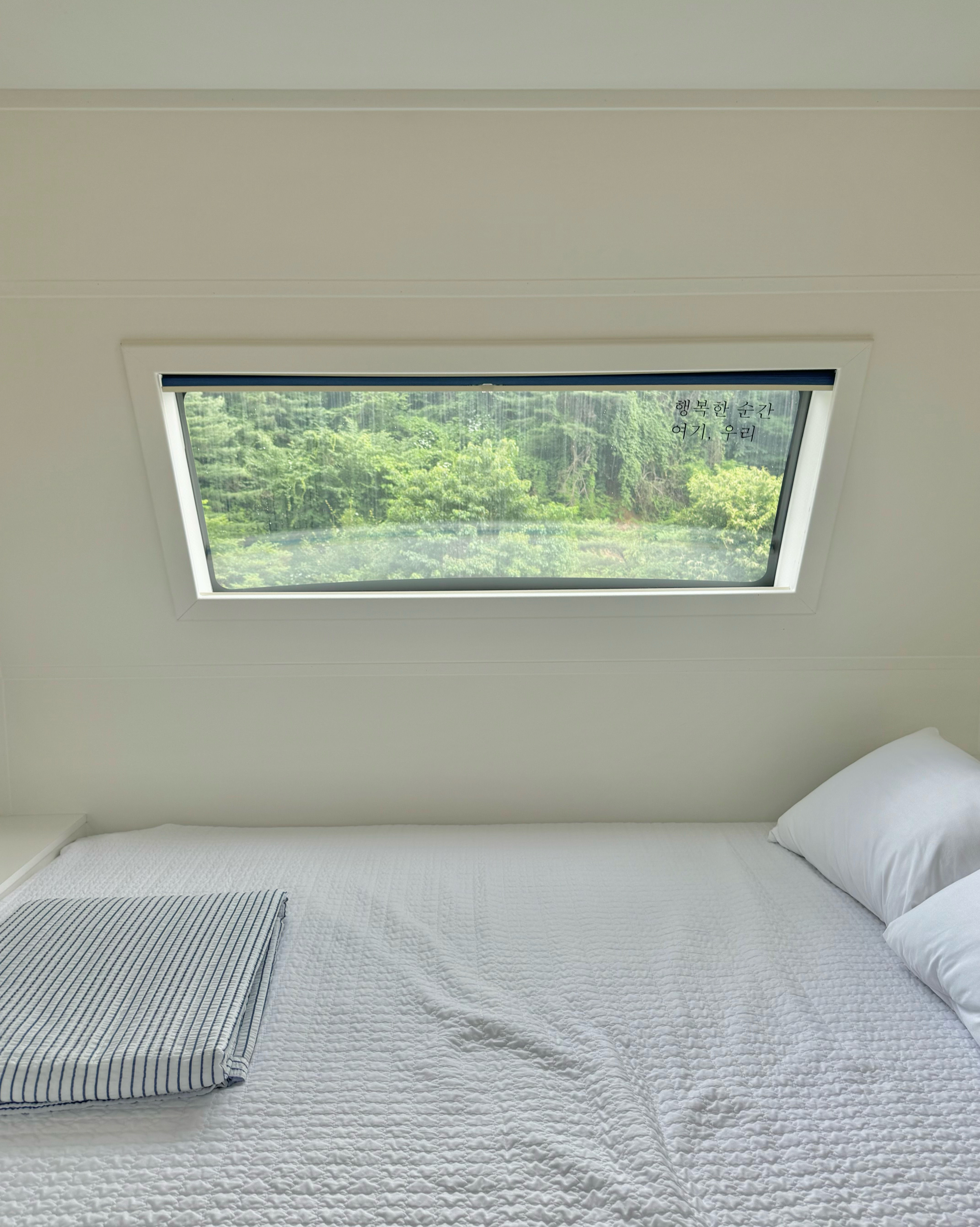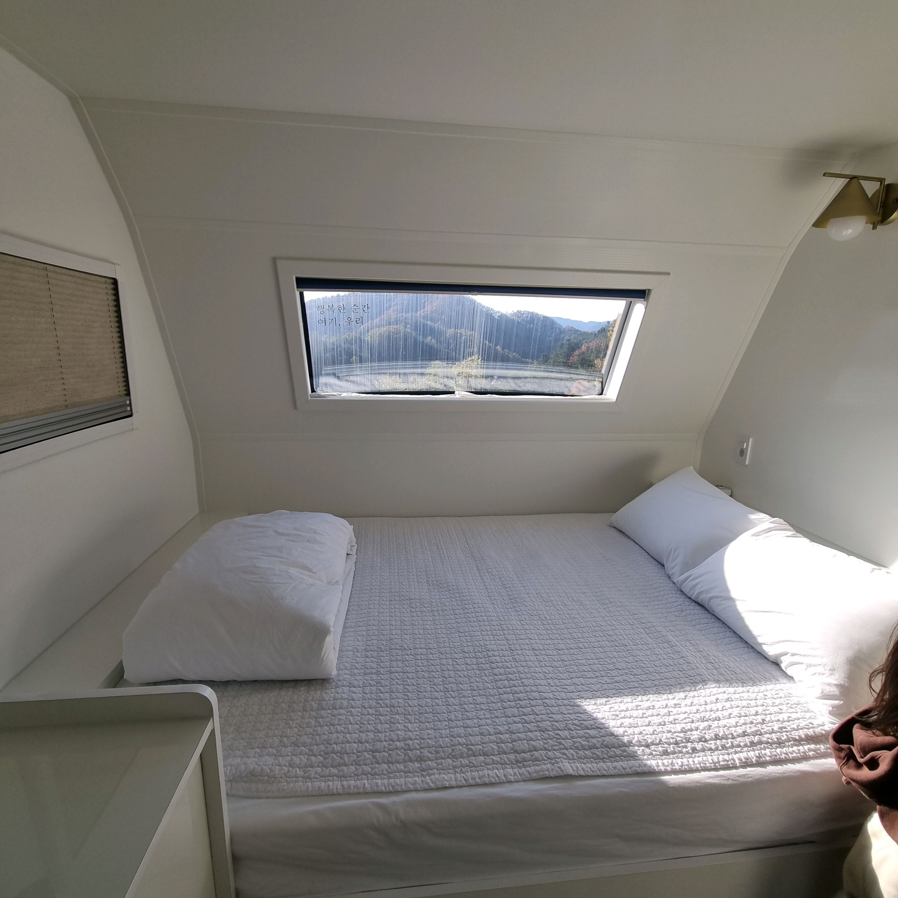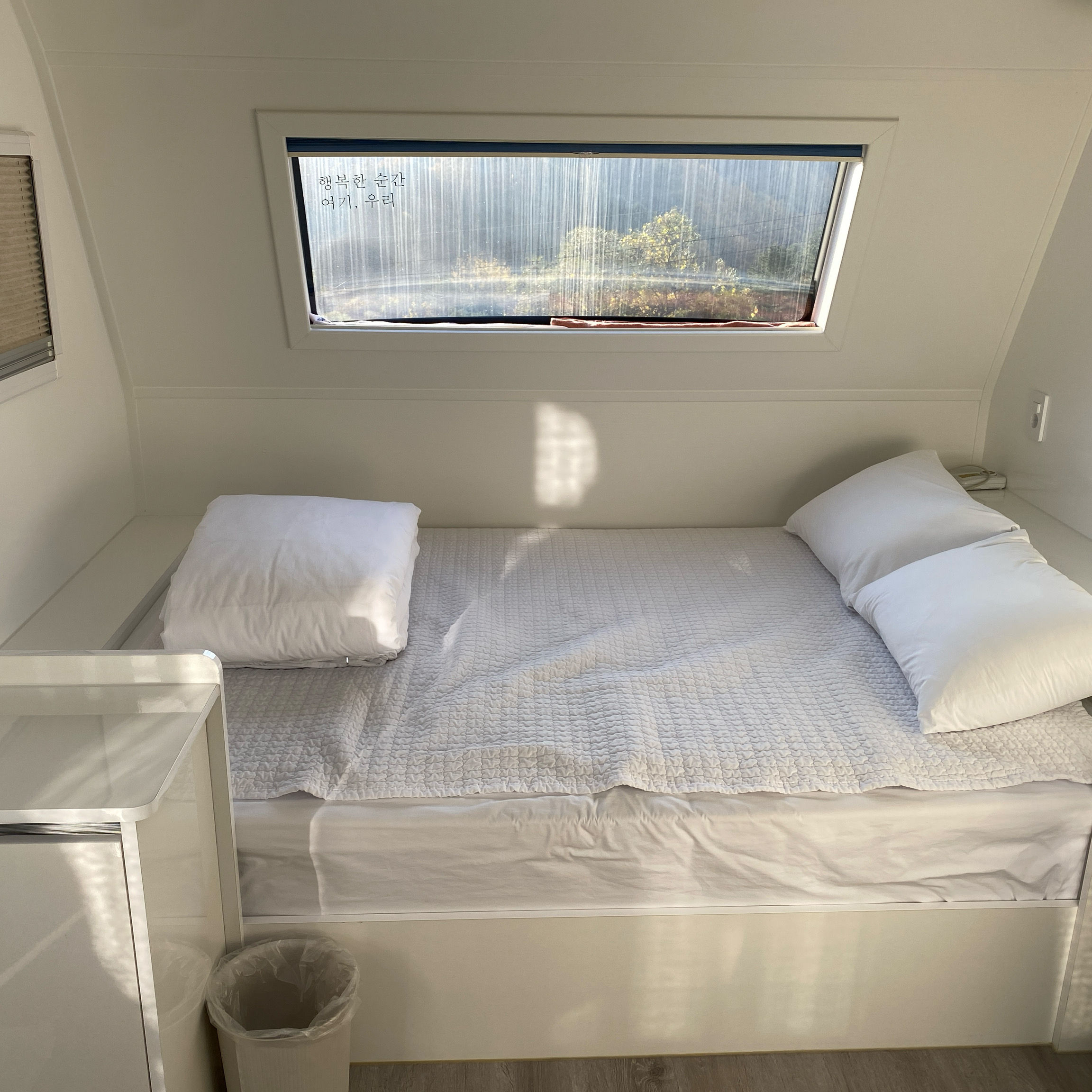 카라반 내부는 전부 화이트톤으로 깔끔하게 정리되어있어서 사진찍기 좋았고, 특히 화장실이 다른 숙박업소와 다르게 너무너무 깔끔했습니다!