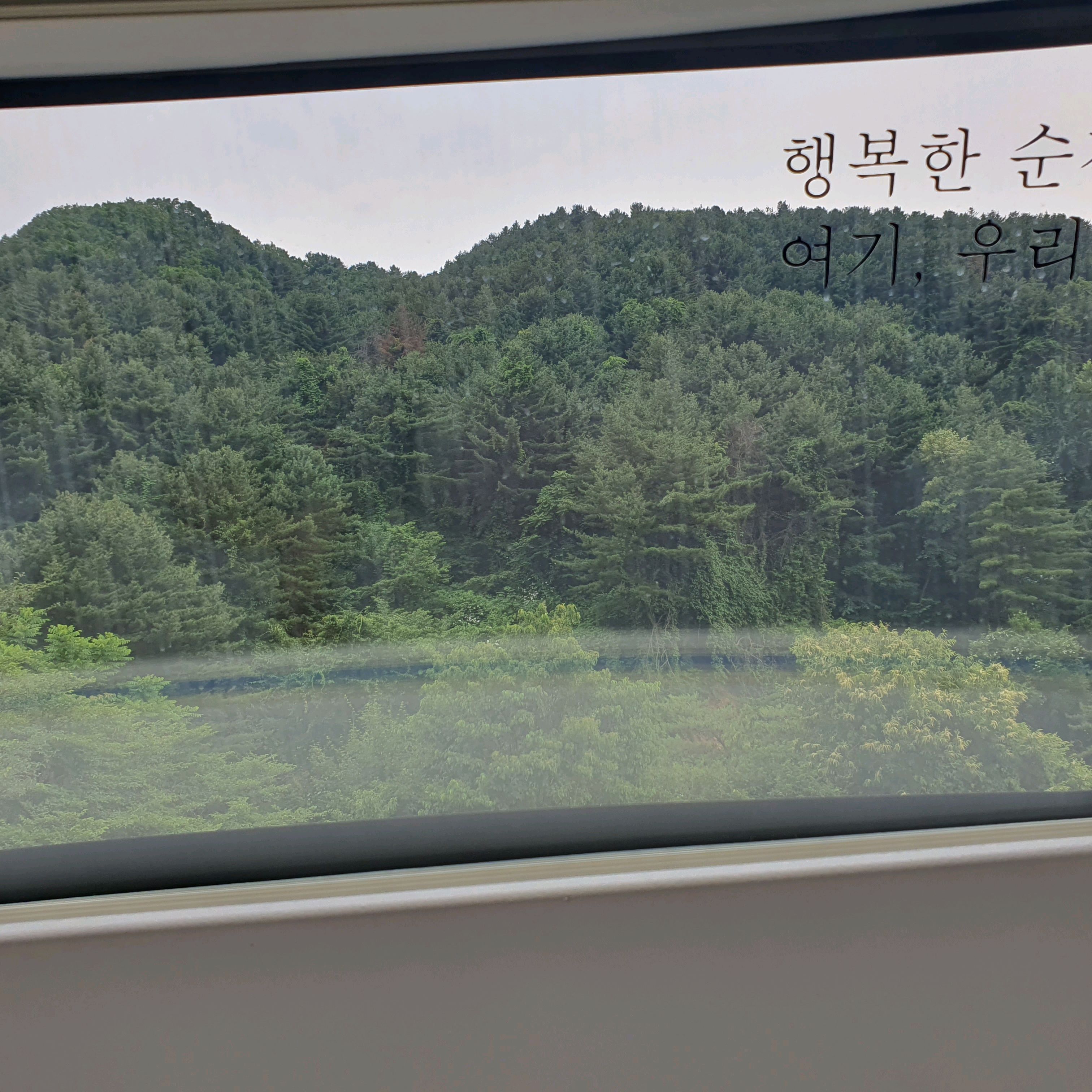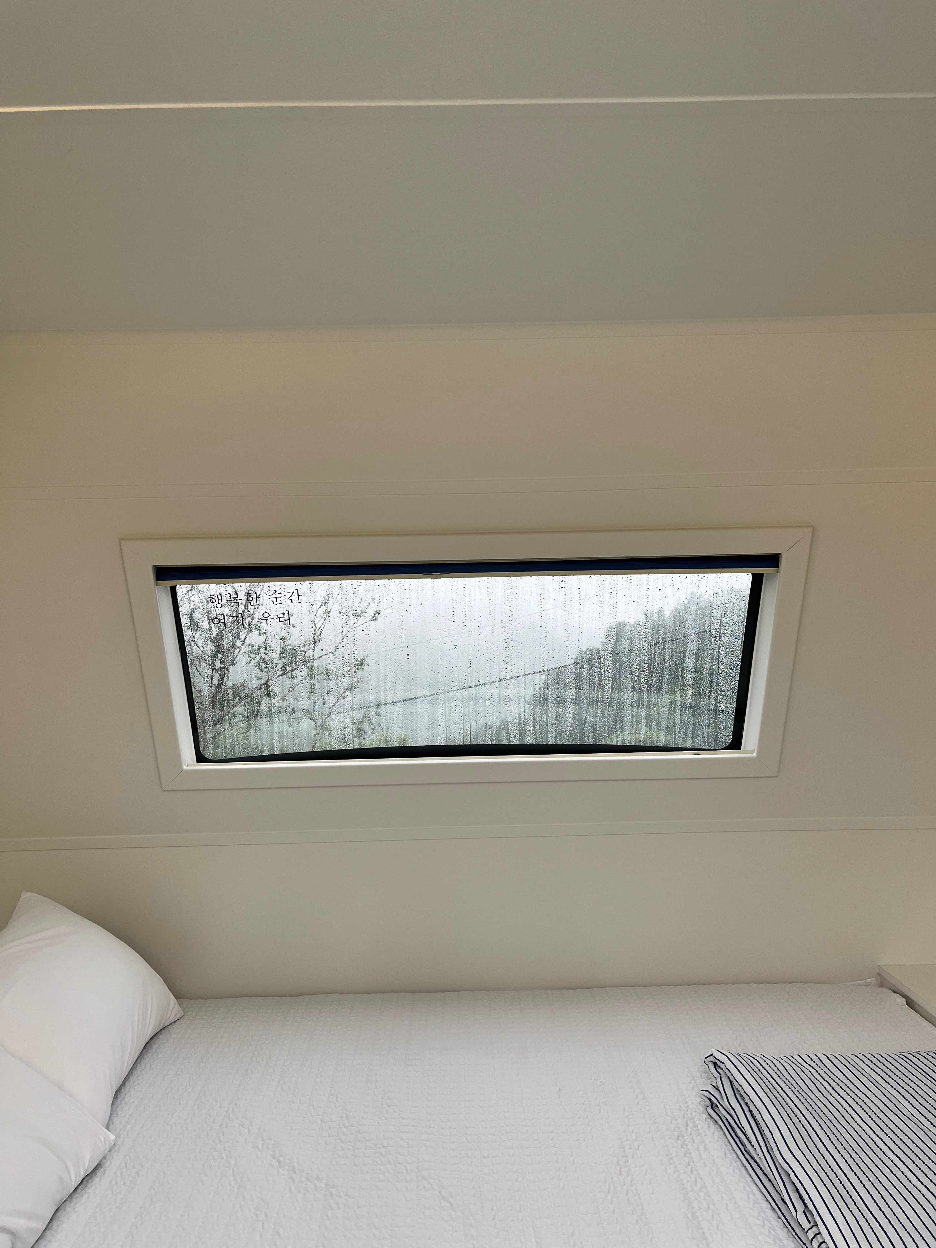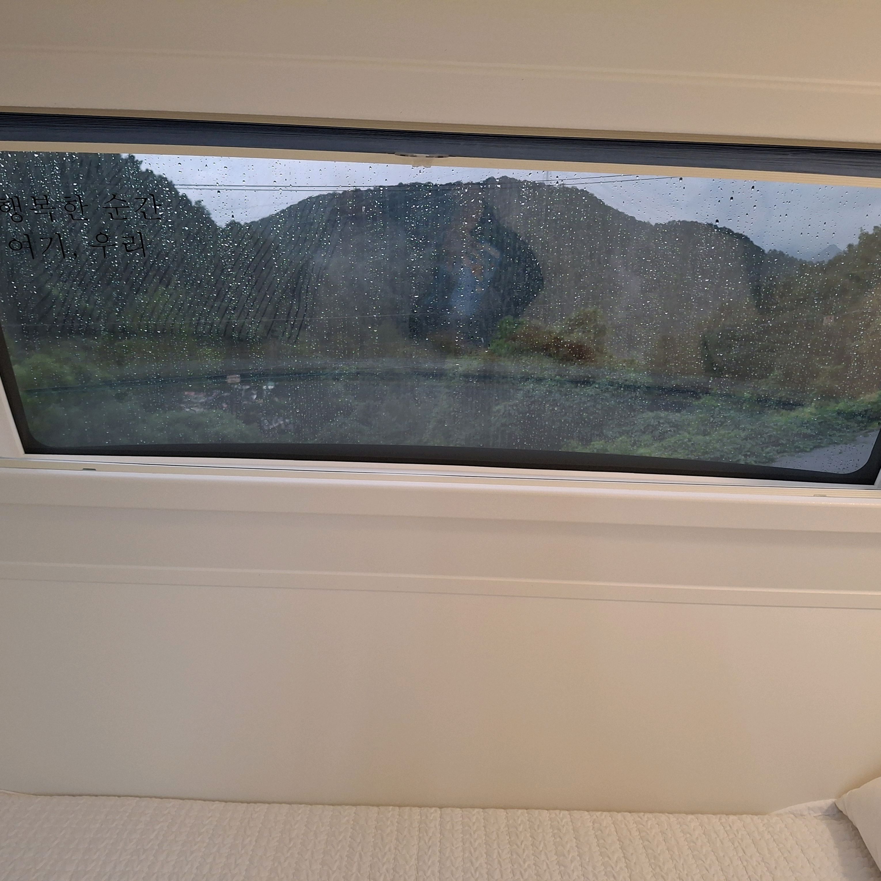 카라반안에서 찍은 비오는 날의 밖 경치//
