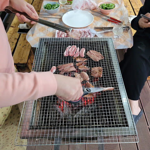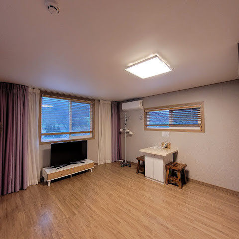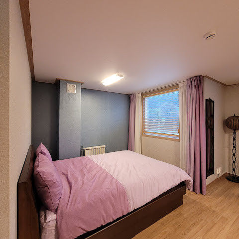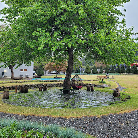 펜션으로 들어가는 길이 조금 좁지만 펜션에 넓은 마당과 산책로가 있습니다. 수영장과 불멍을 할 수도 있습니다. 저녁에 바베큐를 신청(2만 원)해서 숯을 준비해주셨습니다. 공동취사장에 그릇, 컵, 냄비, 숟가락, 젓가락, 전자레인지, 전기포트, 가스레인지 등이 있어서 편리합니다. 아침에 조식(인당10,000원)을 신청하면 나물 반찬에 밥을 먹을 수 있습니다. 조식이 굉장히 맛있었습니다. 방에는 침대와 TV, 냉장고, 옷장, 옷걸이 등이 있습니다. 캠핑도 가능하고 계곡으로 내려갈 수도 있습니다. 산속이라 불편한 점도 있지만 조용히 지내다오기 좋습니다. 사장님 부부가 굉장히 친절하십니다.