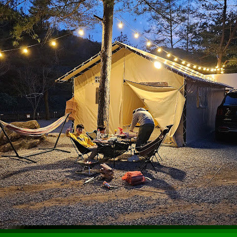 풍광 좋아요. 애들은 계곡에서 올챙이 잡다 수영장가서 놀고 방방타다 저녁먹고 불멍하는.매년 방문하는 캠핑장이에요.