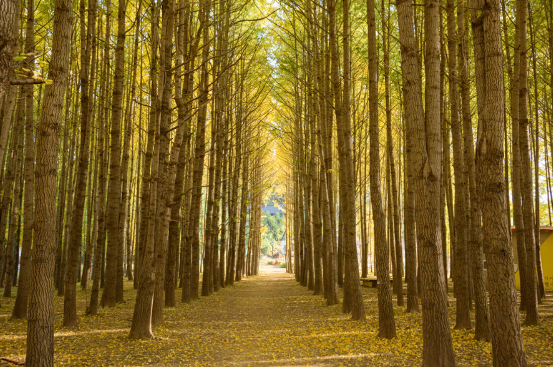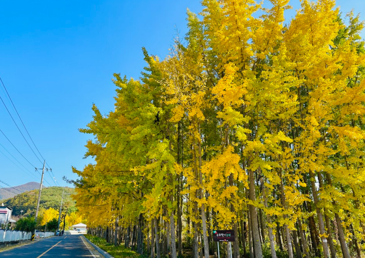 묘목 판매를 목적으로 심은 수많은 은행나무가 숲을 이루게 됐다. 열 맞춰 빽빽하게 나무를 심은 덕에 자작나무처럼 위로만 쭉 뻗은 늘씬한 은행나무가 이국적인 정취를 뽐낸다. 사진작가들이 매해 이곳을 찾고, 웨딩 촬영 성지로도 불린다. 마을 주민들이 먹거리 장터, 특산물 장터를 운영해 즐길 거리를 더하고 있다. *사진 출처: 경주문화관광 홈페이지, 경주시 공식 블로그