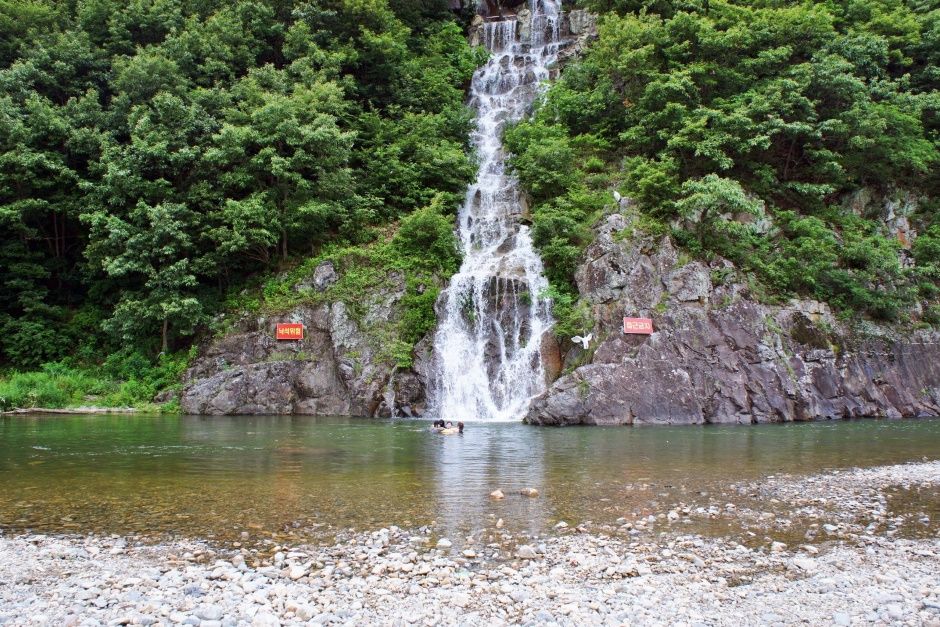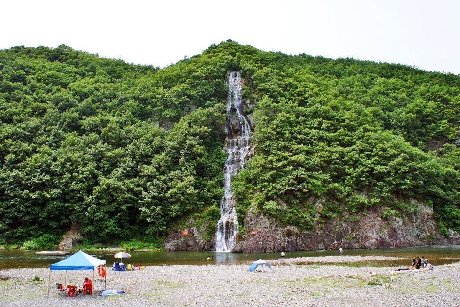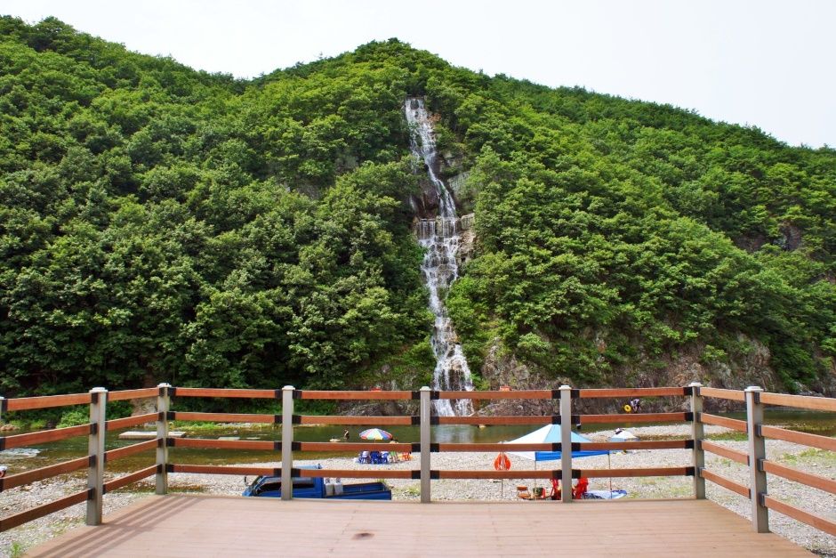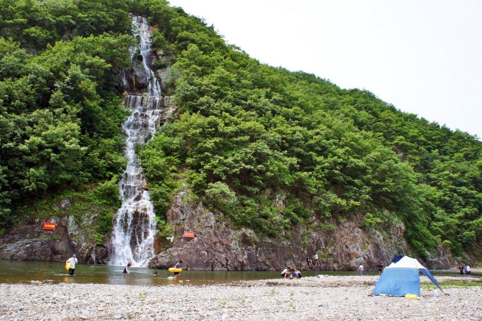 동장천 청룡폭포는 동창천 계곡에 자리 잡은 인공폭포다. 사방이 산으로 둘러싸여 있어 경관이 아름답다. 여름철에는 하천 뒤 절벽 꼭대기에서 시원스레 물줄기가 쏟아져 내린다. 이곳은 봄부터 가을까지 캠퍼들이 많이 찾는 노지 캠핑의 성지다. 여름 성수기에는 자리 맡기가 하늘의 별따기 수준이다. 오전 일찍 찾아야 허탕을 치지 않으니 참고할 것. 안전한 물놀이를 위해 성수기에는 주민자치단체에서 많은 노력을 기울인다. 수상안전요원이 상주하고, 주변 환경정화에도 힘쓴다.