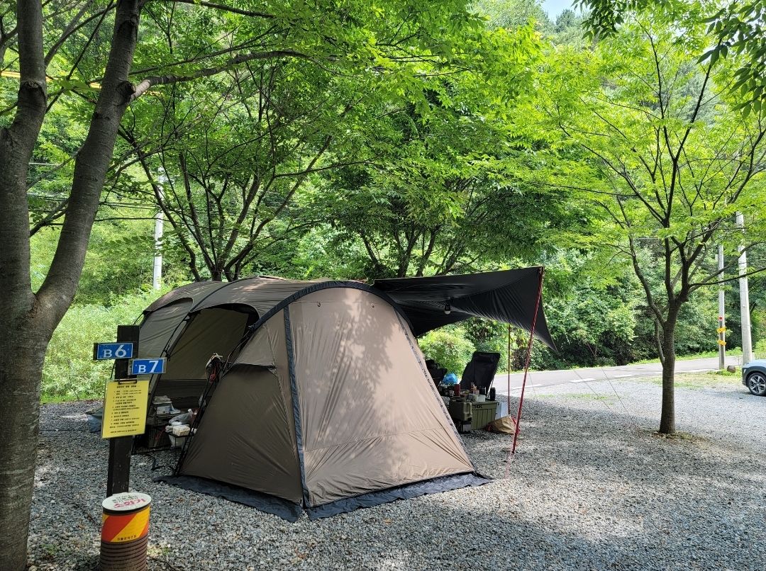나무그늘이 크게 있고 캠핑장 주위로 계곡물이 시원하게 흘러 폭염주의보 안전문자가 매일 몇번씩 오는 가운데도 폭염따위 느낄수 없을정도로 시원하게 쉬고왔어요^^