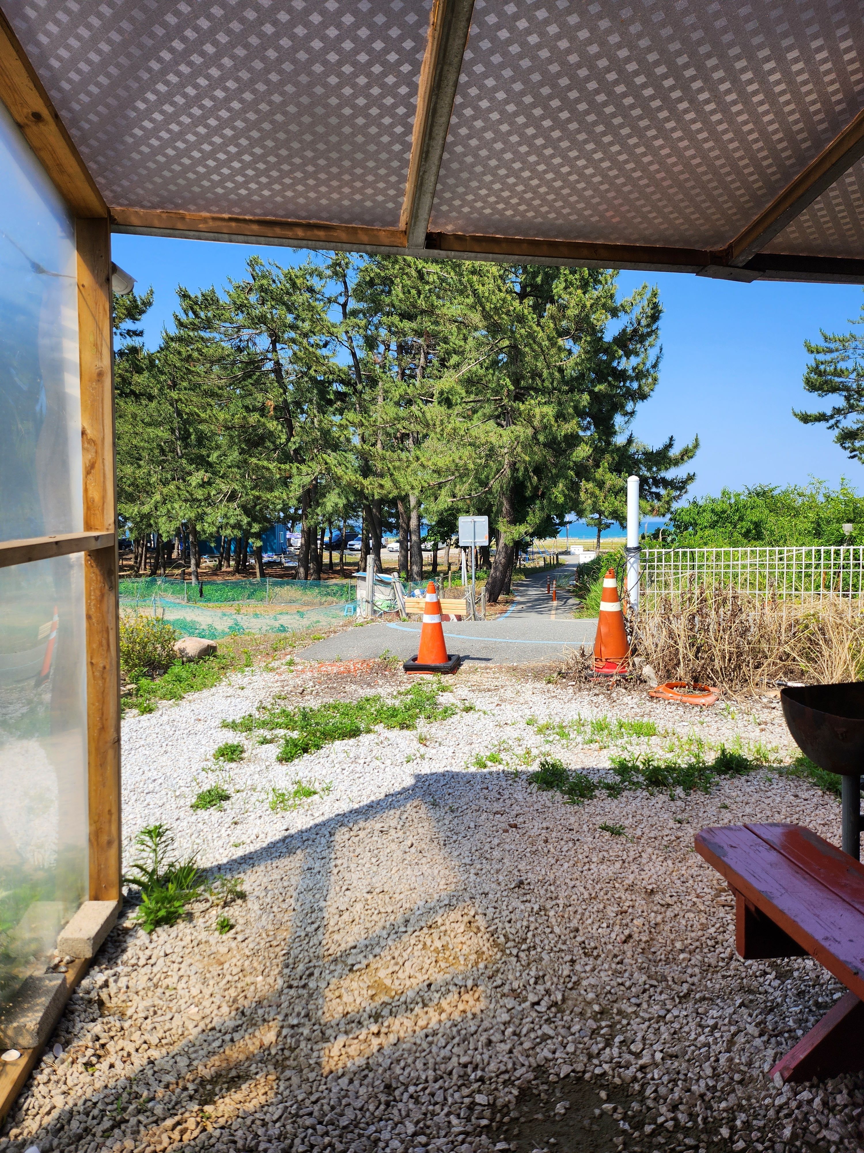 옷장도 있더라고요. 캠핑장 바로 앞이 바다고 나무가 있어 공기가 맑습니다.