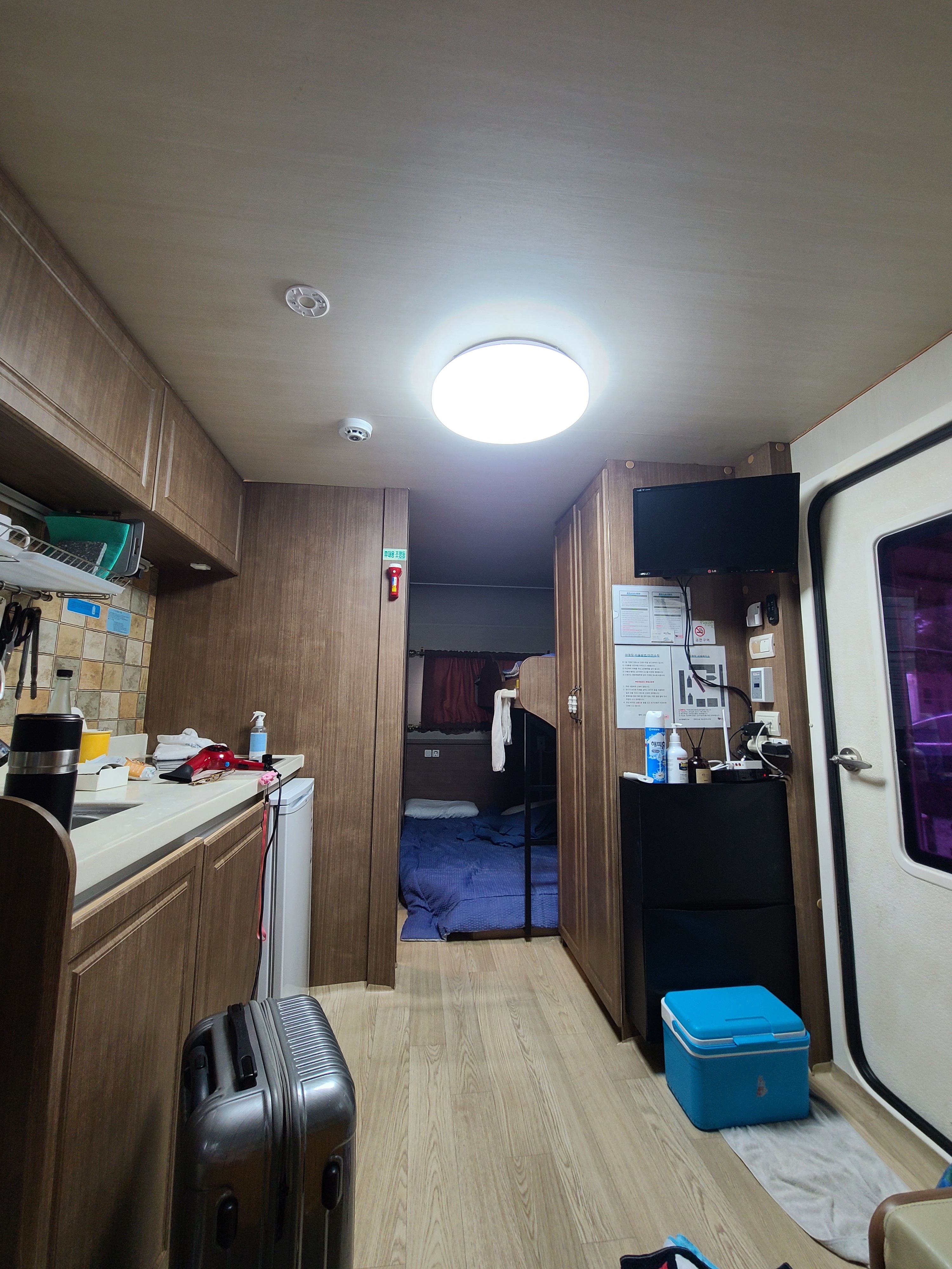 아주 청결하고요, 비교적 캠핑카 내부도 넓습니다. 혼자라서 그렇게 느껴졌을 수 있는데 예전 다른 곳에서 이용한 카라반보다는 컸어요.