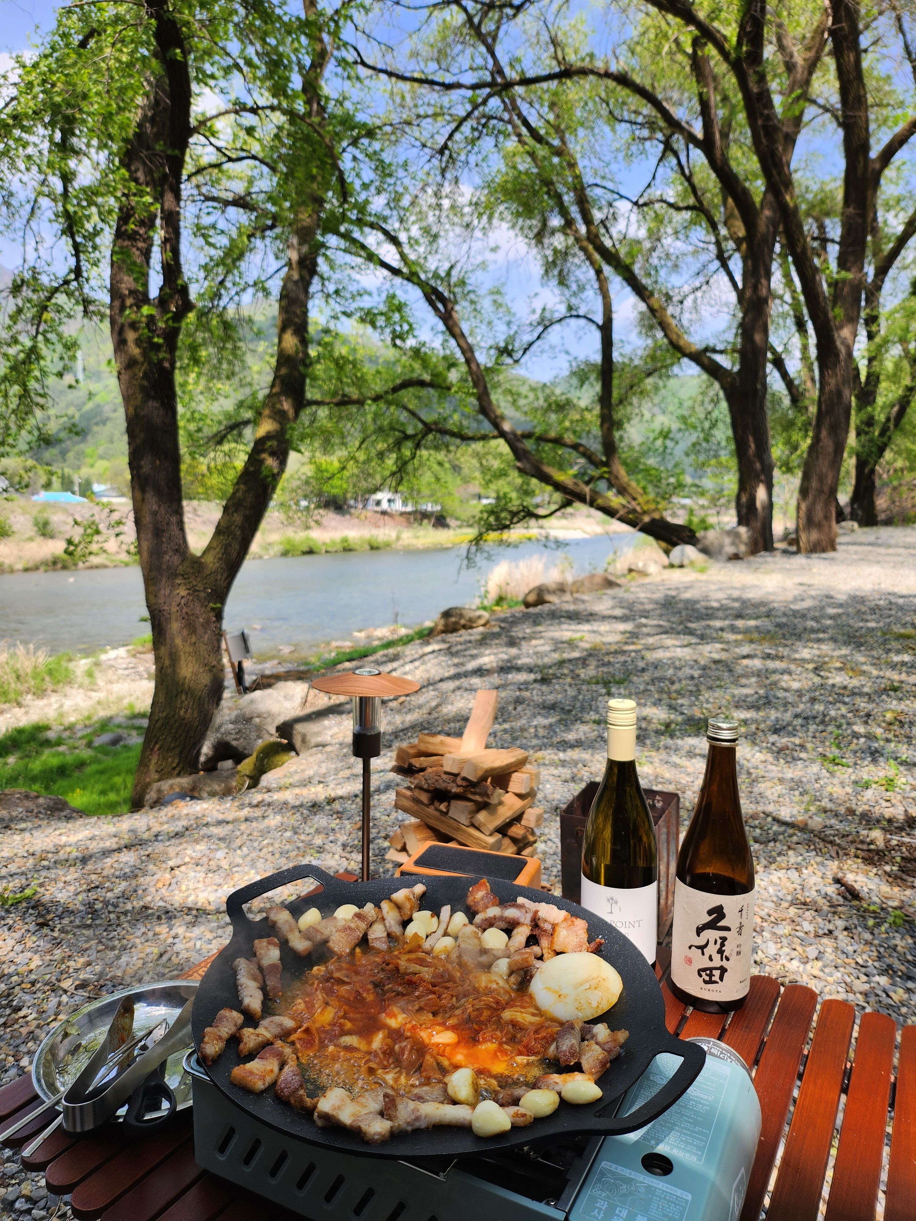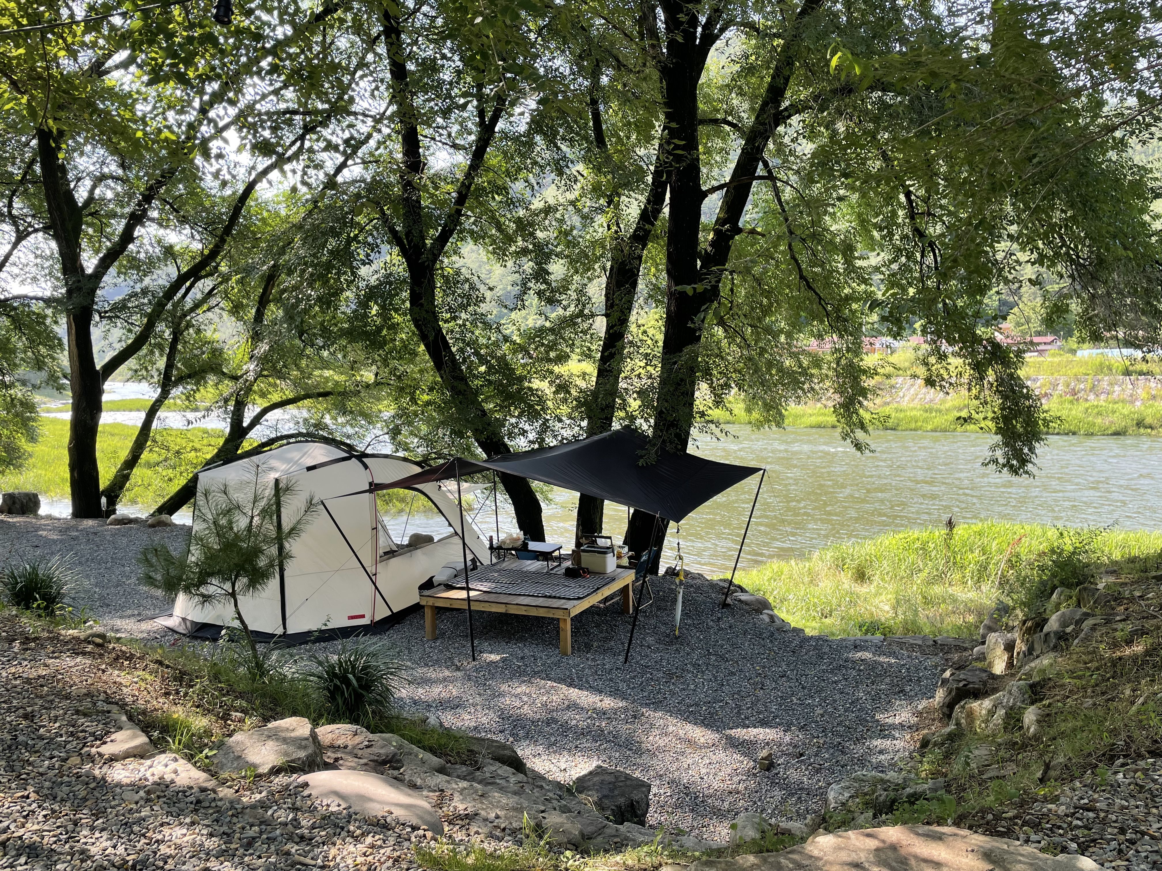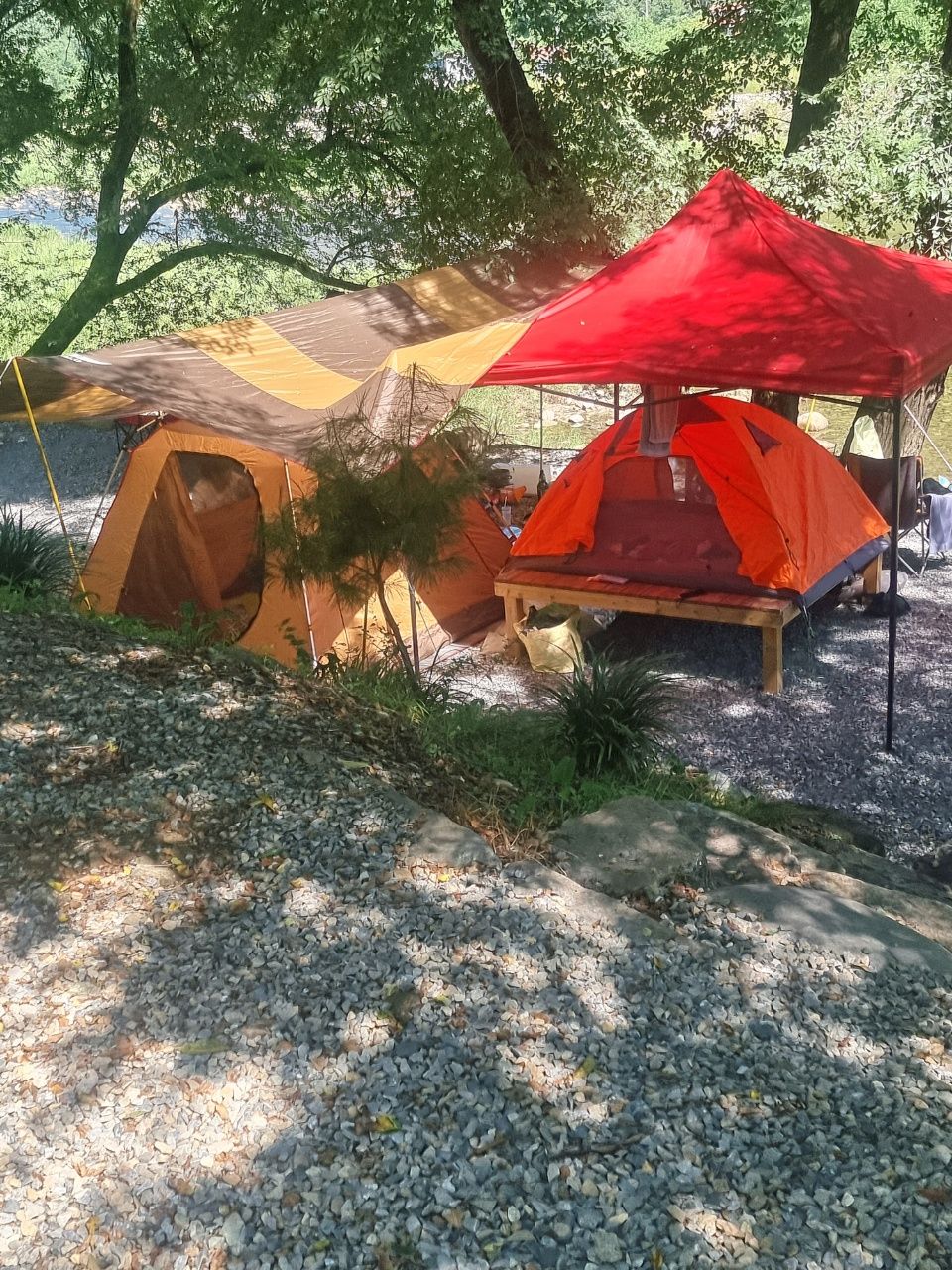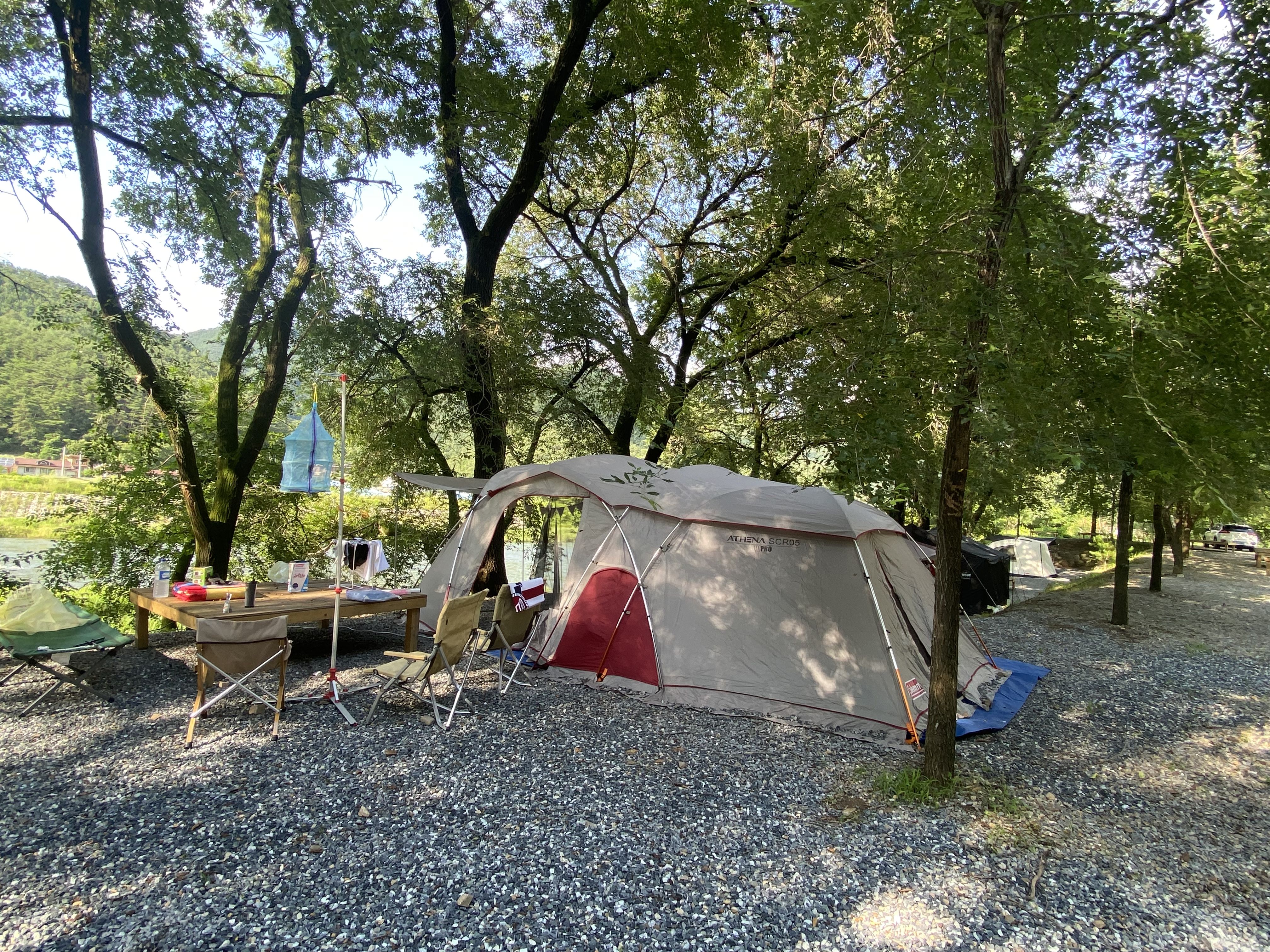 캠핑장 간격도 꽤 넓은편이고, 전반적으로 시설도 깨끗해요. 일단 앞쪽에 물놀이 하기 딱 좋은 깊이의 강이 있어서 어른들도 잠시 발담구기 좋았고, 사이트에서 바라보는 뷰는 말할 것도 없습니다 ❤️ 무릉도원인 줄 알았어요. 사장님도 진짜 후기 그대로 정말 친절하십니다 :) 거리만 가까우면 단골 하고싶은 ㅜㅜ 다음에 또 놀러갈게요!!
