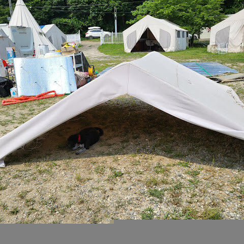 캠핑장 지도에서 보앗던 언덕위 사이트들은 이용 불가하여 당황했지만 지붕 있는 사이트로 자리 잡아 주셔서 다행이였네요