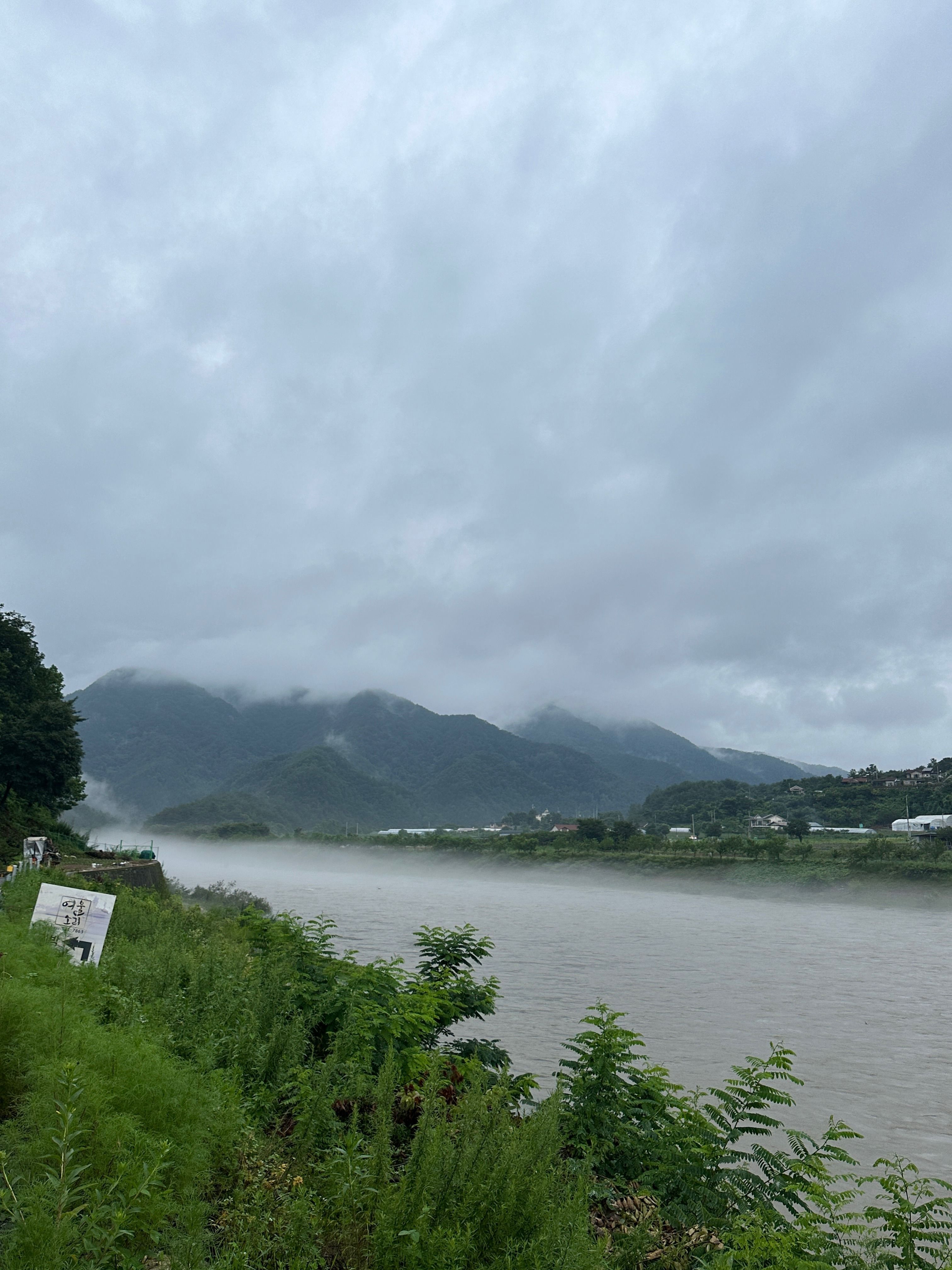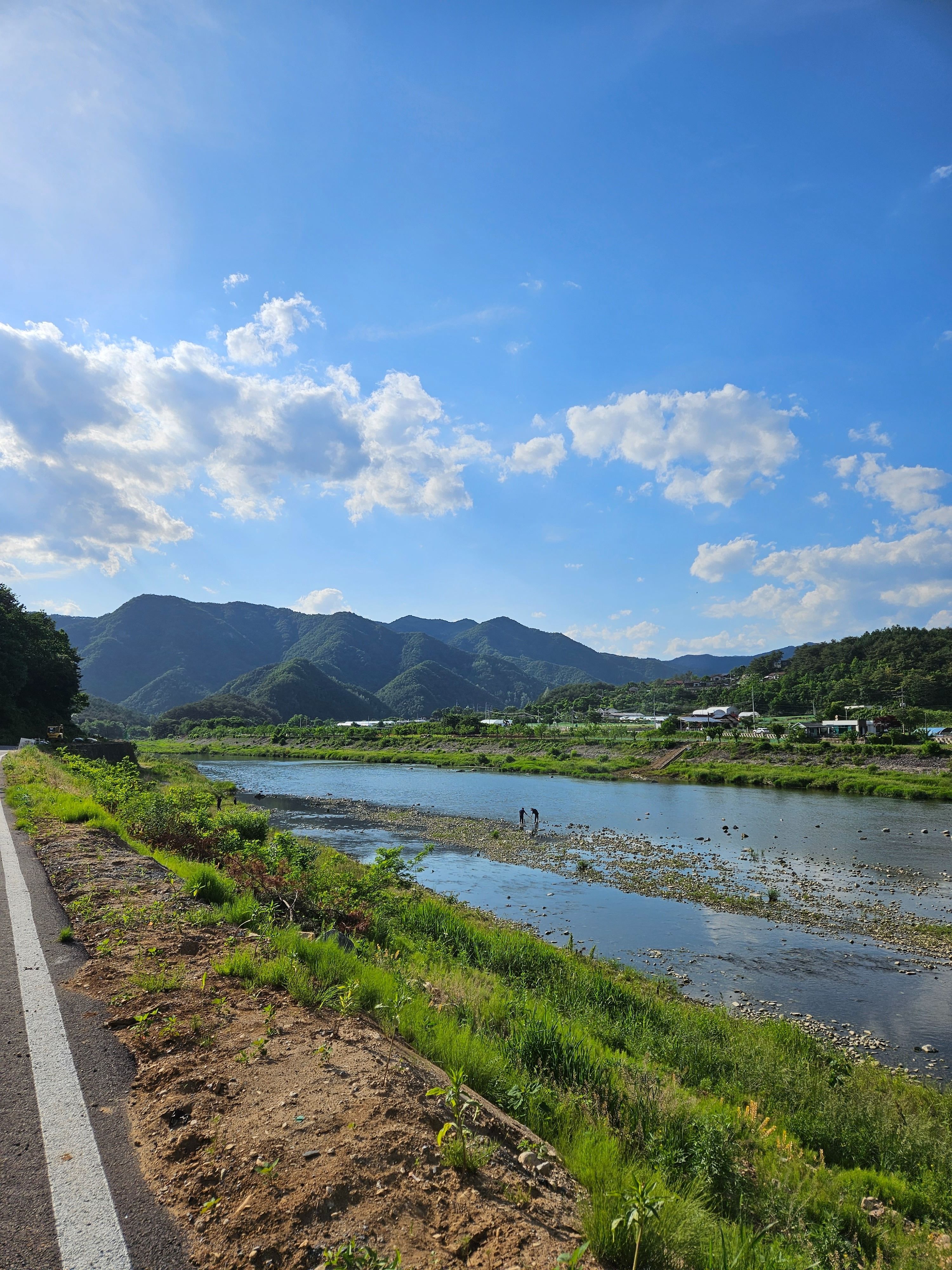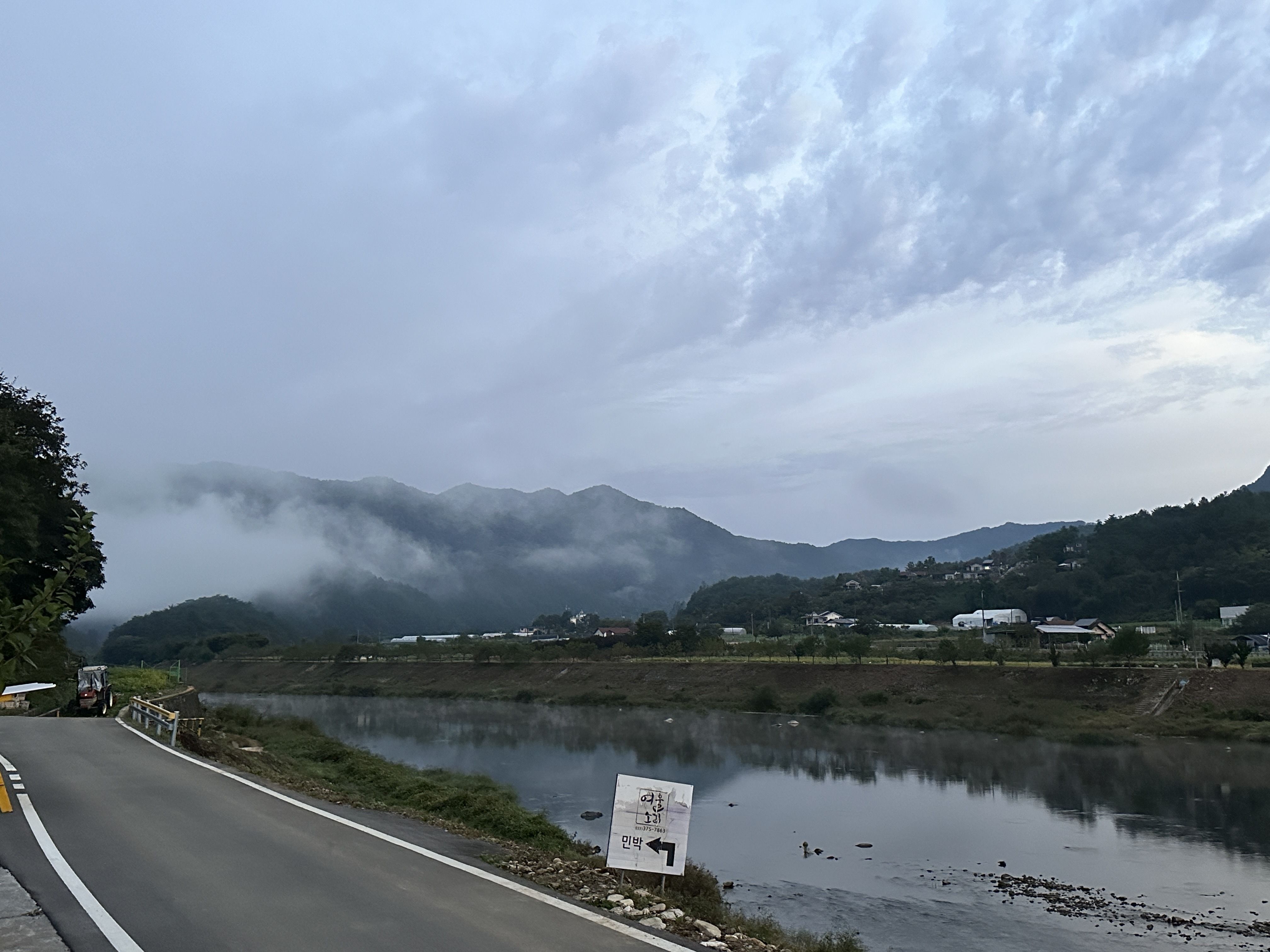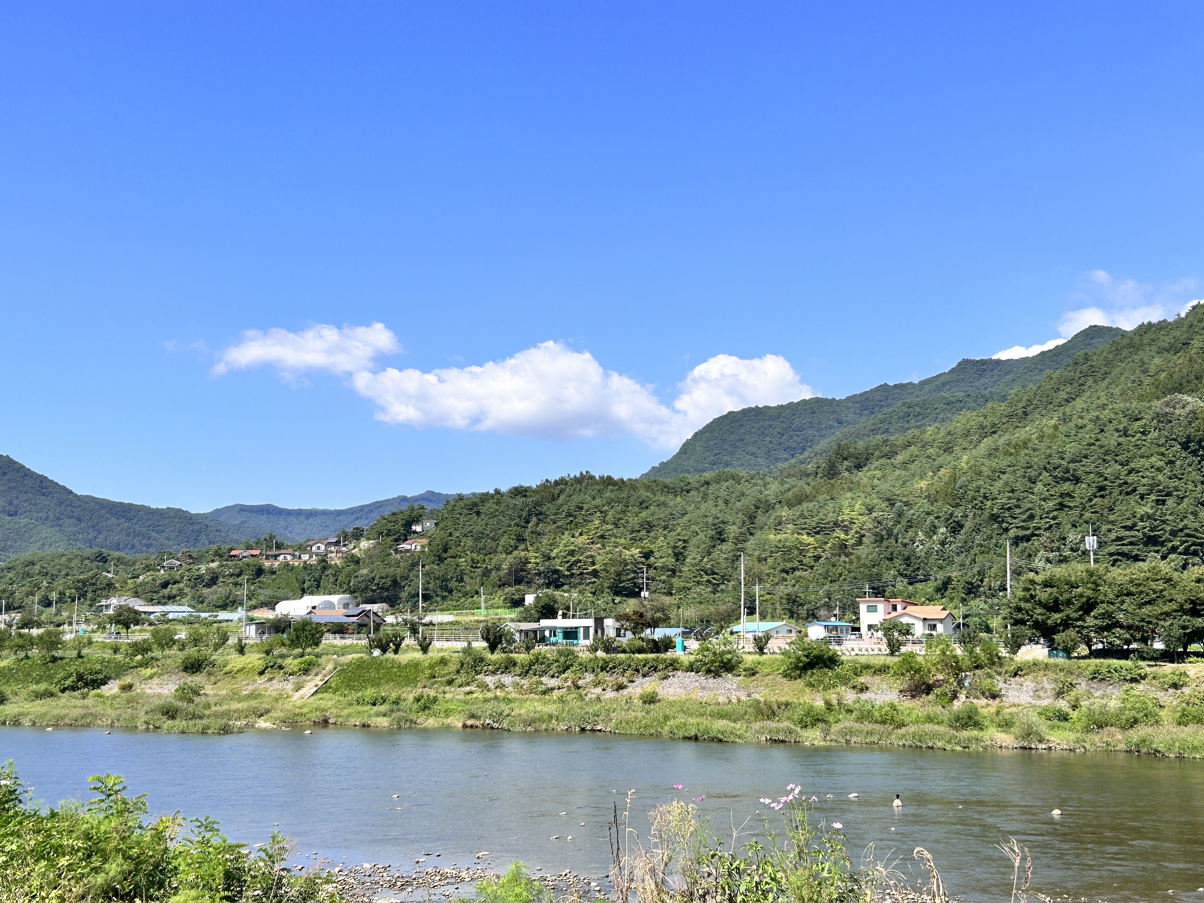 앞에 흐르는 강가는 아침에 내려가면 종아리까지 올라오고 오후에는 물이 많이 빠져서 어린아이들이랑 강아지들 놀기 좋아요