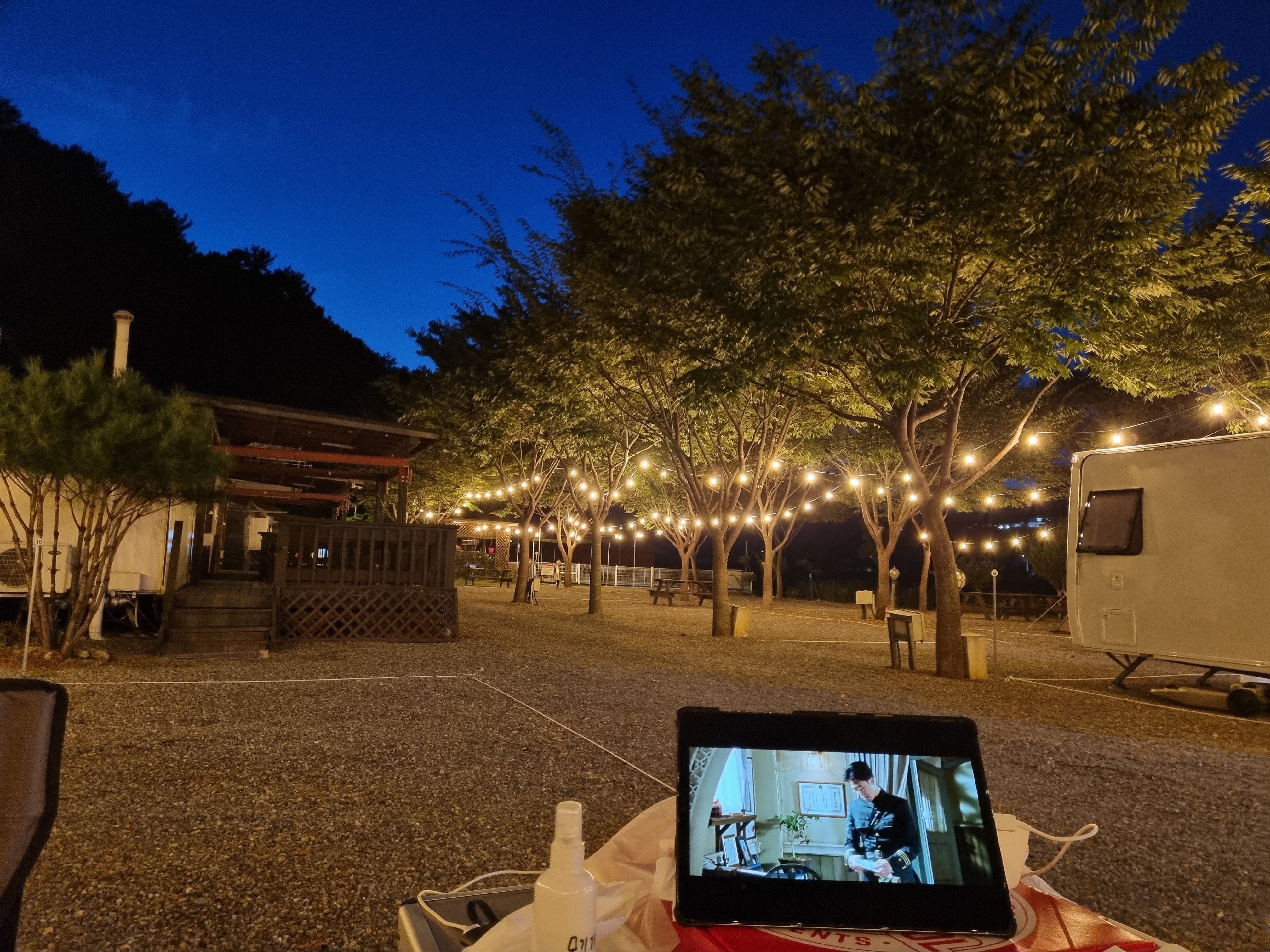 캠핑장 사이트 내에 조명이 있어서 분위기 좋음