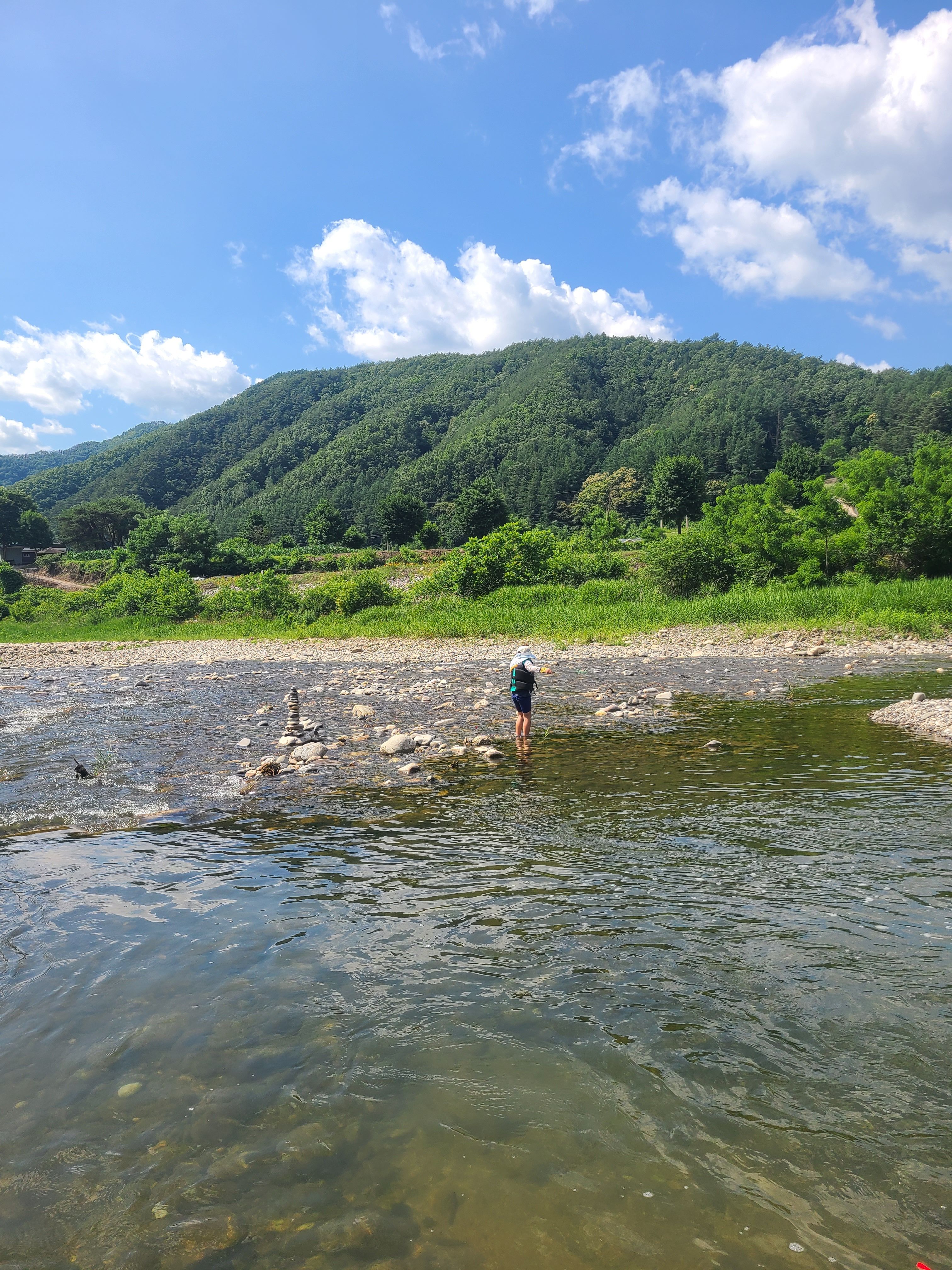 캠핑장 옆에있는 옥동천은 넓이 깊이 유속 너무 너무 놀기 좋은 곳이였어요. 물도 깨끗하고 정말 시원하고 이런 강이라면 계곡은 안 가도 될 것 같아요. 완전 강추합니다. 인정!!