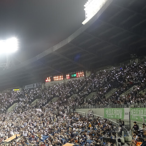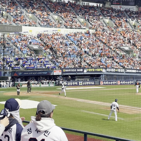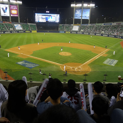 한국에서 휴가를 보내면서 야구 경기를 보는 건 정말 환상적인 경험이었어요. 꼭 해봐야 할 일이죠! 어른부터 아이까지, 관중석에 있는 모든 사람들이 펼치는 응원, 구호, 안무, 그리고 독특한 댄스까지. 티켓 가격은 약 10유로 정도예요.