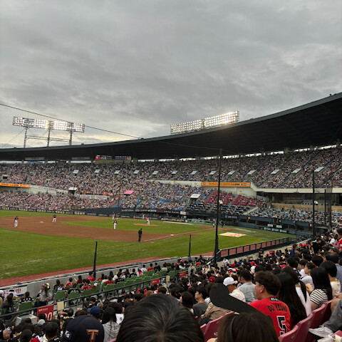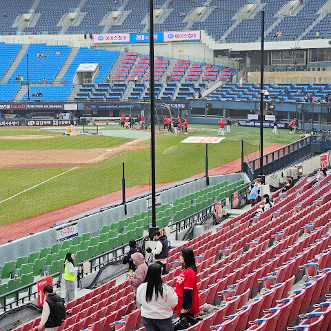 여기서 야구 보는 건 정말 재밌었어요! 분위기도 활기 넘치고, 경기장 좌석도 편안하고 먹거리도 다양했어요!