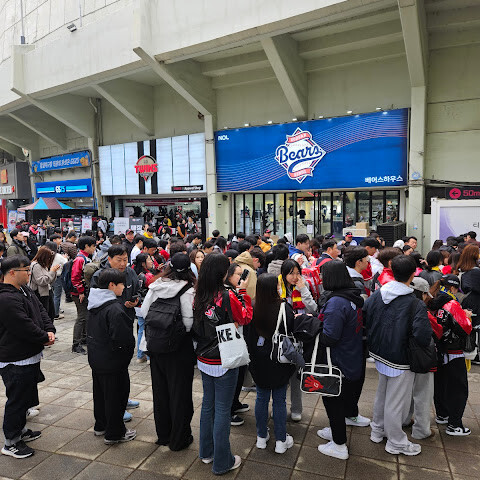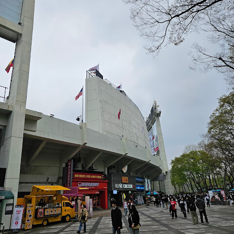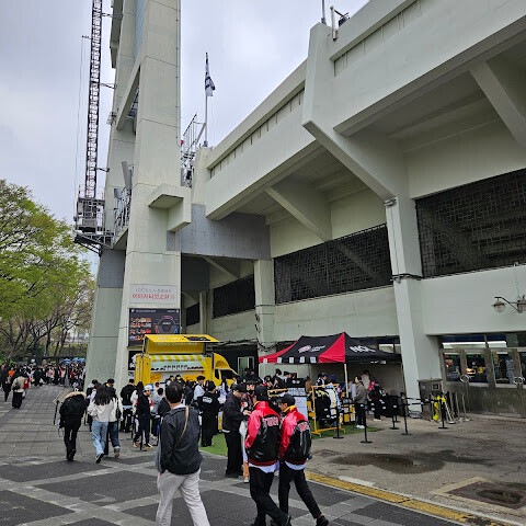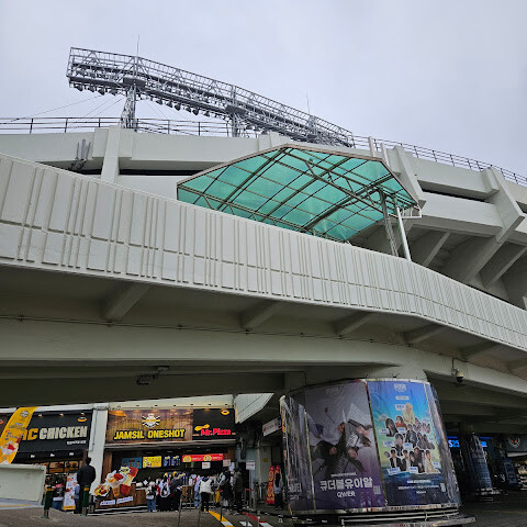 서울 잠실 야구장은 크고 오래된 야구장입니다. 안에는 다양한 음식 가판대가 있지만, 현장에서 티켓을 구매하려면 일찍 도착해서 줄을 서야 합니다.