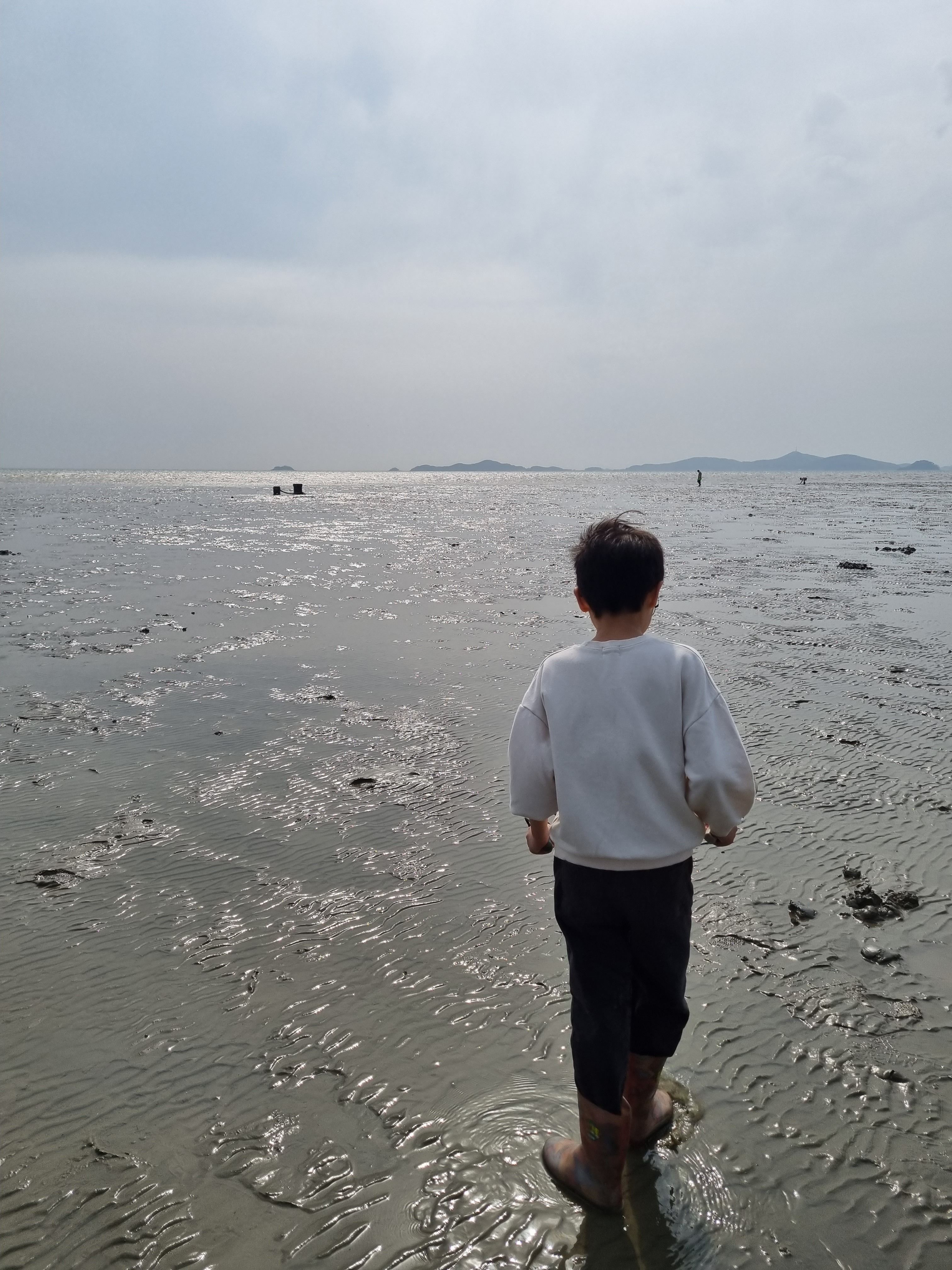 해변이 가까워서 갯벌, 모래에서 재미있게 놀았어요