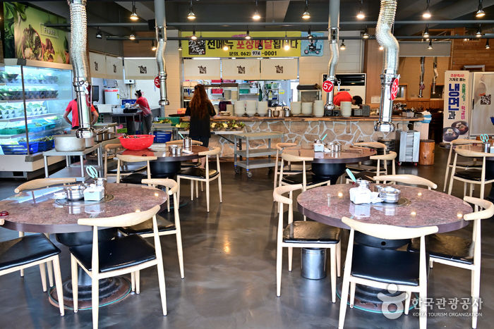 광주과학기술원 옆 꽃담은 주차장이 넓어서 가족 단위로 방문하기 편하고, 매장이 크고 넓어서 모임이나 단체로 식사하기에 좋다. 숯불 돼지 구이 전문점으로, 오겹살과 양념돼지갈비를 시키면 나오는 기본 반찬에 셀프로 채소를 가져다 먹을 수 있는 채소 바가 있어서 넉넉하고 행복한 인심을 느낄 수 있다. 고기도 맛있지만, 가성비 좋은 떡갈비 정식, 숯불갈비 정식도 유명하다. 떡갈비, 숯불갈비와 함께 찌개, 떡국, 나물, 고등어구이, 비빔냉면, 잡채, 묵사발, 껍데기 볶음 등이 한 상 푸짐하게 나와 보기에도 즐겁고, 맛을 보면 포만감과 함께 만족감도 느낄 수 있다.