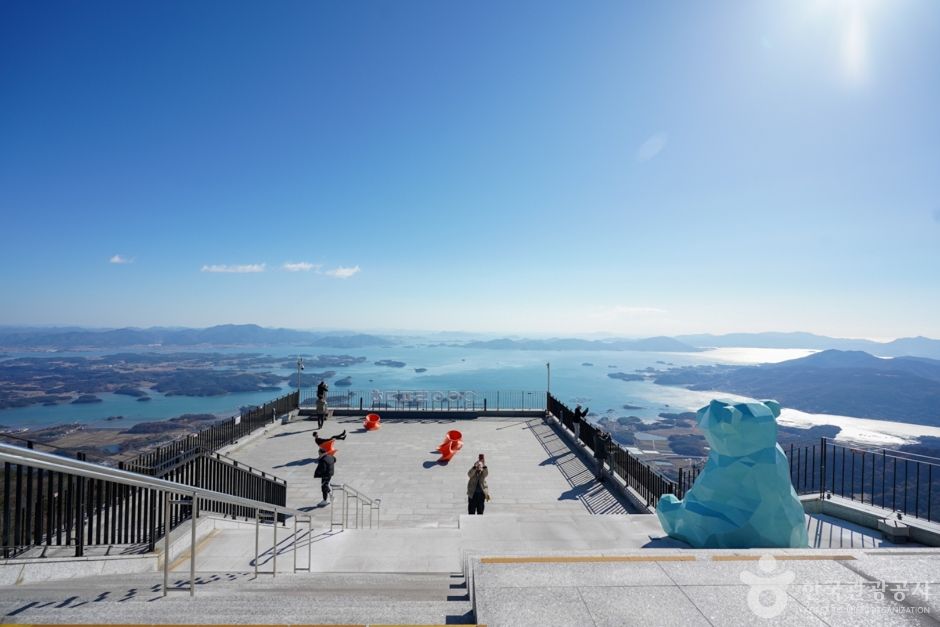 하동군 동남쪽 해안 연안에 외연히 자리 잡은 금오산(875.1m)은 웅장하며 산세가 넉넉하고 유순한 산으로 정상에는 금오산 전망대가 자리 잡고 있다. 금오산 전망대에 올라가면 남해 전체를 바라볼 수 있을 정도로 조망이 좋다. 전망대는 산행하지 않고도 차로 오를 수 있어 접근성이 좋으며, 전망대에 오르면 우측으로는 광양, 좌측으로는 사천을 한눈에 볼 수 있다. 금오산 전망대에서 바라보는 일몰과 일출 풍경이 뛰어나 구경 오는 사람들이 많다. 하동 금오산에는 아시아 최장 길이(3.2km)의 집와이어가 있어, 극한의 스릴과 함께 바다를 볼 수 있는 짜릿한 경험도 즐길 수 있고, 금오산 케이블카가 설치되어 있어 손쉽게 정상까지 오를 수 있다.