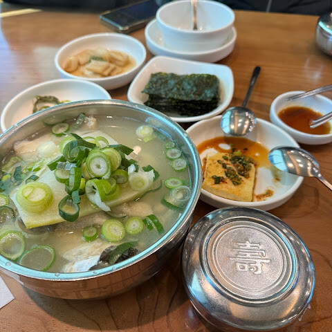 맑은 대구탕을 파는 곳이에요. 아침 8시부터 밤까지 영업하는데, 아침부터 저녁까지 언제든 먹을 수 있어요. 피크 시간에 가면 줄이 길어질 수 있으니 참고하세요. 솔직히 제 입맛에는 괜찮았지만 최고는 아니었어요. 그런데 부모님은 국물 한 방울도 안 남기고 한 그릇을 싹 비우셨어요. 너무 만족하셔서 서울로 돌아오는 길에도 계속 맛있었다고 하시더라고요 🤣 가격 대비 정말 만족스러워요.