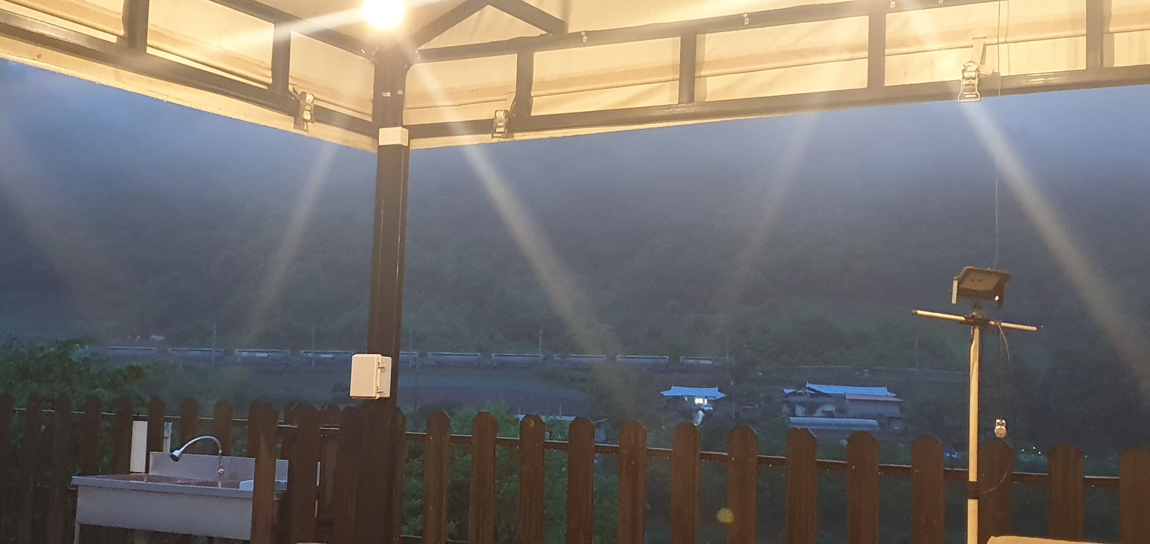 글램핑장 건너편으로 기차가 다닙니다. 기차소리가 많이 나는 편이고, 도로 소음도 조금 있습니다.