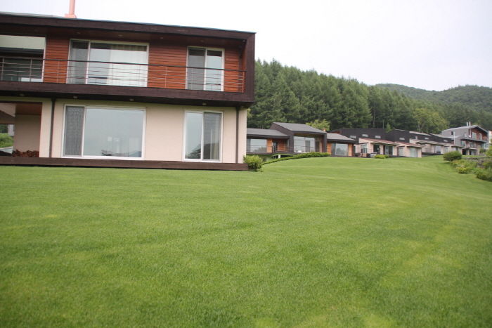 켄터기블루그래스로 조성된 6,000평의 푸른 초원위에 30평, 50평의 모던한 독채 펜션 8동이 넓직하게 자리잡고 있다.