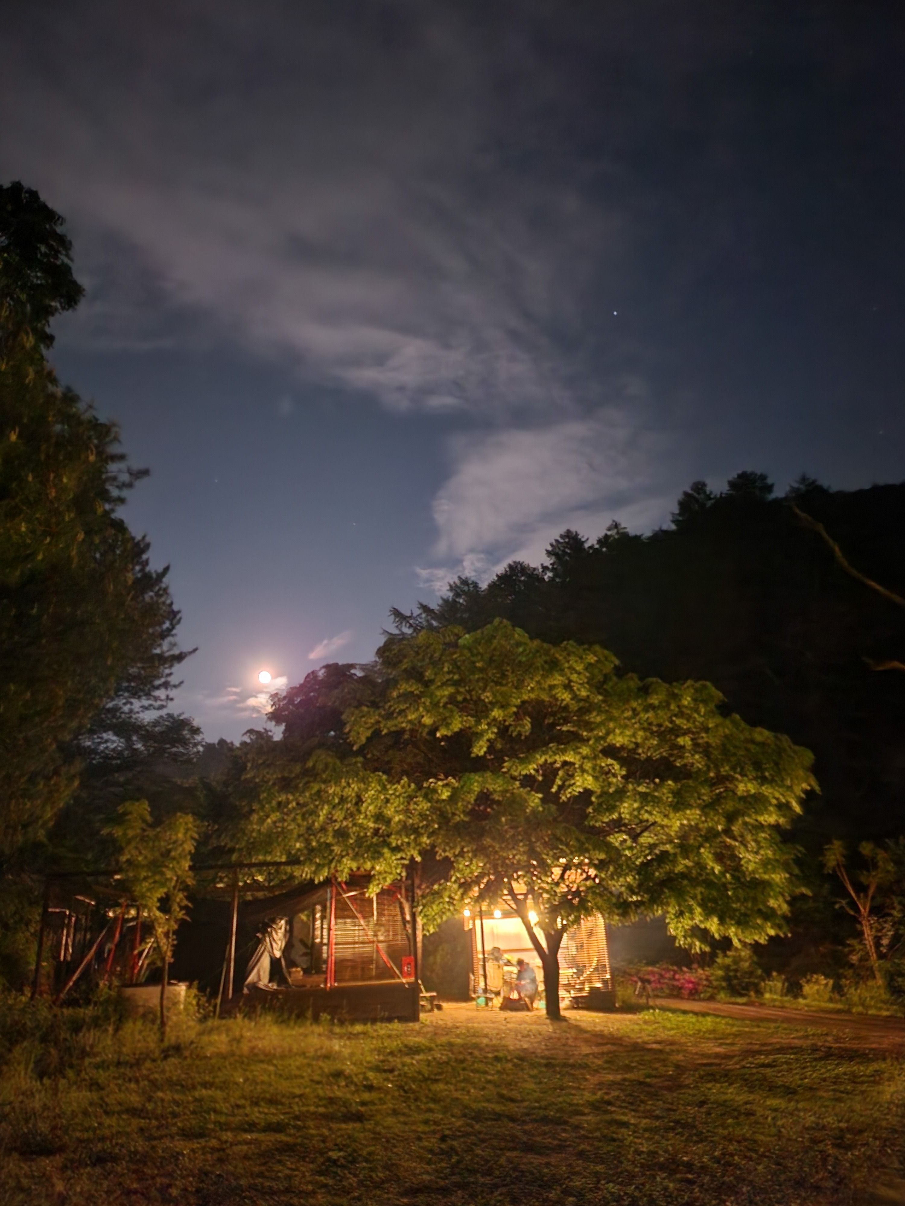 밤엔 산속이라 그런지 쌀쌀했는데, 구비되어있는 침낭에 들어가니 더워서 들어갔다 나왔다했습니다! 여름이라 텐트 안 침구가 다소 눅눅하다는 점이 아쉬웠지만 계절 상 어쩔수 없는것 같아요!