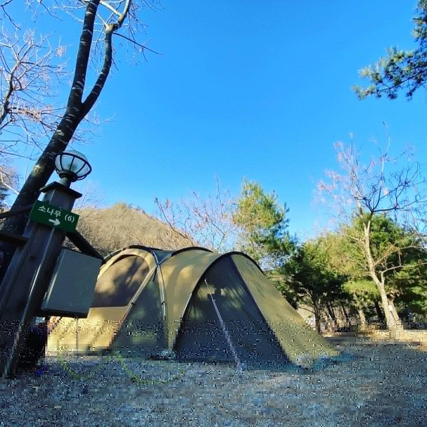 애견동반인데 옆 텐트 사람이 강아지 발로 참. 아홉시쯤 따뜻한물 안나옴 강아지텐트장은 가장 높은데 있어서 화장실 멈. 나무가 별로 없어서 아쉬움. 동계텐트라 그런지 사이트 간격이 몹시 좁게 느껴짐