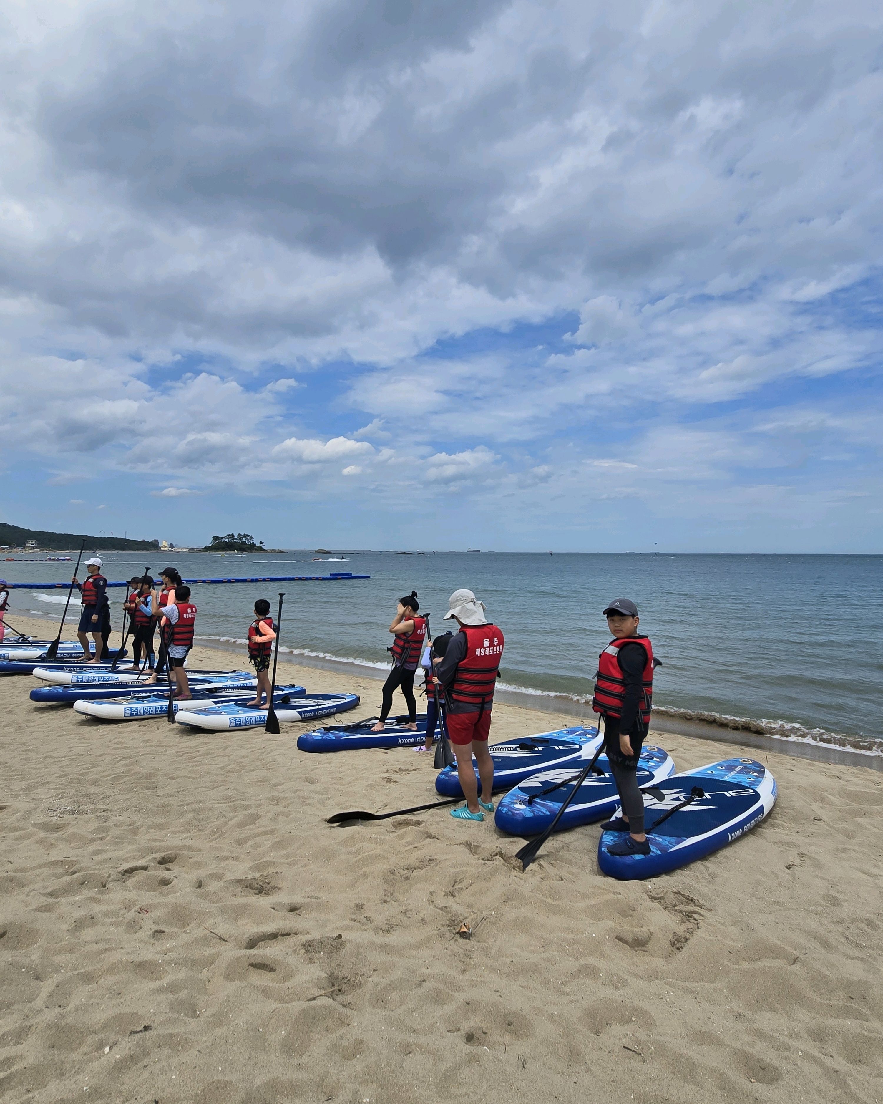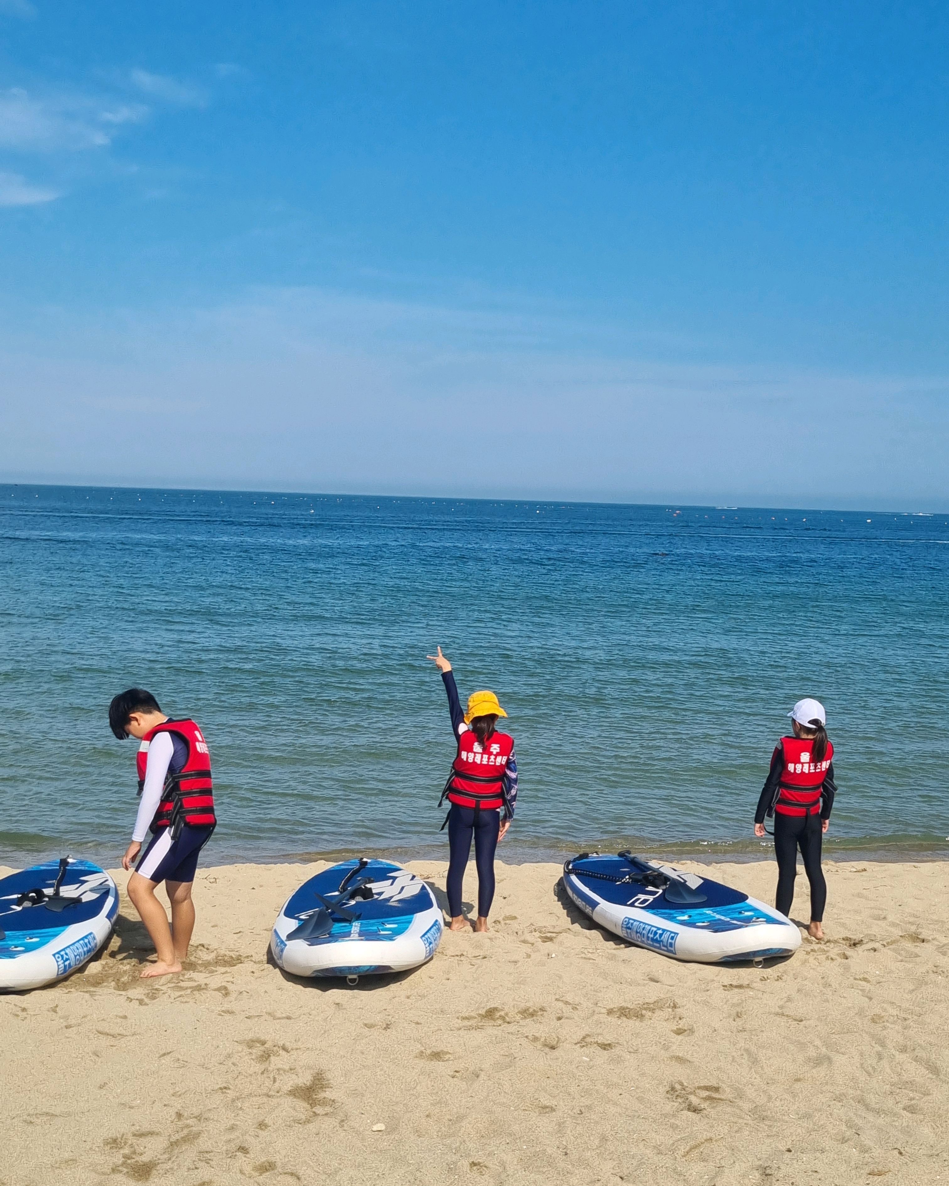파라솔, 튜브, 구명조끼 샤워장까지 모두 무료로 즐기는 진하해수욕장의 오는쪽 끝 영선도와 반대방향에서 즐기는 패들보드는 재밌고 즐거웠어요 친절한 설명으로 신나게 즐기고 왔네요