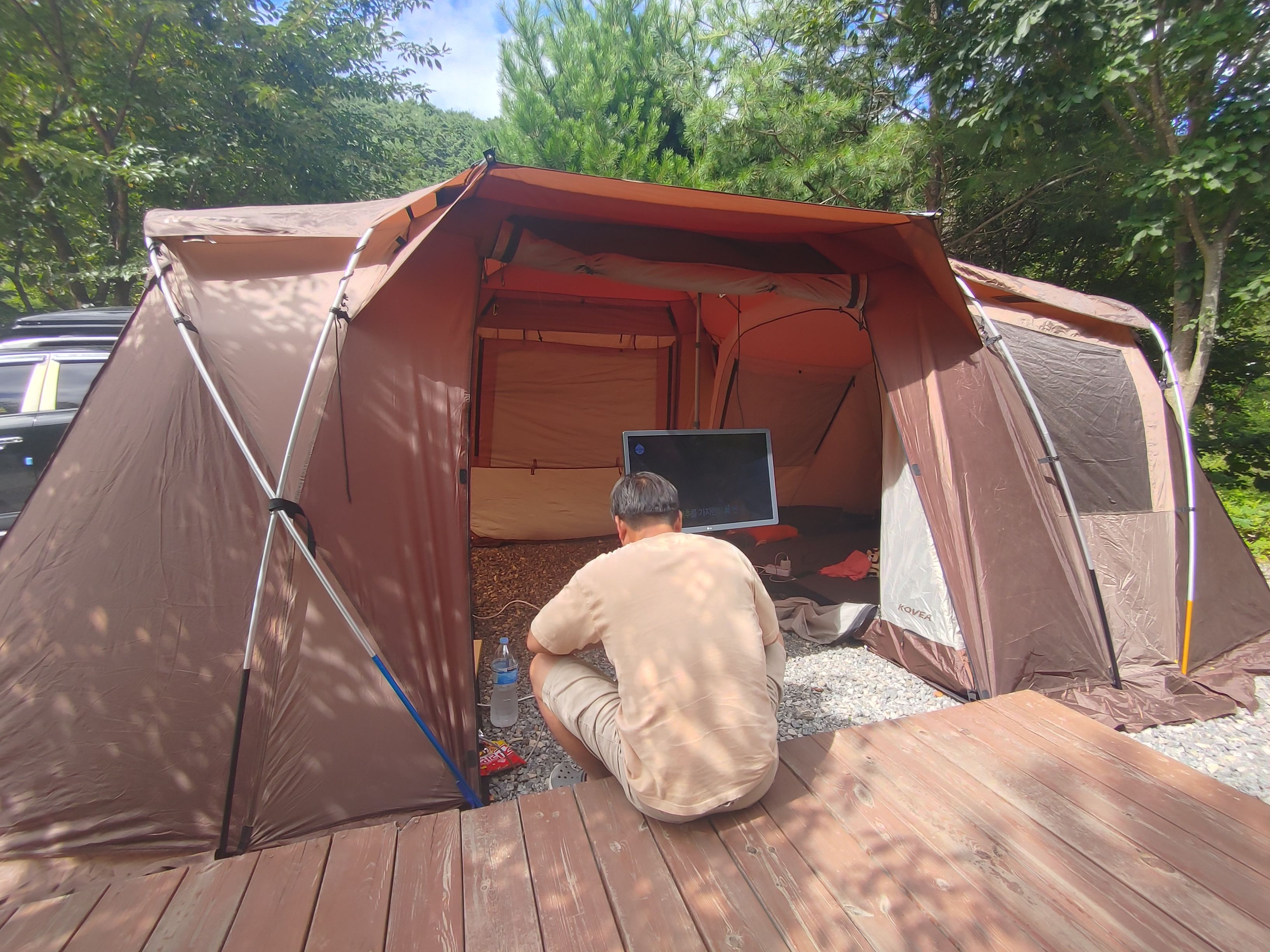 나무데크는 조금 작은이지만 무리없이 텐트 잘쳤고