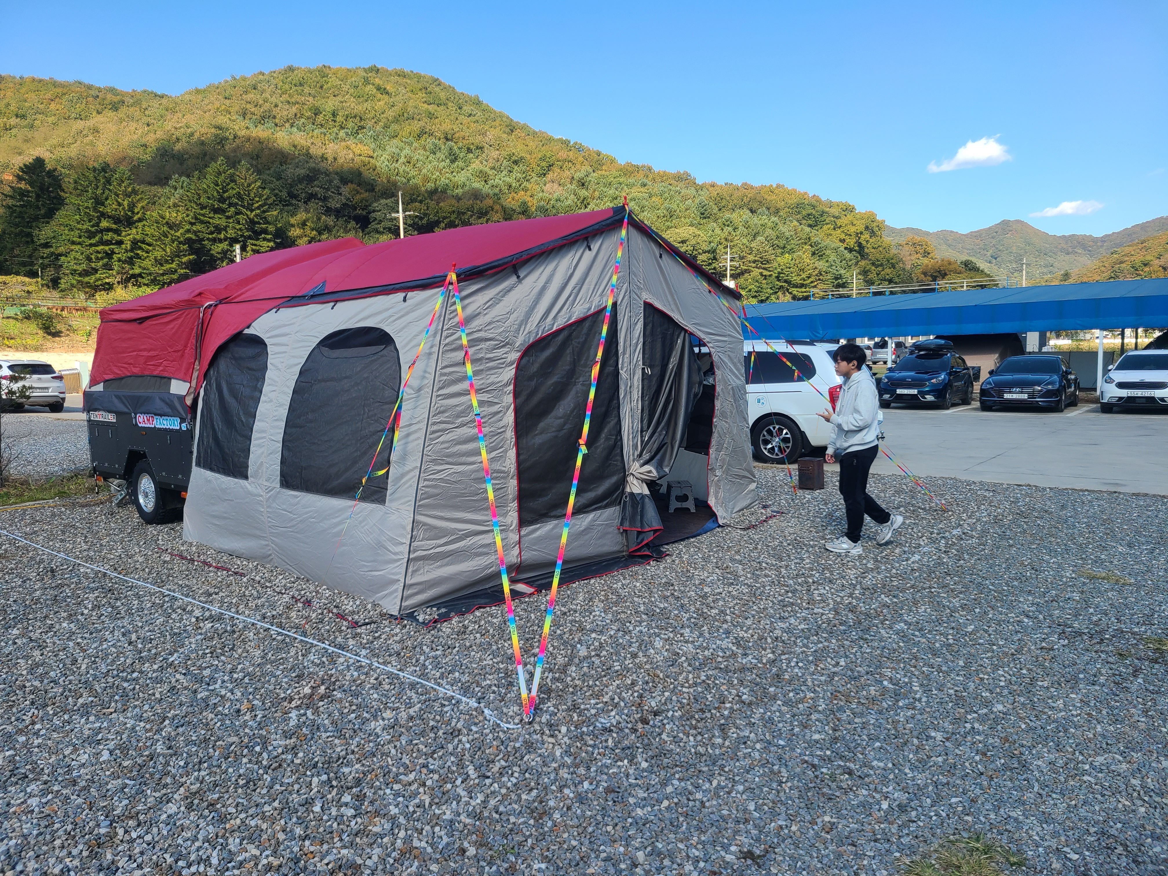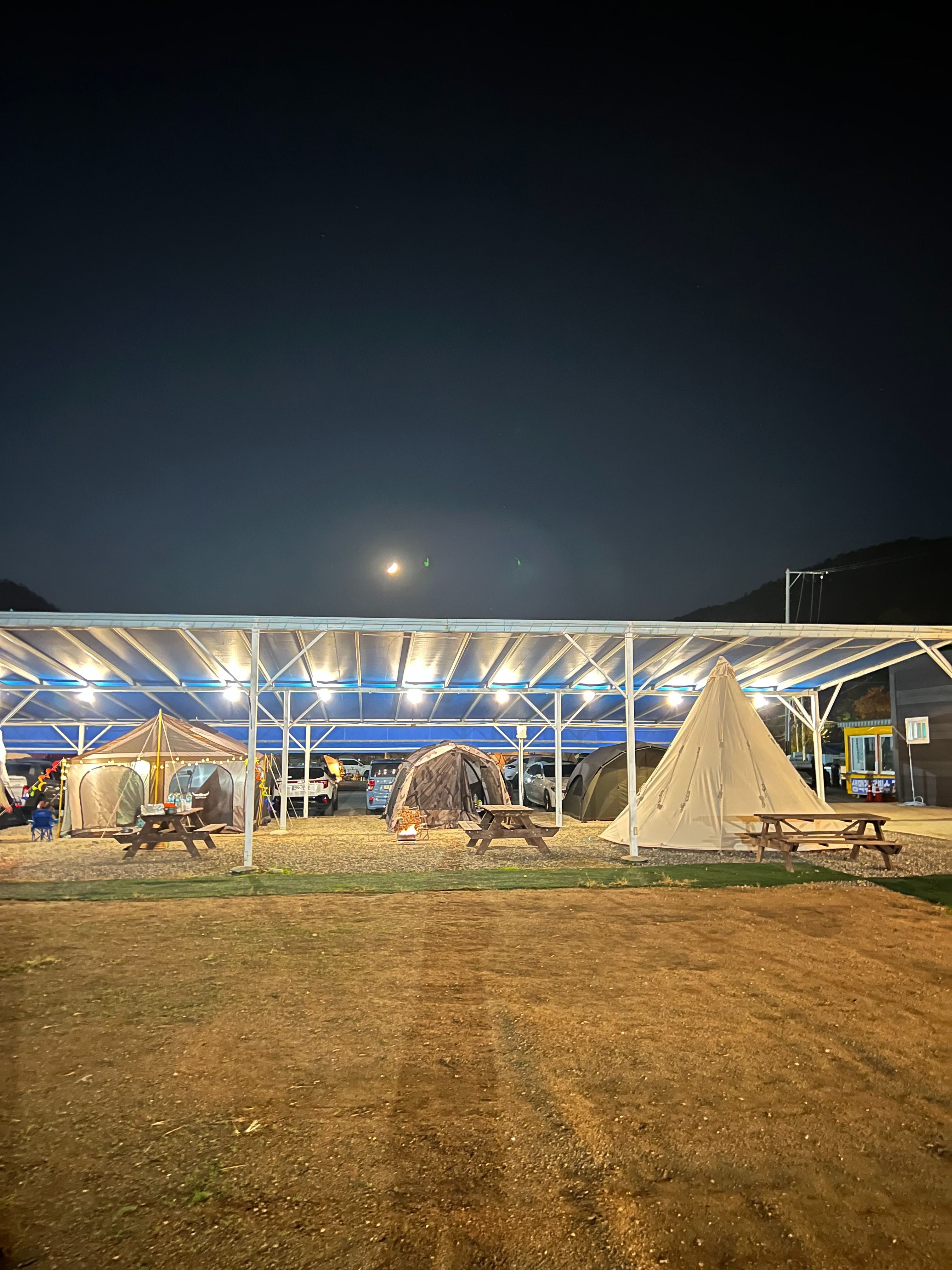 상당히 넒은 곳에 캠핑장 운영중이며, 지붕있는 곳도 있고 장박 이용자들도 곧잘 있습니다. 일반적으로 단기로 이용하는 분들이 이용하는 사이트는 지붕이 없구요. 화장실은 그냥 일반적입니다. 깔끔하진 않아도 크게 더럽진 않았구요. 채소류 이런거 일찍가면 캠핑장에서 좀 주시는거 같더라구요. 고기 먹을때 좀 받을 수 있습니다. 수영장은 시즌때 운영 하는거 같구요. 우선 좀 넓직넓직해서 괜찮았고, 주변에 괜찮은 카페도 좀 있구요. 엄청 괜찮네~! 하는 정돈 아니었지만 가을때 가서 나름 단풍이랑 있어서 괜찮았구요. 캠핑 시설에 전기 제한(600) 관련은 크게 없는듯 했습니다.