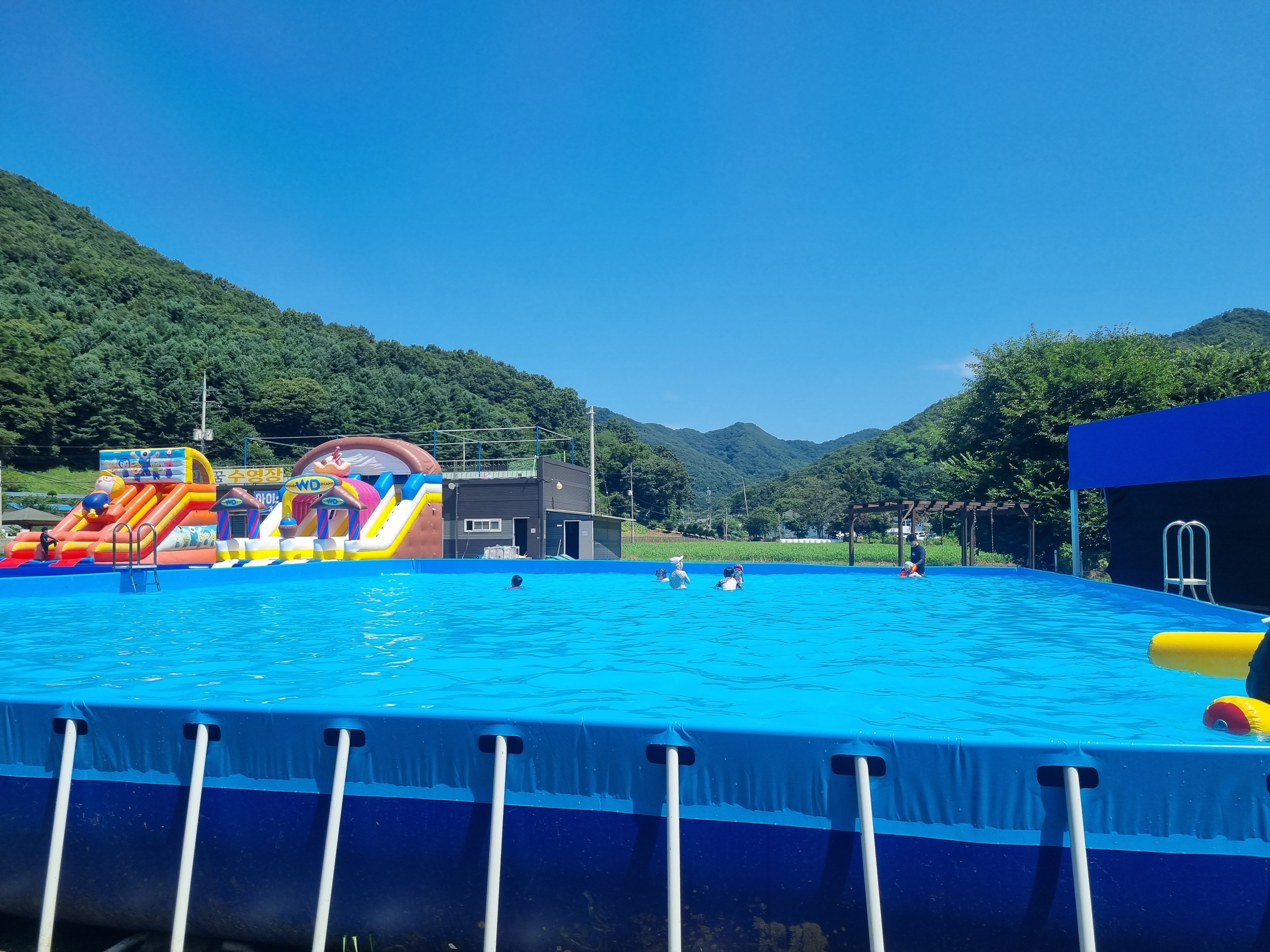 야외수영장인데 깨끗한편이었고 11시넘어서 갔는데평일이라 붐비지않아서 좋았어요~취사가능한게 장점이고 배달음식도 가능해요~샤워실.개수대.냉장고.전자렌지 있어서 편리하게 이용하고 왔습니다.화장실도 깨끗한편이었어요. 비누나 샴푸등은 챙겨가셔야하구요.