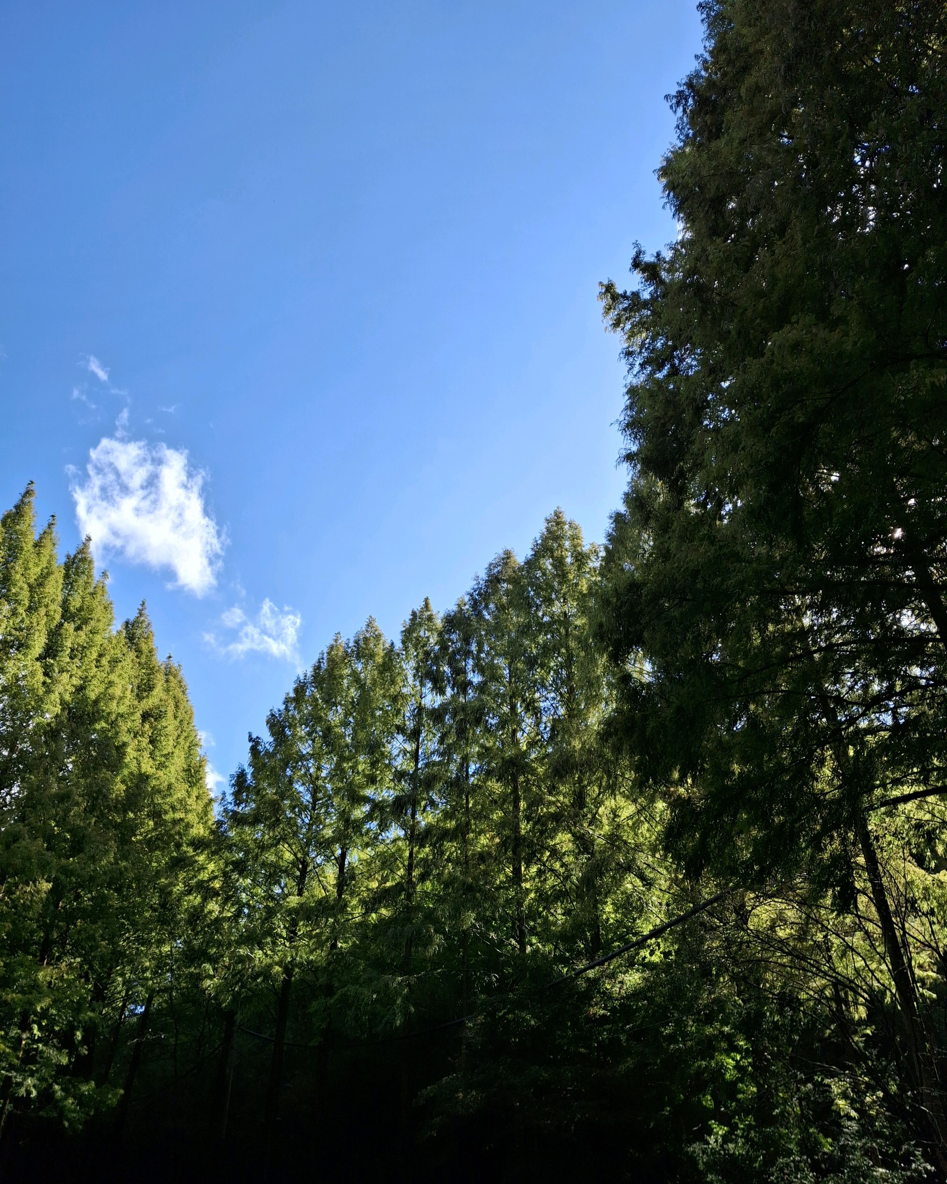 메타세쿼이아의 쭉 뻗은 길로 피톤치드 맡으며 출렁다리까지 건너기 좋아요.