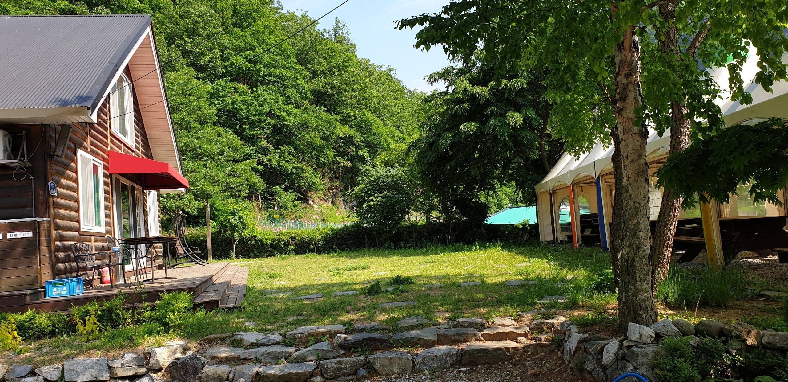 전체적으로 자연경관 쏘굿!! 데크랑 땅에 돌 색깔까지도 잘어울리구 이뻐여