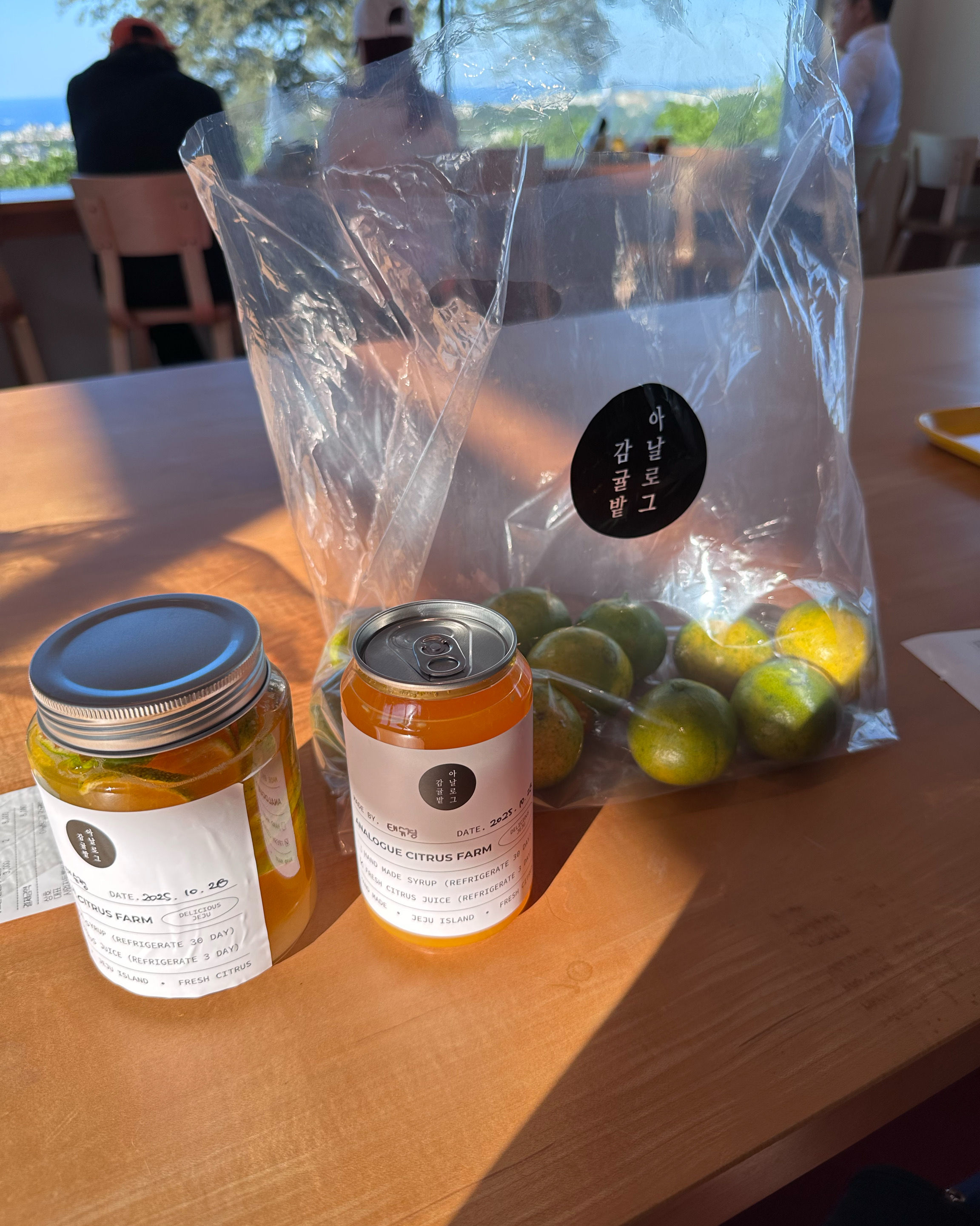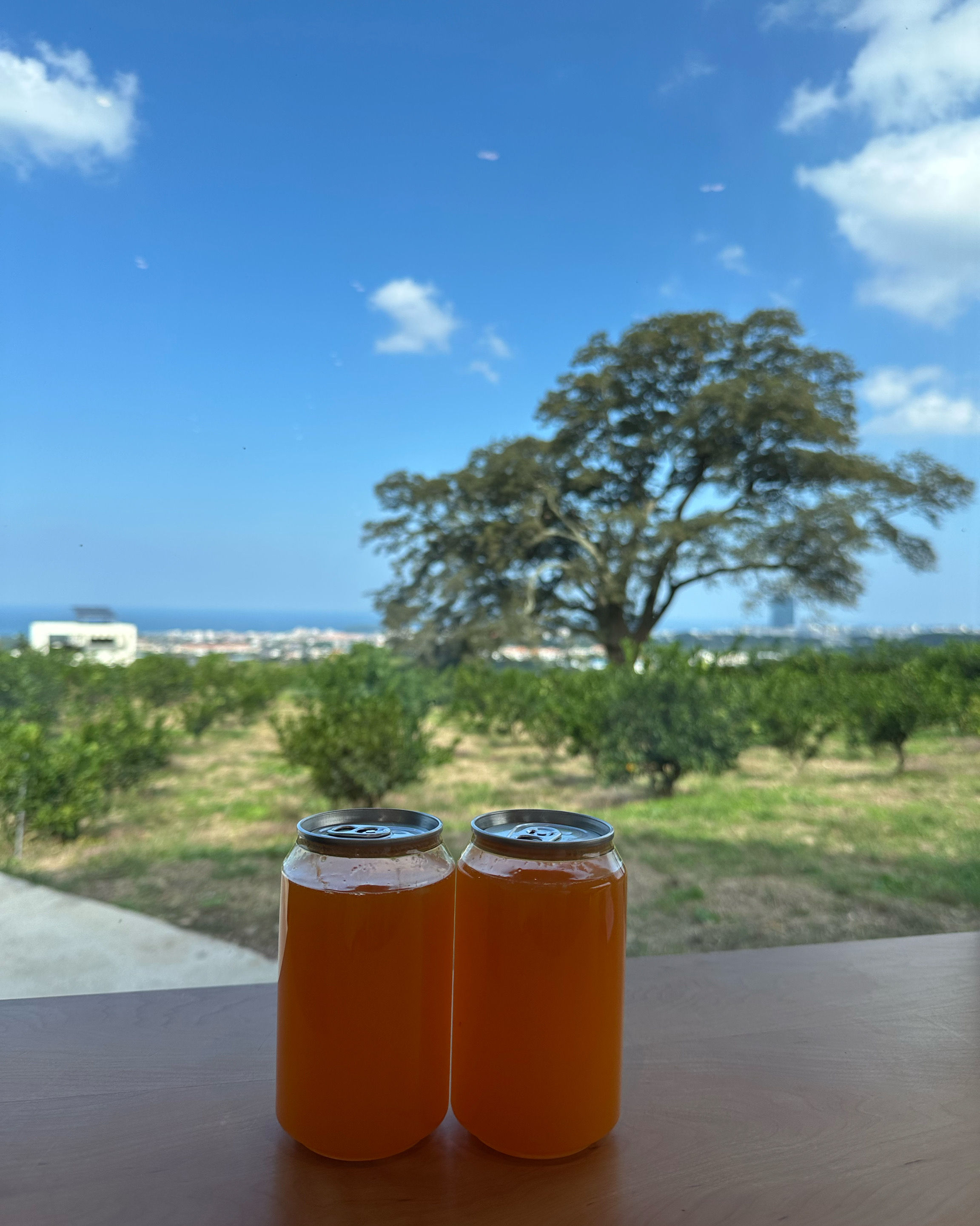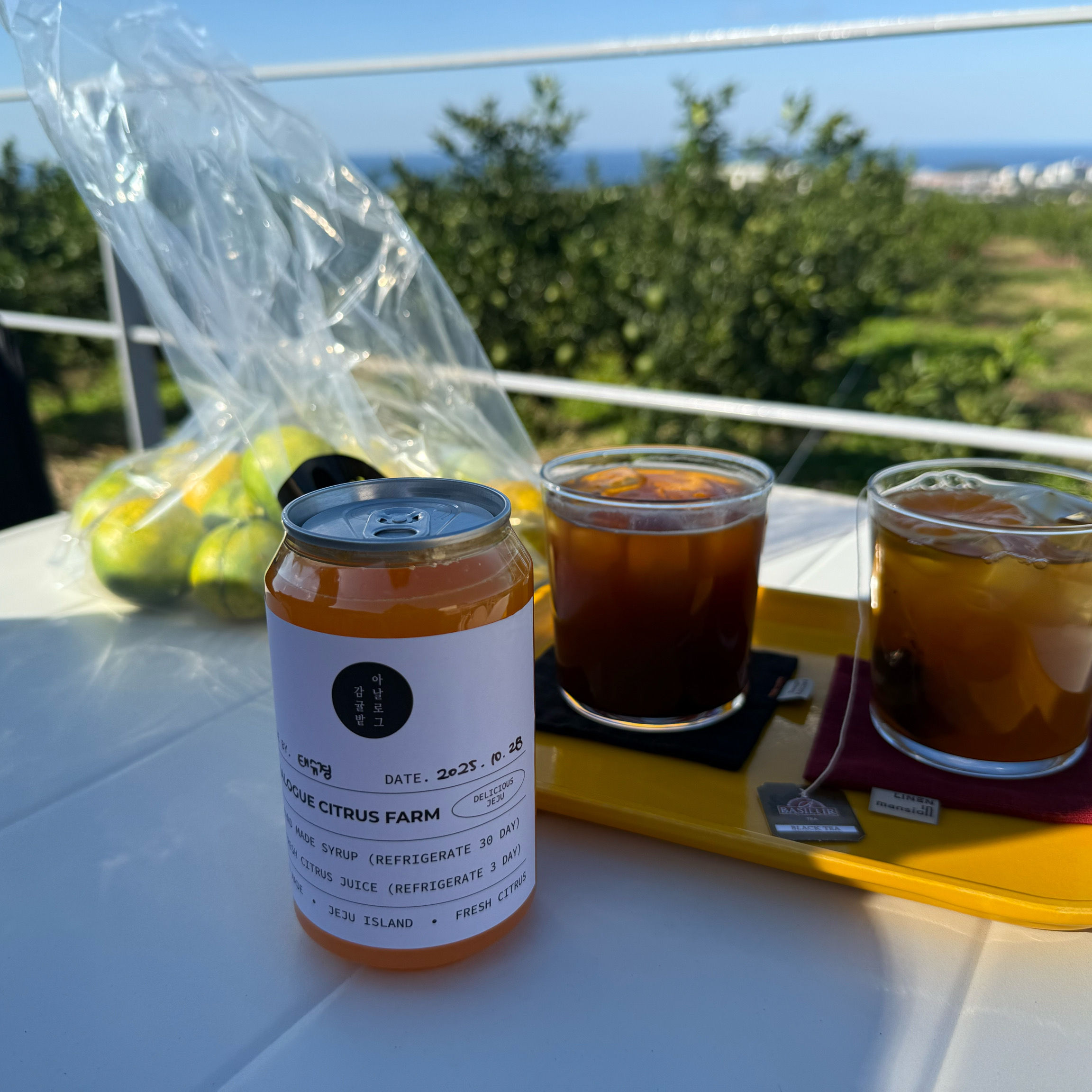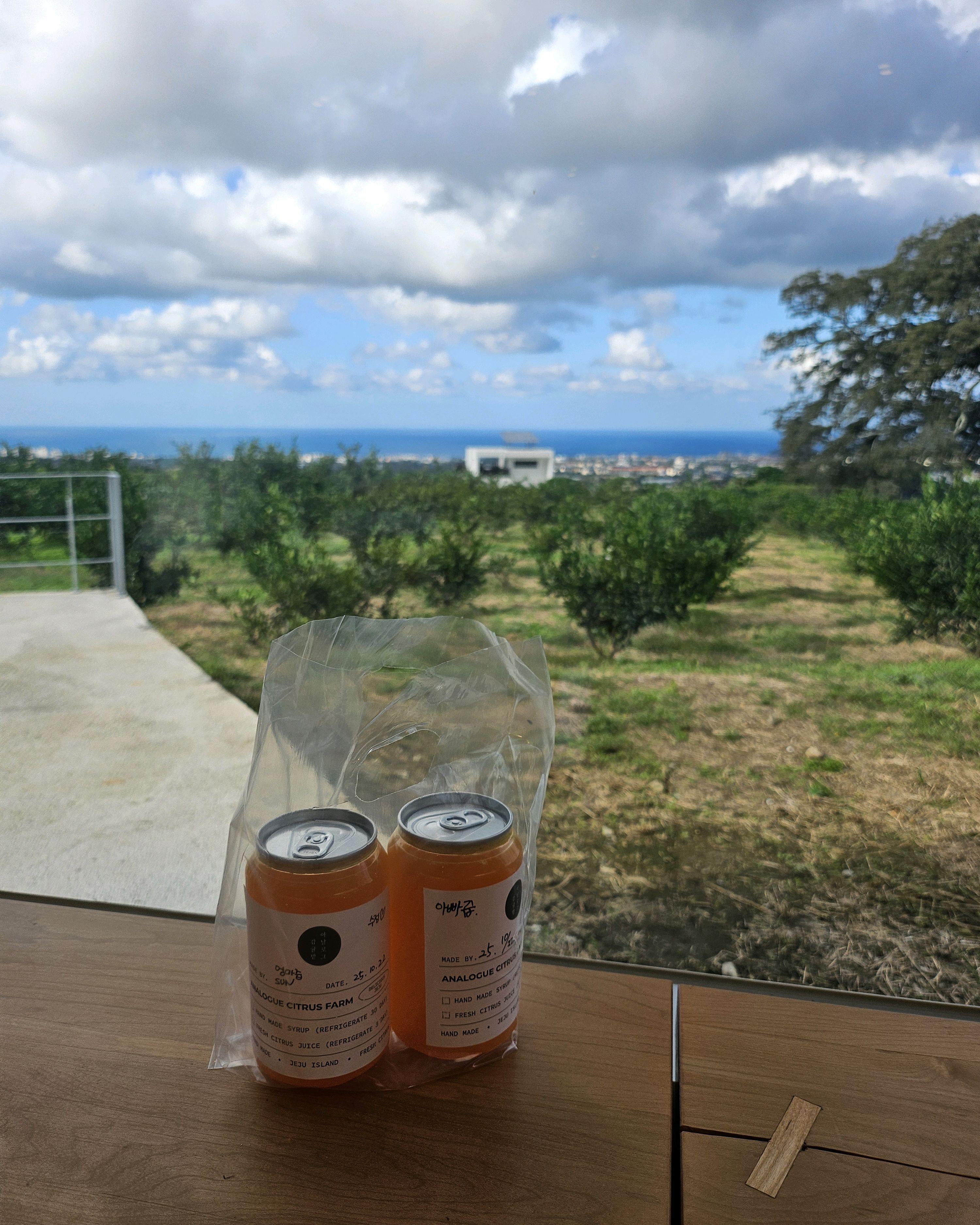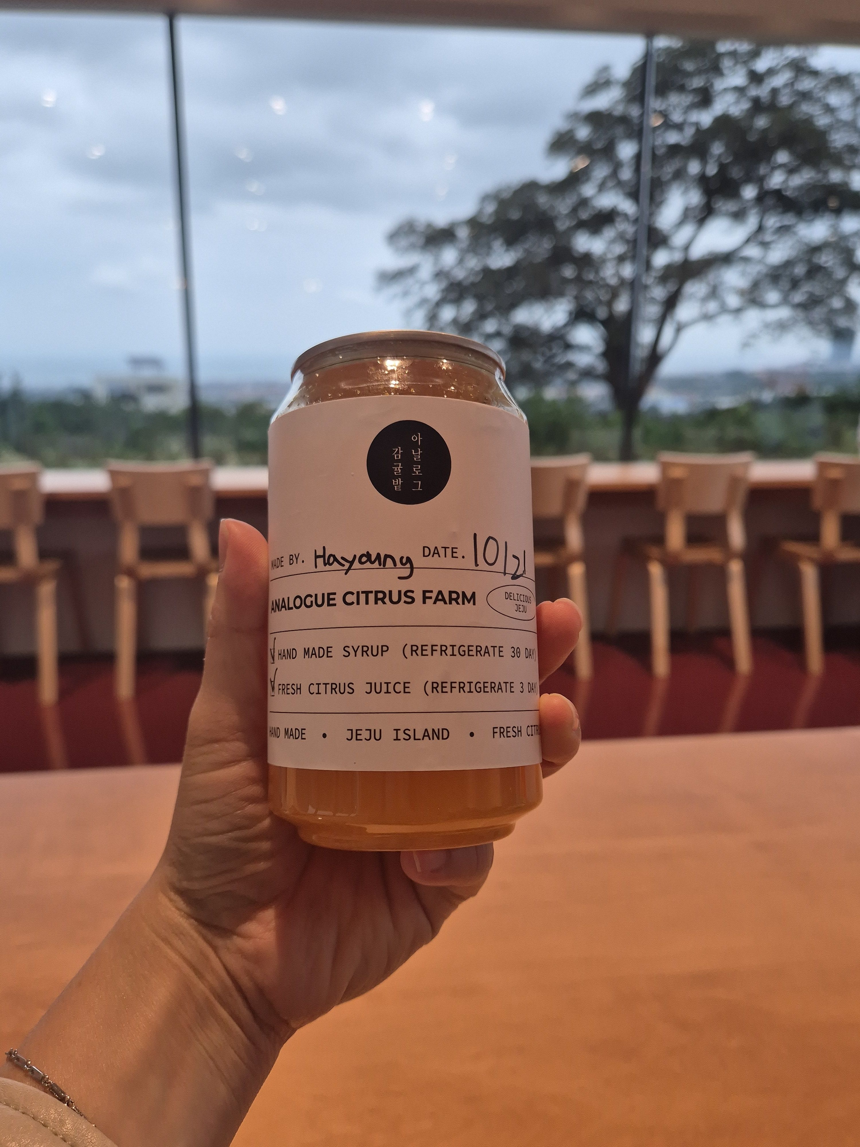 신선한 감귤쥬스! ( 이제까지 맛 본 감귤 쥬스는 모두 가짜였나봄 ) , 감귤청 만들기, 캔쥬스 만들기 체험까지 좋은 경험 이었어요. 제주시내 전경이 내려다 보이는 카페 뷰에도 힐링 됐어요🍊🍊🍊